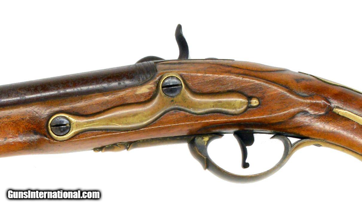 Description: American Dragoon Pistol (Dating to the American Revolution) A rare Revolutionary War Dragoon Pistol probably made by an American Gunsmith and was originally a flintlock. The Dragoon is beleived to be stocked in American Butternut using early pattern 1720 grip cap, a pattern 1750 British Dragoon trigger guard and side plate, British lock marked with Crown over JG, British 1750 pattern wrist escutcheon, gunsmith made brass ramrod pipes and nose cap and an applied front sight probably added when it was converted to perscussion. There are no marking or proof marks on the top or bottom of the barrel indicating it is probably an American made barrel. The pistol was originally a flintlock that was converted to percussion with it original ramrod with a gunsmith made brass tip. Probably converted for use in the Civil War The condition is very good with much of its original patina however it does have a minor crack at the wrist. 18th century weapons by an American Gunsmith were usually made using mixed parts from other firearms as parts were difficult to come by during the 18th century and especially during the American Revolution. I choose to not convert it to flint, however this is a great early dragoon pistol worthy of conversion. Rare Dragoon Pistol Call Gordon 540-448-0344 email gordonamaty SOLD Antique: Yes |