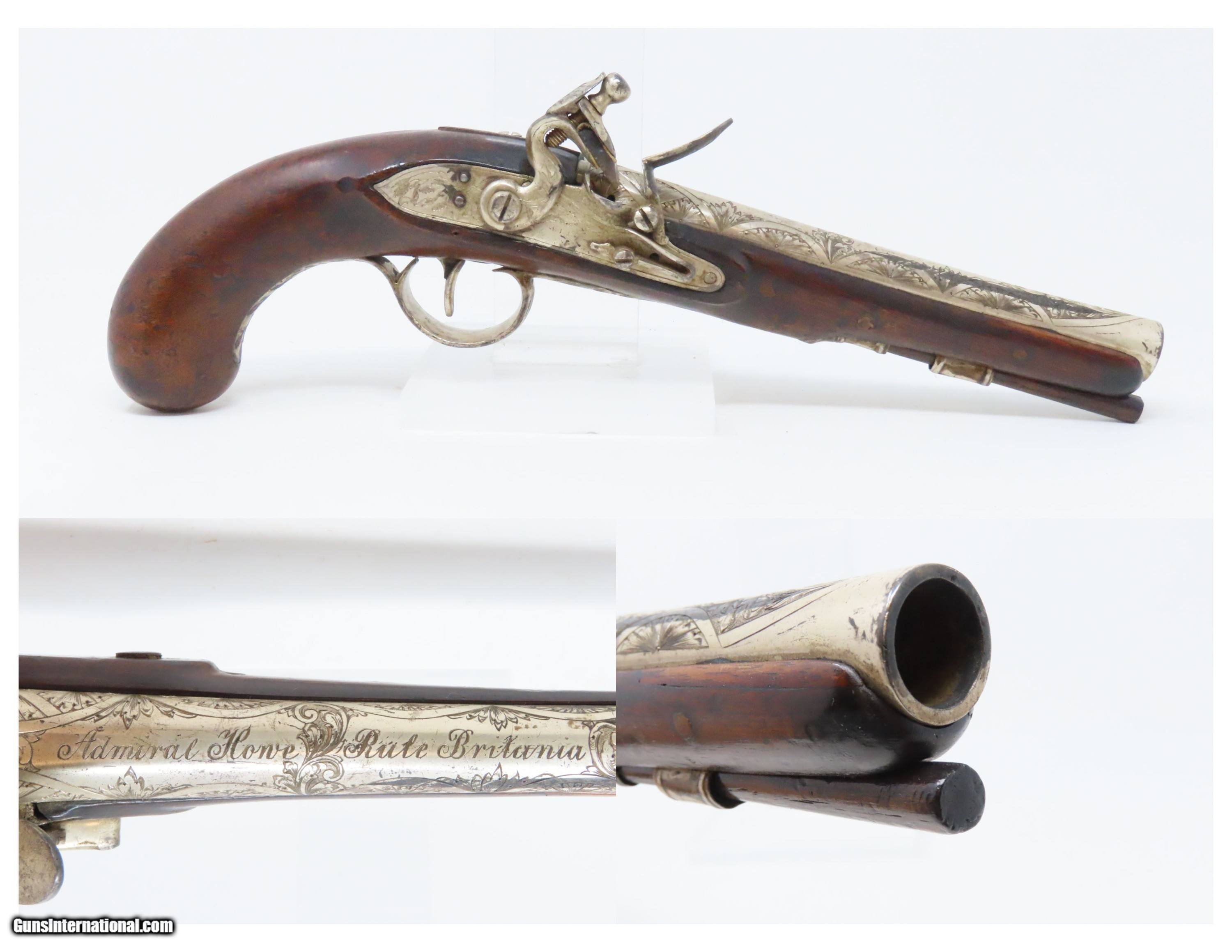RULE BRITANNIA! ADMIRAL HOWE British FLINTLOCK Pistol by ELLIS .62 Antique