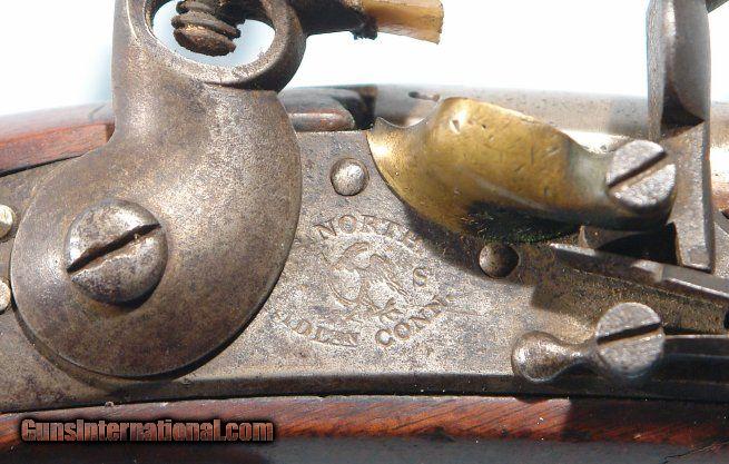 Description: S. NORTH U.S. MODEL 1816 FLINTLOCK PISTOL. .54 cal. 9” smoothbore barrel proofed “P/US” at the breech. Lock stamped “S. NORTH/EAGLE/U.S./MIDLTN CONN.” 100% original in every respect including the screws. Original flint and not a reconversion. Very good plus to fine with fine original metal patina and crisp markings. Excellent stock with visible inspector’s cartouche and the original finish with nice handling patina. Working order and very good bore. Original ramrod. SOLD Antique: Yes |