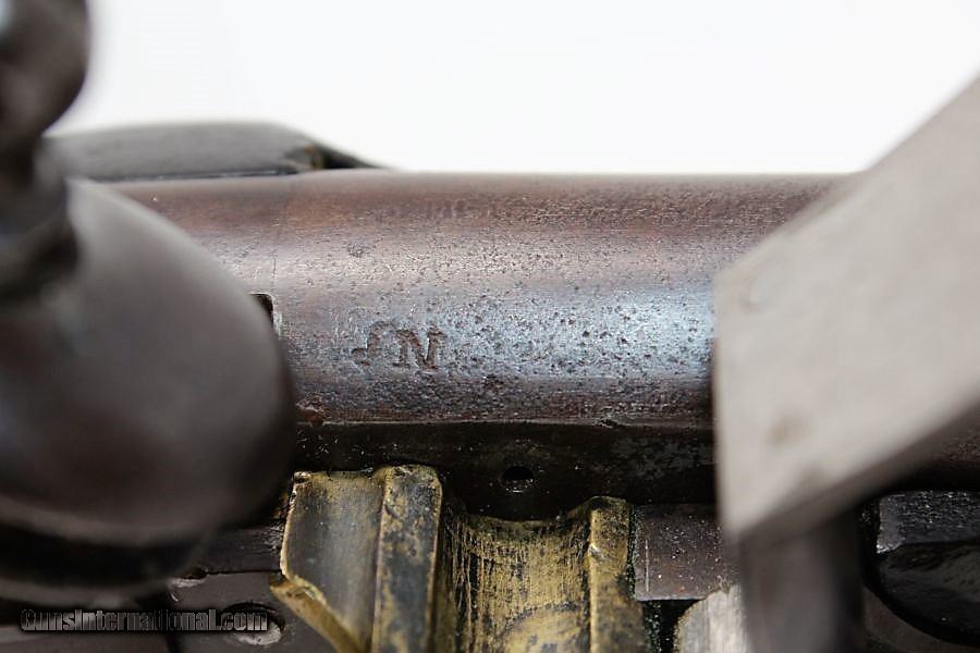 Description: SIMEON NORTH U.S. Model 1816 FLINTLOCK Pistol Early American Army & Navy Sidearm Here we present an antique U.S. 1816 Simeon North flintlock pistol, made 1817-20 in Middletown, Connecticut. Fewer than 20,000 of these were made for the U.S. military. Many were updated to the much more reliable percussion system in the 1830s. The service life was quite long for this pistol. The famous scout and Indian fighter Kit Carson fought with one of these, still in its original flintlock form, during the Mexican-American War from 1846-48. Even though percussion arms, including pistols, had been adopted by the U.S. in the 30s, it was not unusual for flintlocks to still be in use. Primary conflicts that would have involved this piece during its service life were the Seminole Wars, the Pawnee Expedition, the Mexican-American War and even the American Civil War. The lock is marked “S. NORTH, US, MIDL. CON.” The barrel is also marked “US”. Though many of these pistols were converted to percussion, here is a true survivor in its original flintlock form. The overall condition is very good. The iron parts have a dark, even patina. The markings are mostly clear and legible. The stock is dark, smooth and solid. The bore is smooth, dark and clean. The action is excellent, strong and crisp. Own the original! This is a legitimate antique and not a reproduction. Barrel is 9 1/16 inches. Caliber: .54 Overall condition as seen in photos. Very Fast. Very Safe. FREE SHIPPING WORLDWIDE. Delivered directly to your door by express mail! Guaranteed AUTHENTIC & Includes CERTIFICATE OF AUTHENTICITY. ancestryguns $2650 #8411 SOLD Antique: Yes |