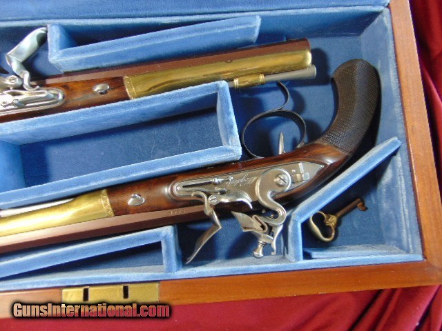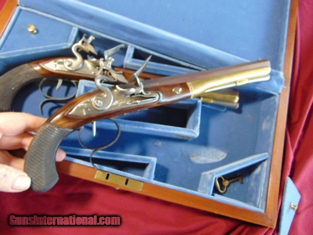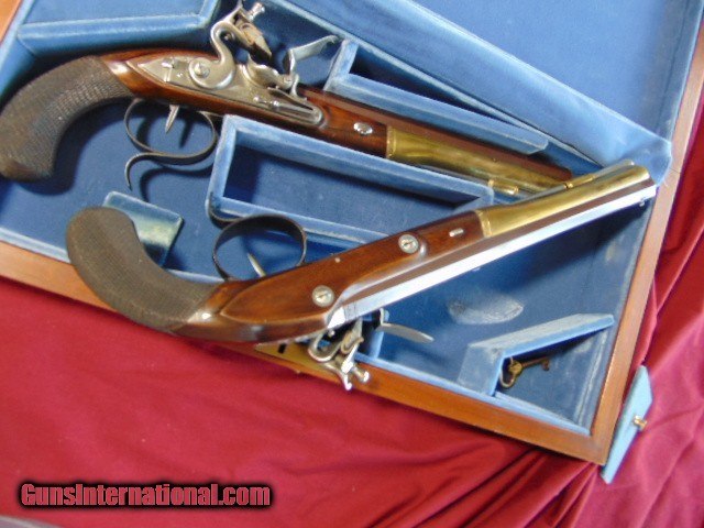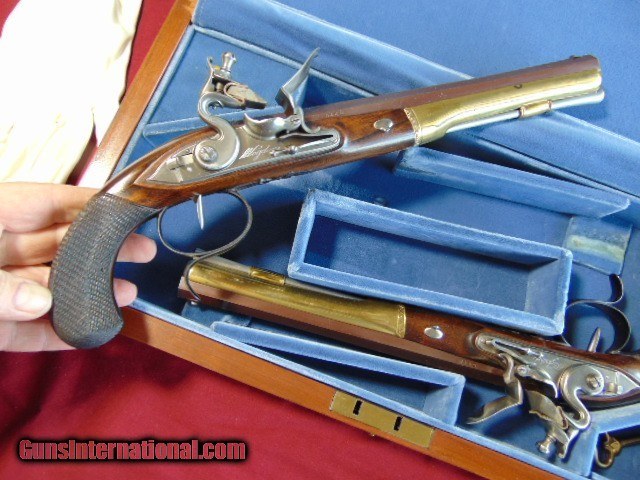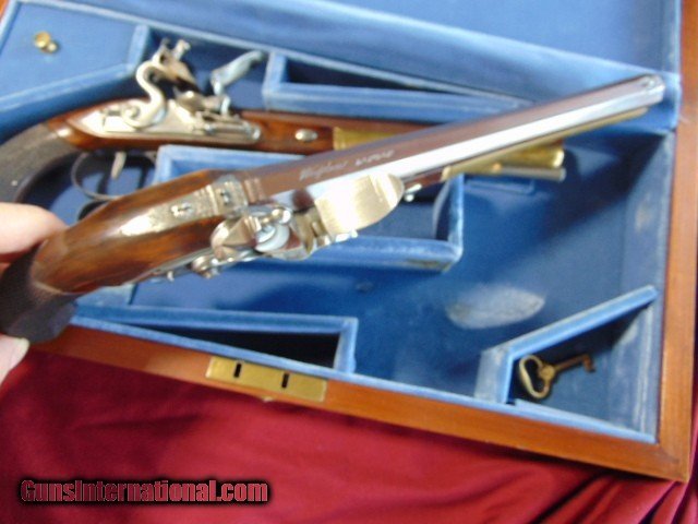 SOLD LARRY- ALEXANDER HAMILTON - AARON BURR .54 CALIBER FLINTLOCK DUELING PISTOLS WITH CASE