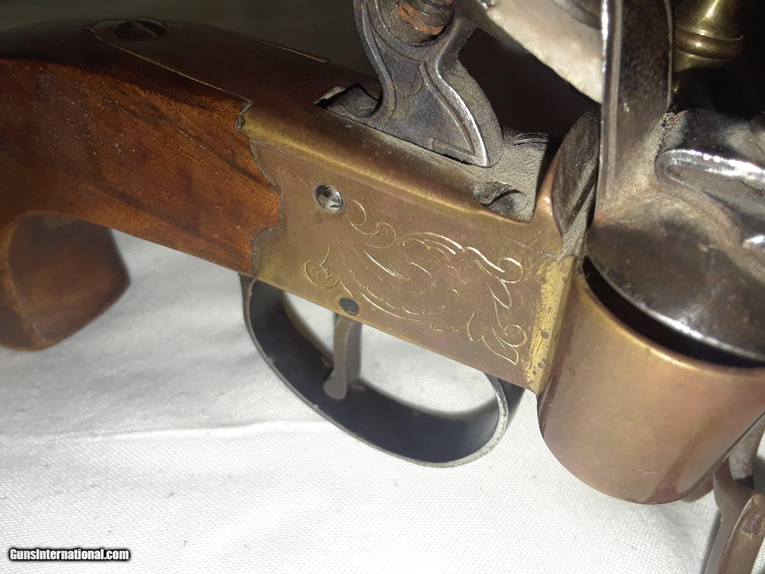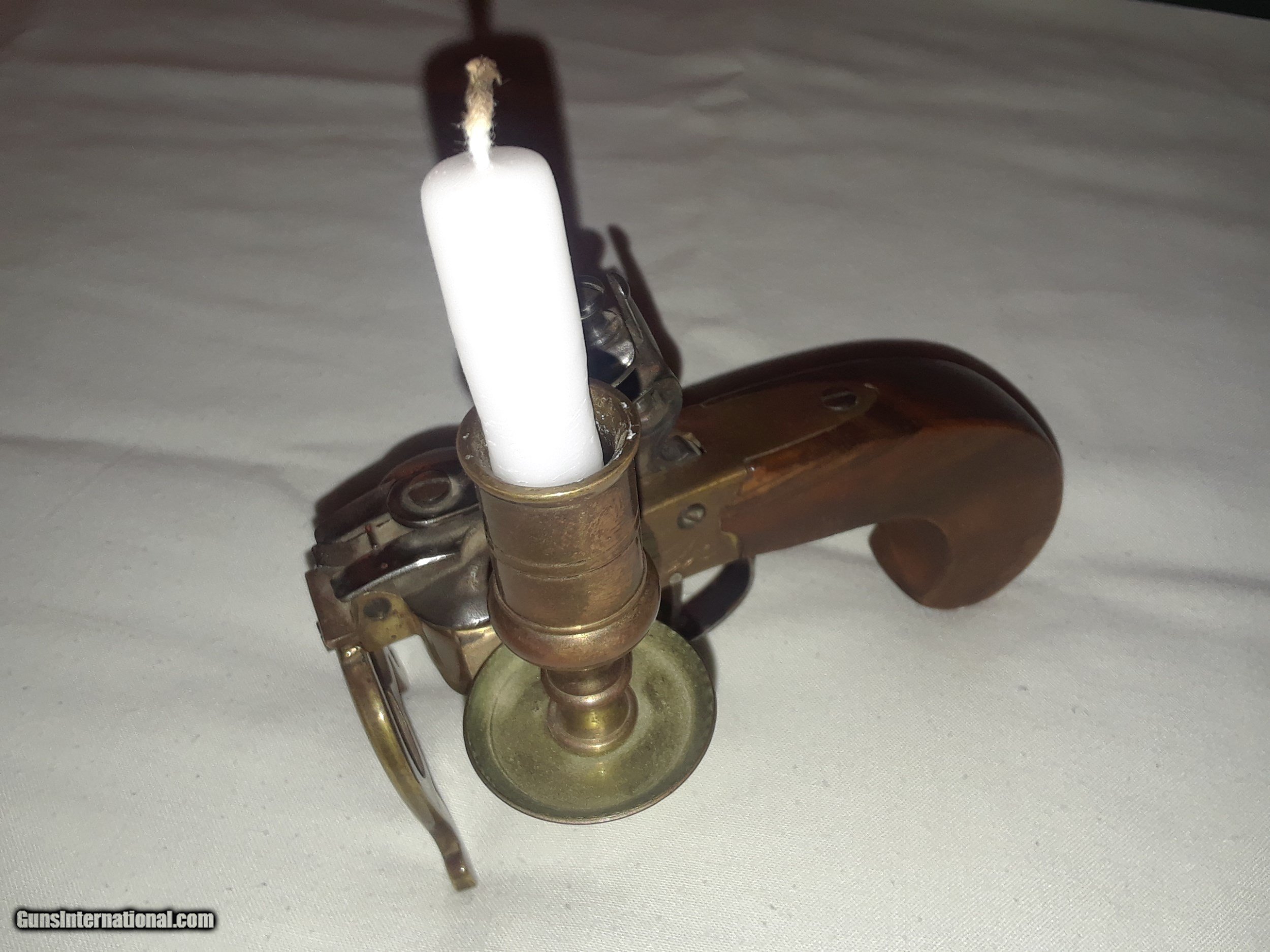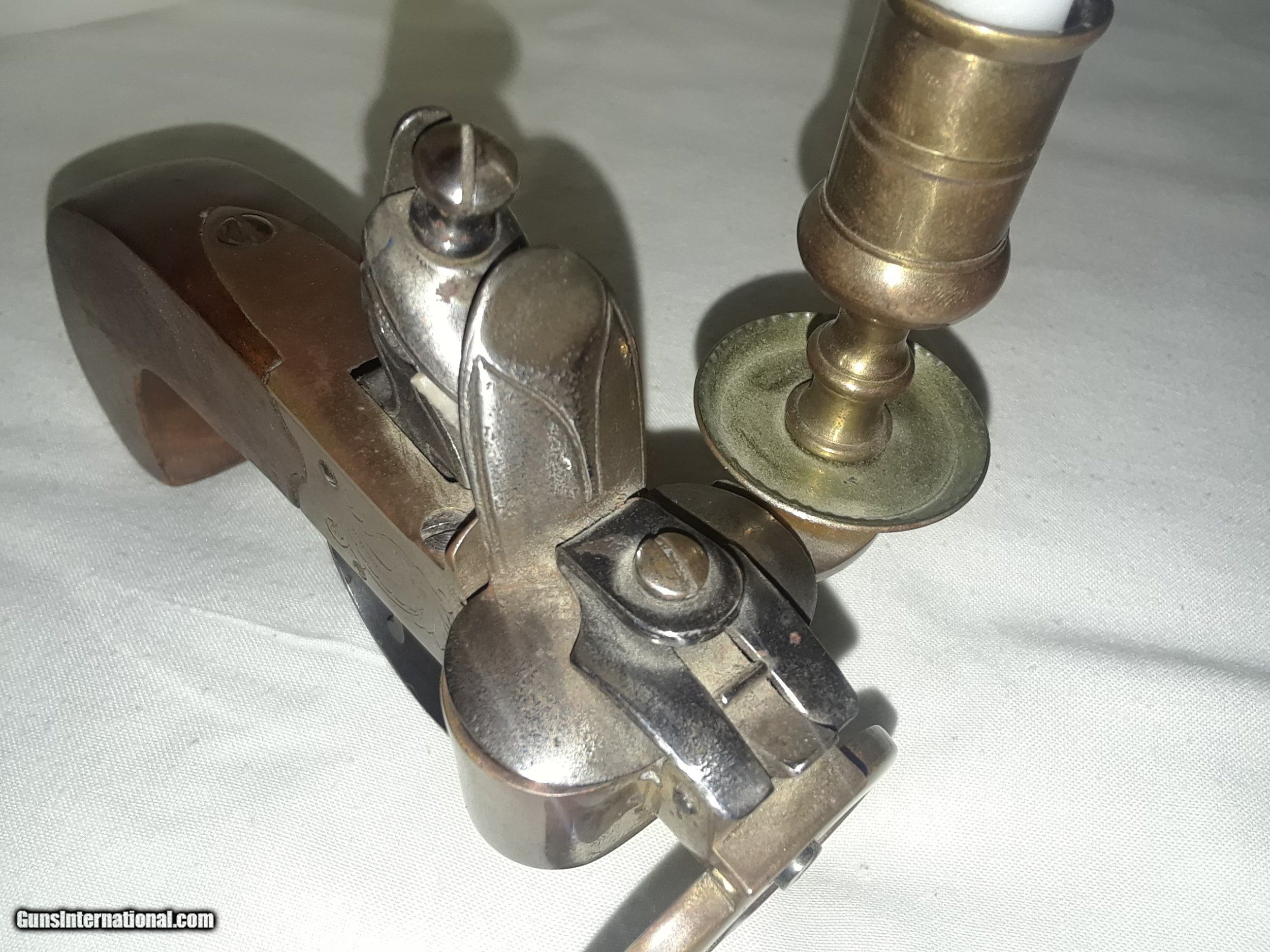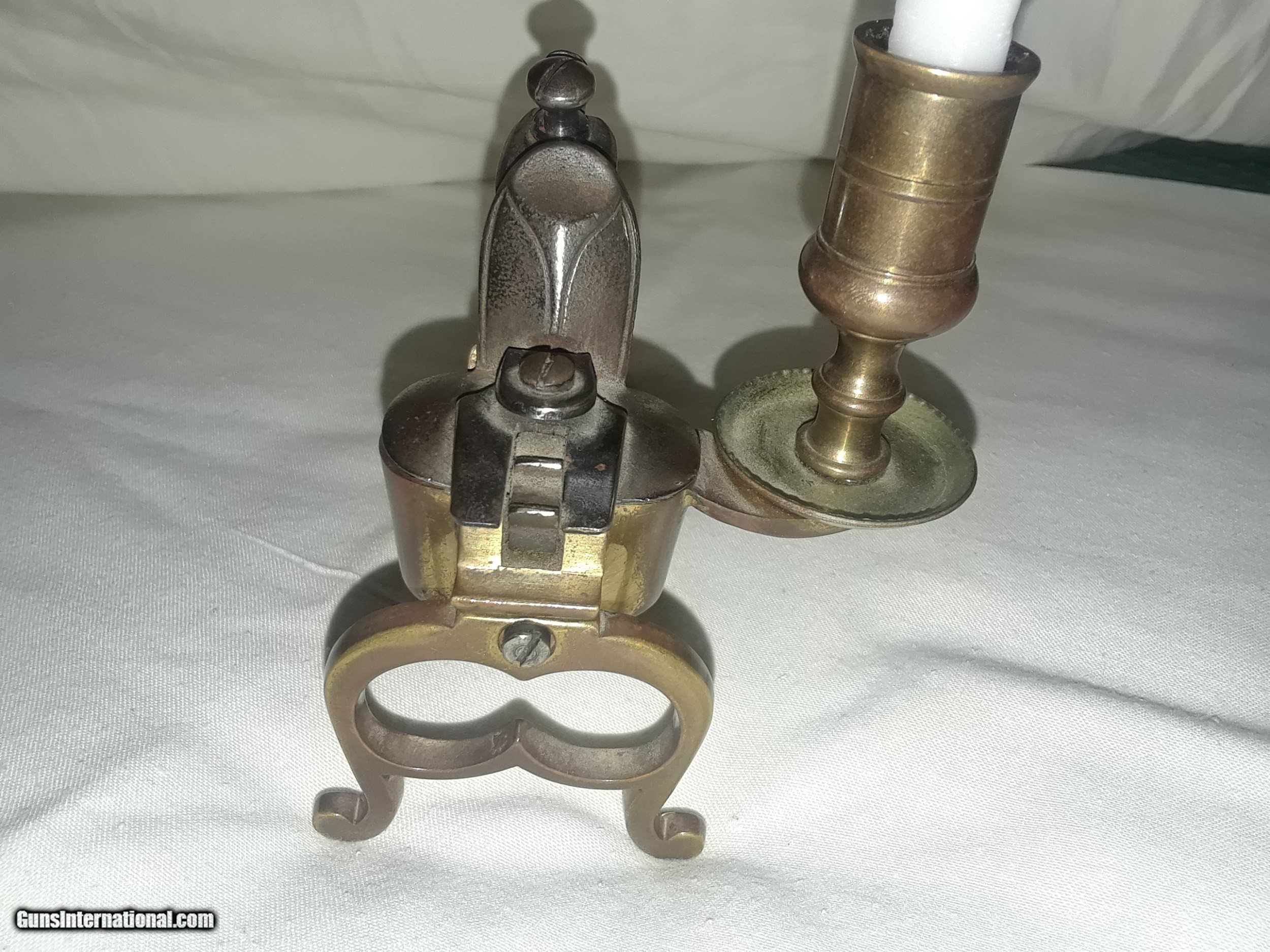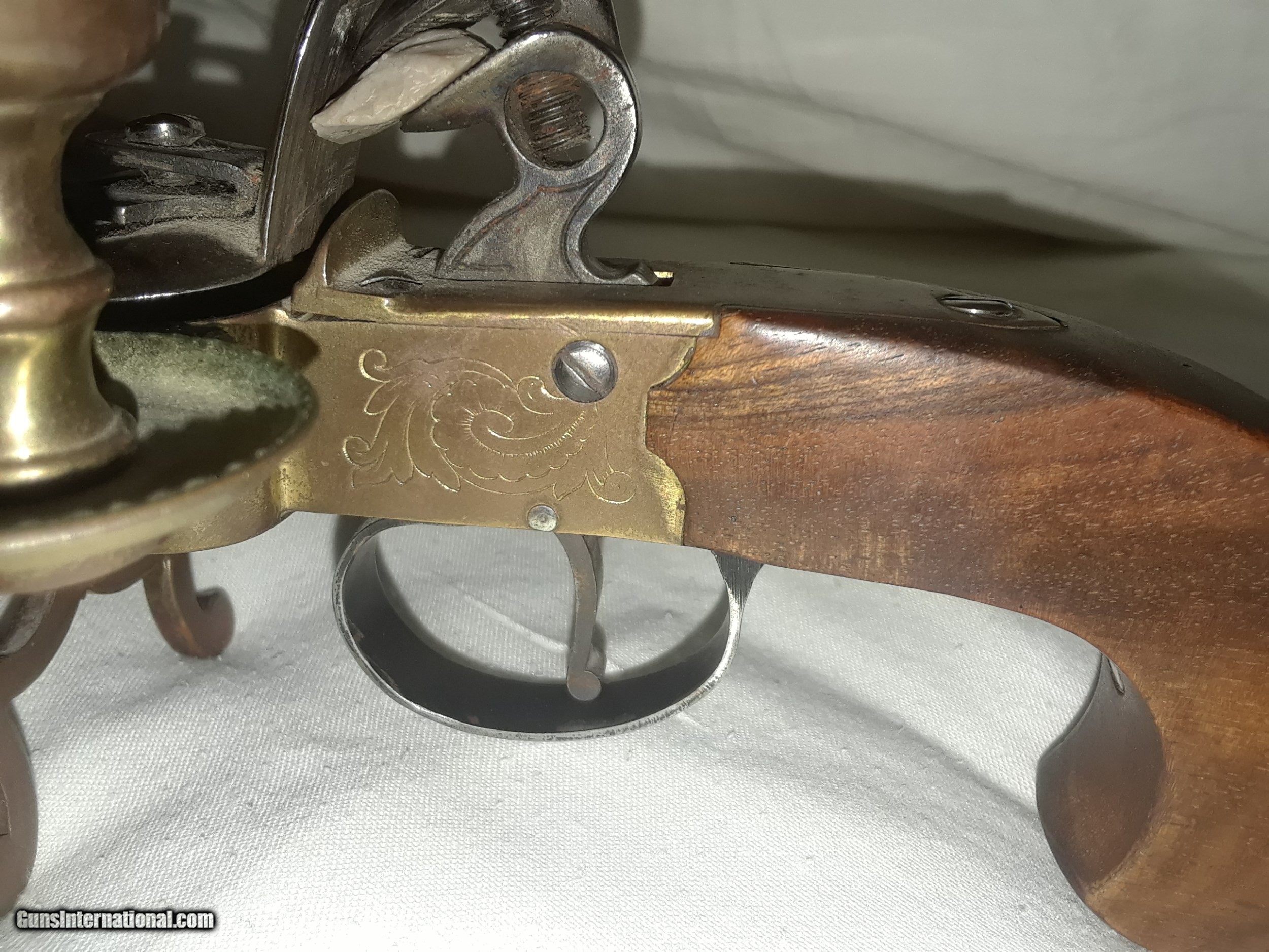 Description: Early 20th Century Copy of an 18th Century Tinder Lighter. Box lock Action works, with flint and Frizzen. Engraved box lock, Brass Furniture and Candelabra. Fully Operational....No reasonable offer denied. SOLD Curio/Relic: Yes |