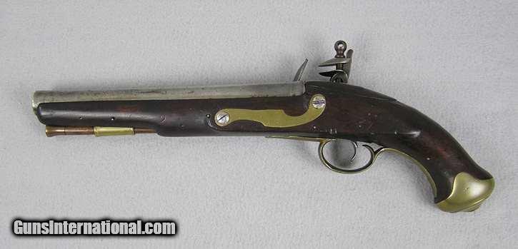 Description: #3996 Tower Flintlock Pistol, 1786 Stock Cartouche This is a round barrel 65 caliber Tower Flintlock pistol and has Perth F C on the barrel and to the right is a Crown over GP which is an English definitive Proof mark since 1637 and a Crown over V which is a London inspection mark since 1670. There is a nice Crown with the broad arrow acceptance mark to the right of the large Crown over GR on the lock. On the wood just behind the lock is a very nice Crown over 1796 cartouche and also a letter C above that also a small crown to the right of the tang of the trigger guard. The smooth bore barrel is 9” long and is 15 ½” overall in length. The mechanical function is very good tight and the wood is not damaged or cracked except for a very small grain crack at the escutcheon screw on the left side. The ramrod appears to be a later replacement. I would consider trades for pre 1899 ANTIQUE PISTOLS and rifles on any of my items.. WHAT DO YOU HAVE TO TRADE? Ask about our 30-90 day lay-away program. We accept Bank Check, Money order, Personal checks or wire transfer. SOLD Antique: Yes |