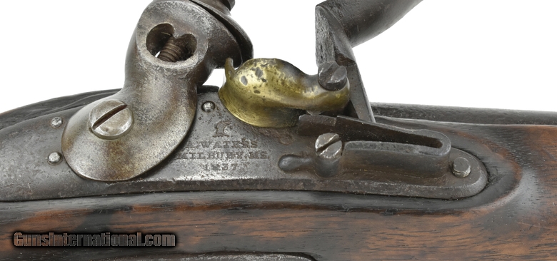 U.S Model 1836 Flintlock pistol. Manufactured by A. Waters and Dated 1837. Action works perfectly. This pistol has seen some real use over the years. The stock has some very old wear on the left side of the stock. Metal parts are good with patina colors. Priced reasonably for a U.S Martial pistol of this model.