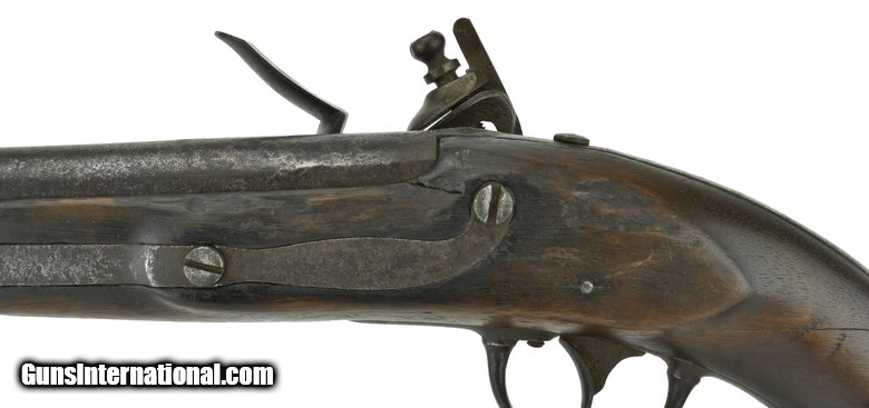 Description: U.S Model 1836 Flintlock pistol. Manufactured by A. Waters and Dated 1837. Action works perfectly. This pistol has seen some real use over the years. The stock has some very old wear on the left side of the stock. Metal parts are good with patina colors. Priced reasonably for a U.S Martial pistol of this model. SOLD |