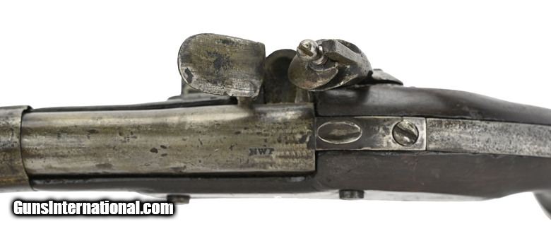 Description: U.S. Model 1836 Flintlock Pistol. Dated 1837. Gun made by A. Waters of Milbury, Massachusetts. Metal has quite a bit of pitting that has been cleaned. Wood is good as a well done restock. SOLD Antique: Yes |
