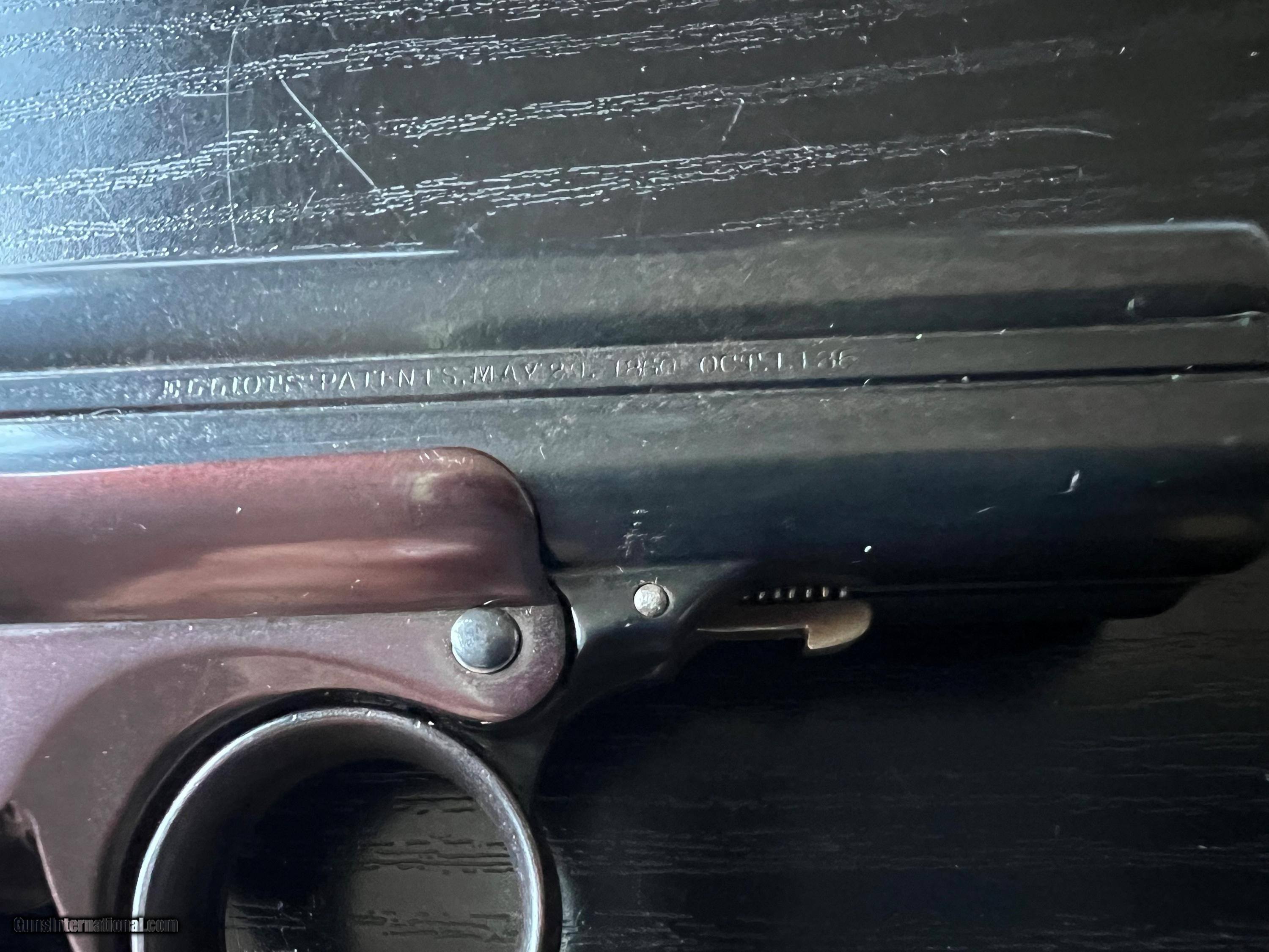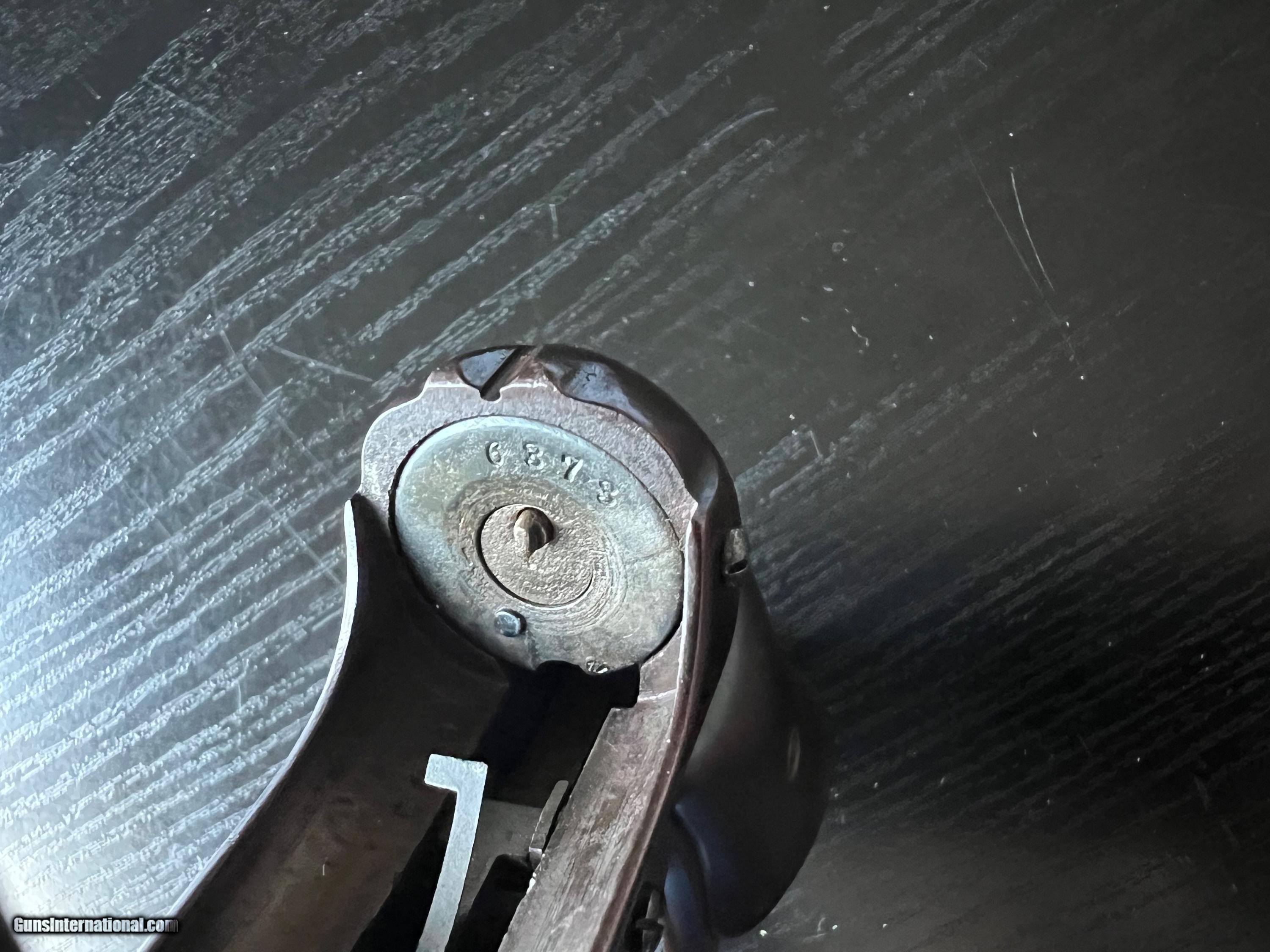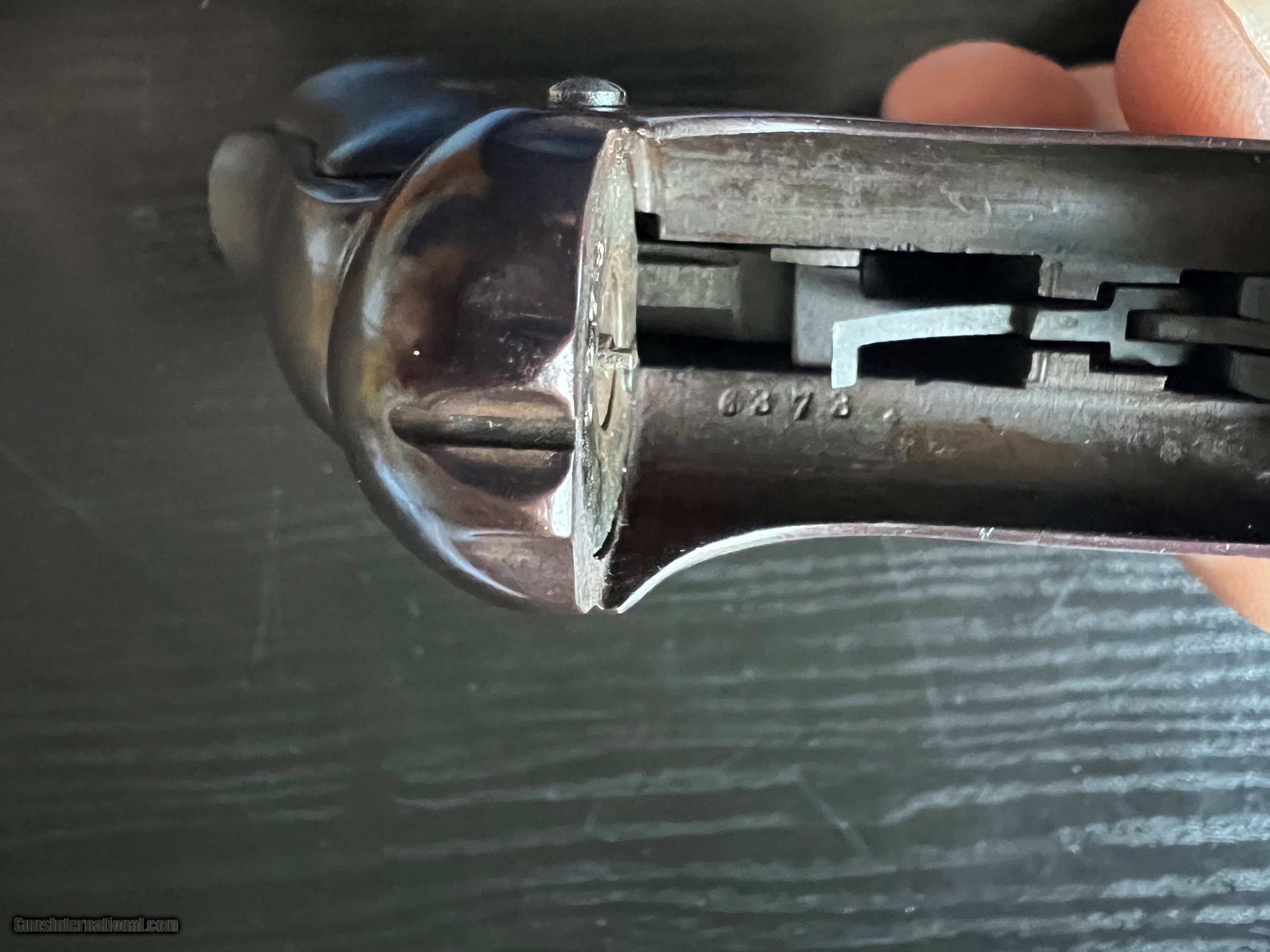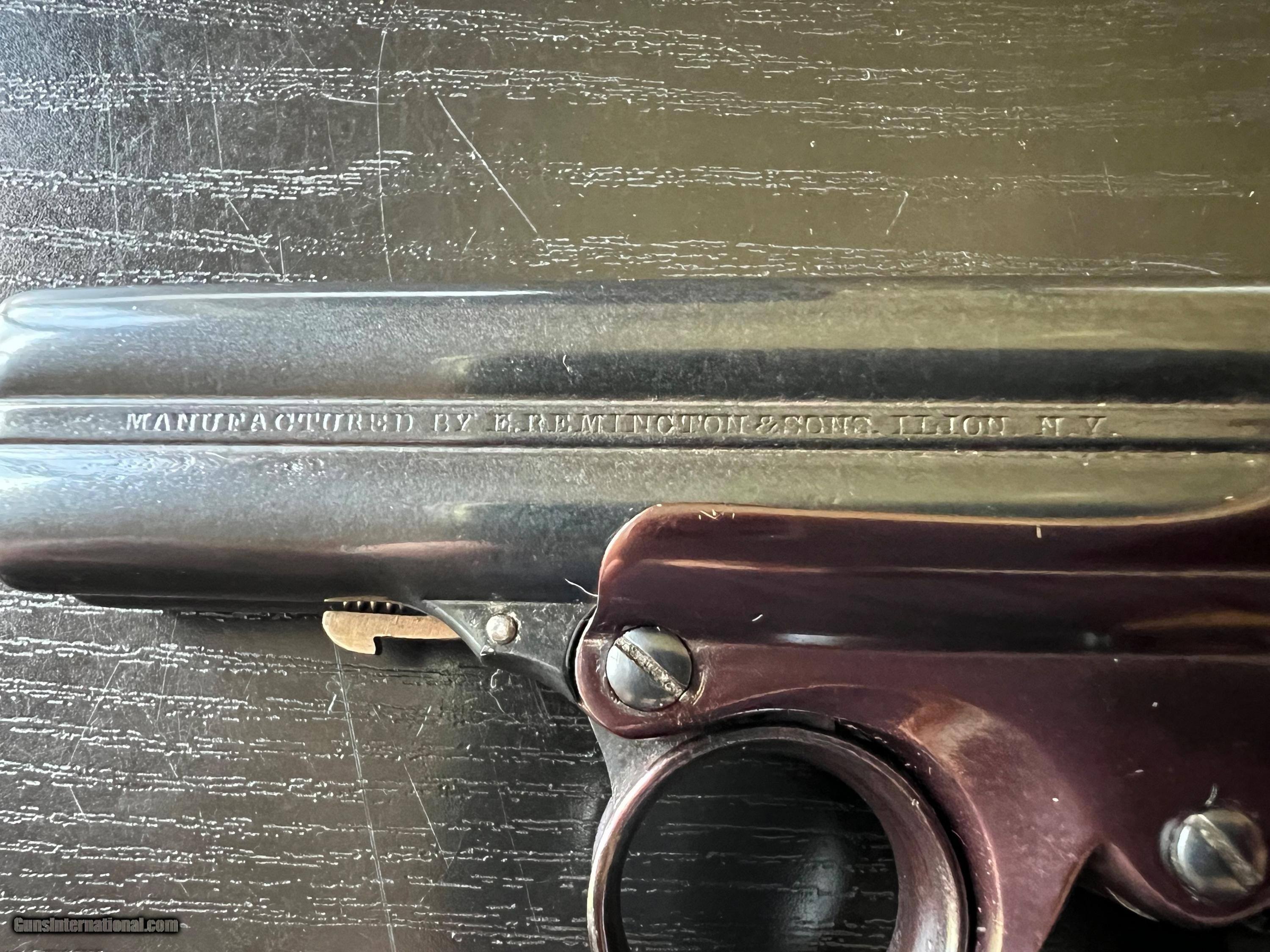 Description: SOLD! This is a very nicely restored antique Remington -Elliot derringer/pepper box pistol - with 4 barrels and a rotating firing pin. Matching numbers. Chambered in .32RF Derringer. All the markings are present. Excellent condition original grips. Dry fires. Good rifling with mild peppering inside the bores. The barrels are finished in rust blue and the frame has a very pleasant plum color blue on it, making for a beautiful contrasting color appearance. These were made in 1860s and were easily concealable and thus very popular among card players in American West. 3-day islnspection. No FFL necessary unless required by your state or locality. Free shipping in Conus. SOLD Antique: Yes |
