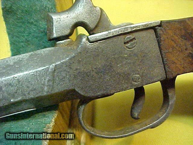 Description: #2478 Unmarked Box-Lock Boot Pistol and/or Muff Pistol, approx 50cal percussion, circa 1845-1870. These were prolific little ultra-cheapie handguns during the California Gold Rush Era (1848-1855) with literally thousands made and carried for protection. Gold panning was especially dangerous, as claim jumpers found it all-too-easy to overpower a gold panner as he was squatting at the rivers edge. The gold panners found that hiding one of these very cheap little guns in the tops of their knee-high boots could be grabbed in an instant, cocked, and discharged in the blink of an eye …and while certainly not a “long-distant” weapon, at 10-15 feet, a 50-caliber ball makes a VERY serious impression the one receiving it!! This style not having the removable screw barrel, is about the cheapest of the cheap, but still a life saver in such a circumstance …and while not a high value antique as antique weapons go, it sure was invaluable if needed!! Action is working, bore is typically a rusty hole, and condition is G-VG for the type. $95 …or if you see something of mine that is over $2000 and buy it, then I’ll throw this in for free. (Such a deal!!) SOLD Antique: Yes |