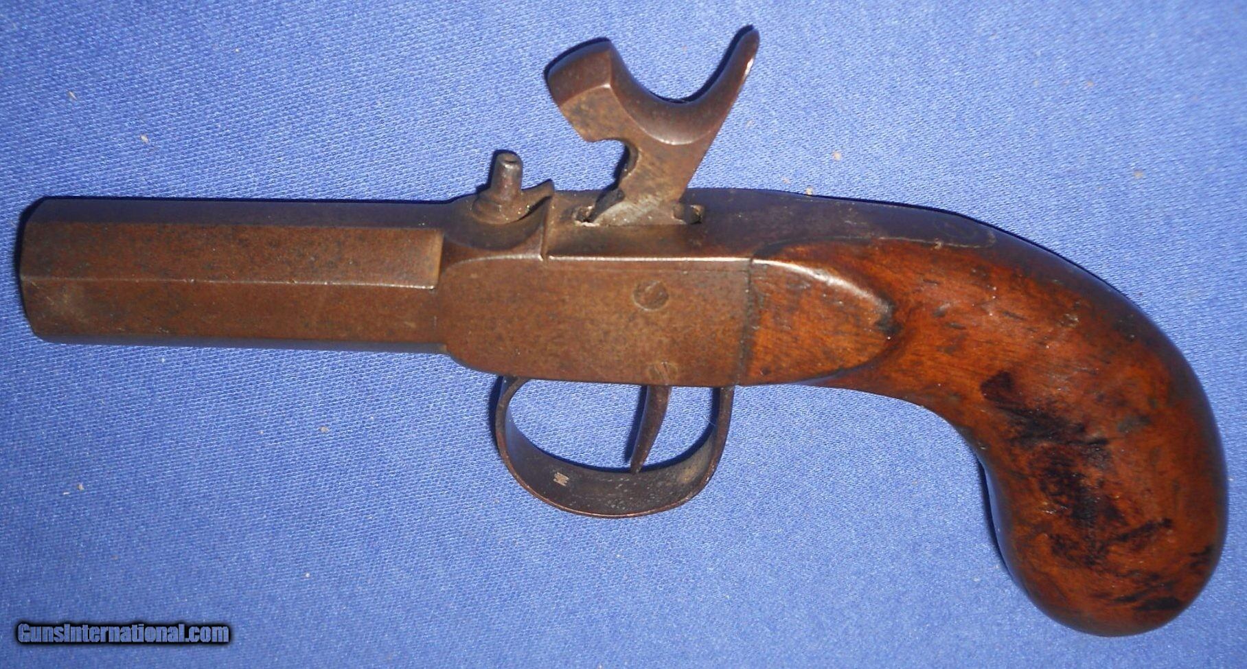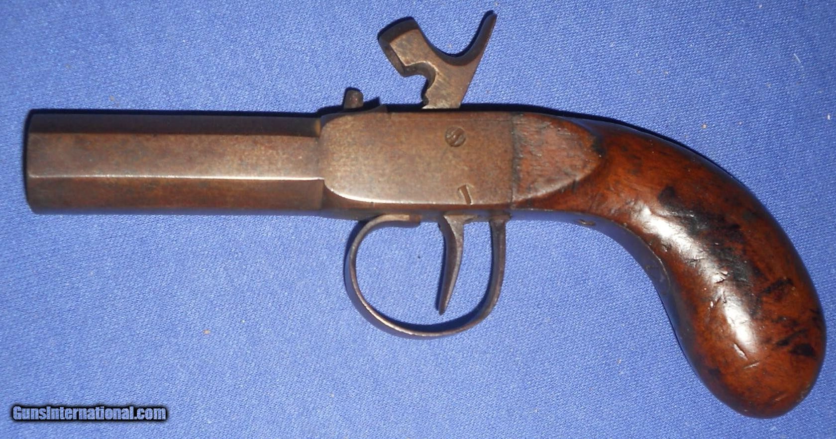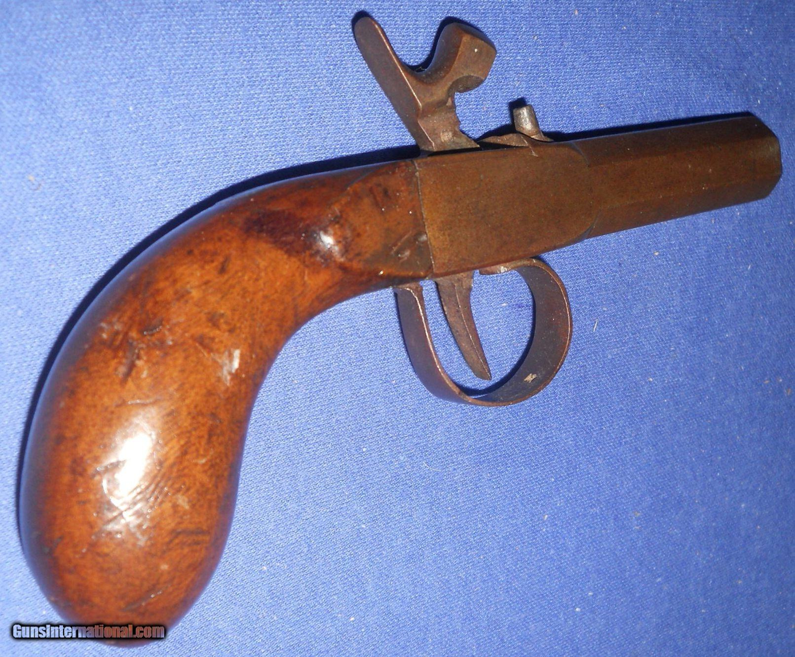 * Antique 1840-1850 UNMARKED PERCUSSION POCKET DERRINGER MUFF PISTOL .45 CA