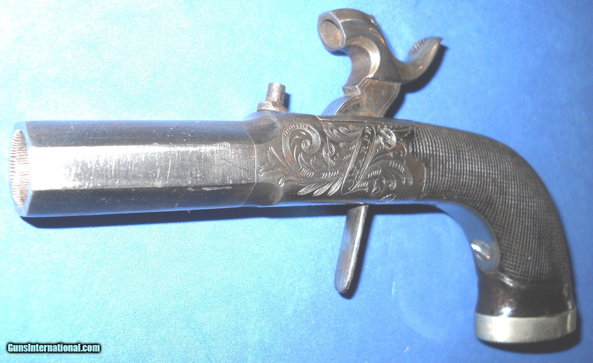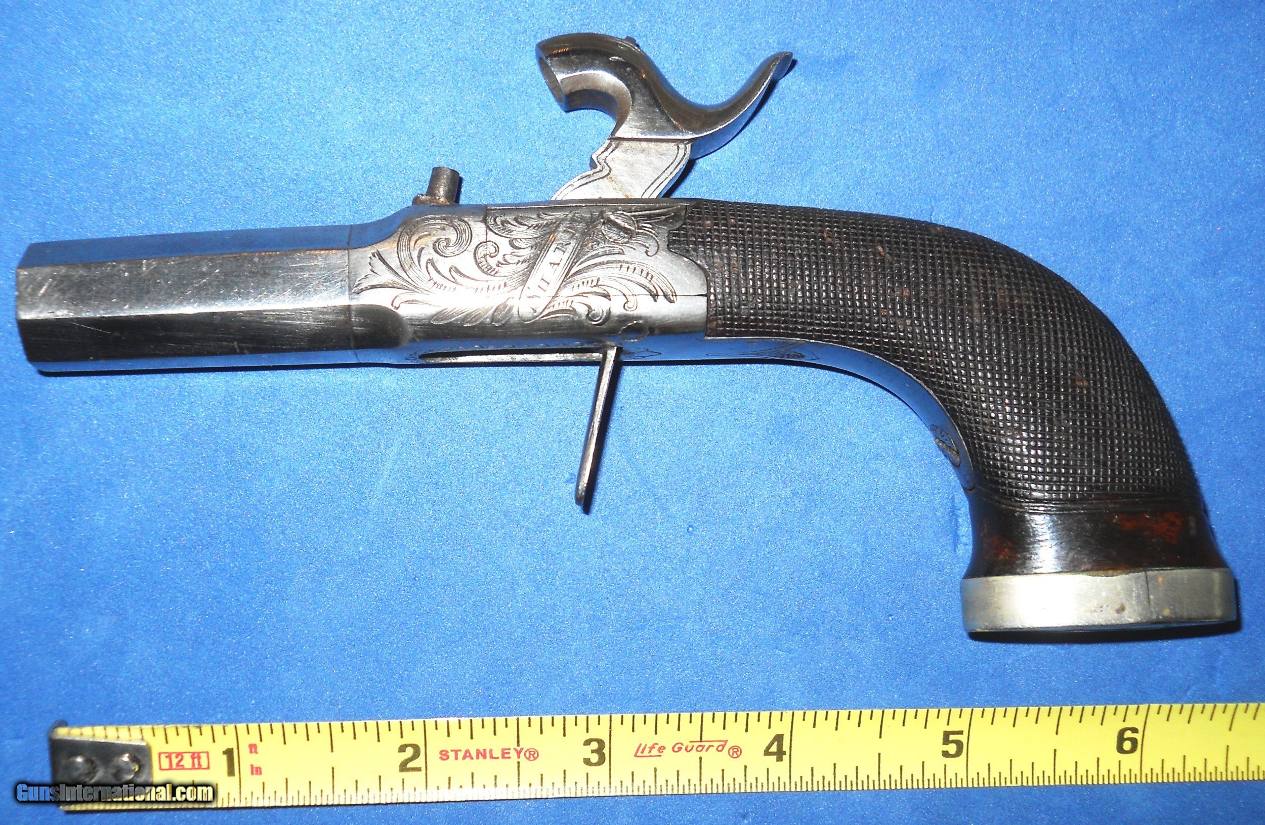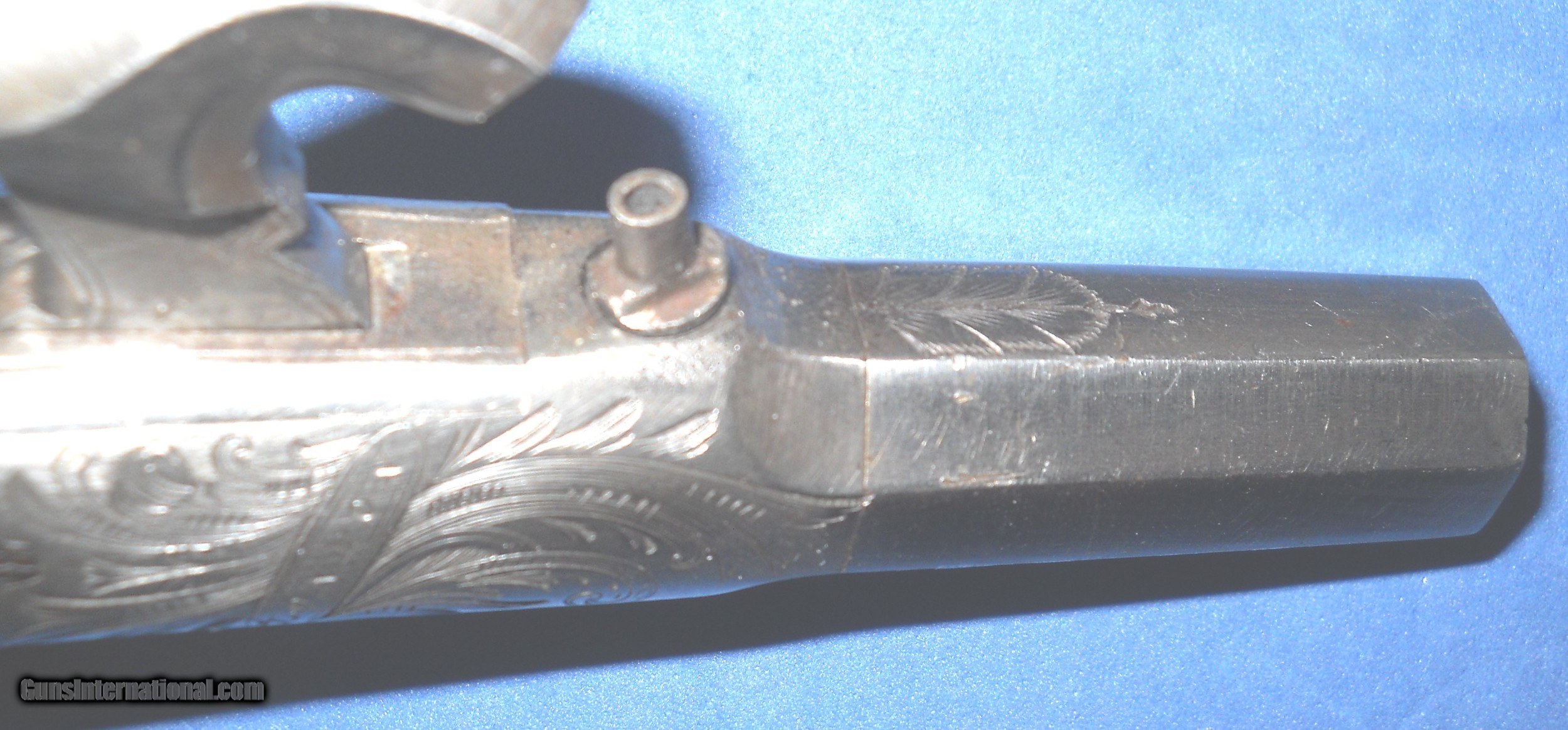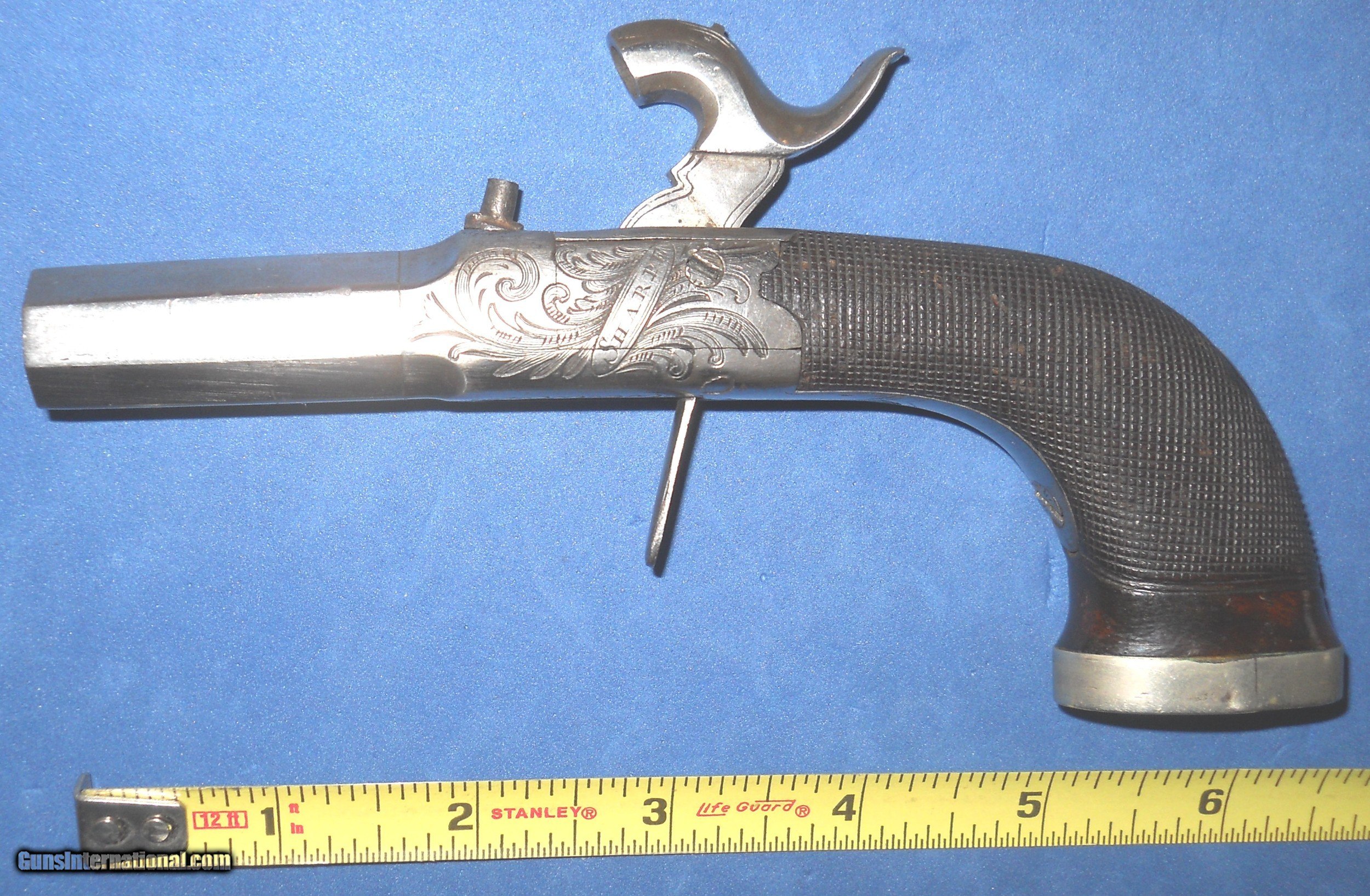 * Antique 1840 s HIDDEN TRIGGER CENTER HAMMER PERCUSSION POCKET PISTOL .45 CAL.