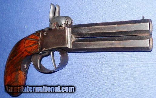 * Antique 1840s DOUBLE BARREL OVER-UNDER PERCUSSION PISTOL BELGIUM ?