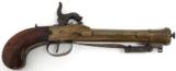 Description: Continental canon muzzle spring bayonet percussion pistol. Barrel measures 6"" and the overall length is 11"". Works fine and is in very good plus condition. No name or proofs on gun. Note: spring bayonet barely catches trigger guard. Buyer should take caution when handling or showing the pistol.
