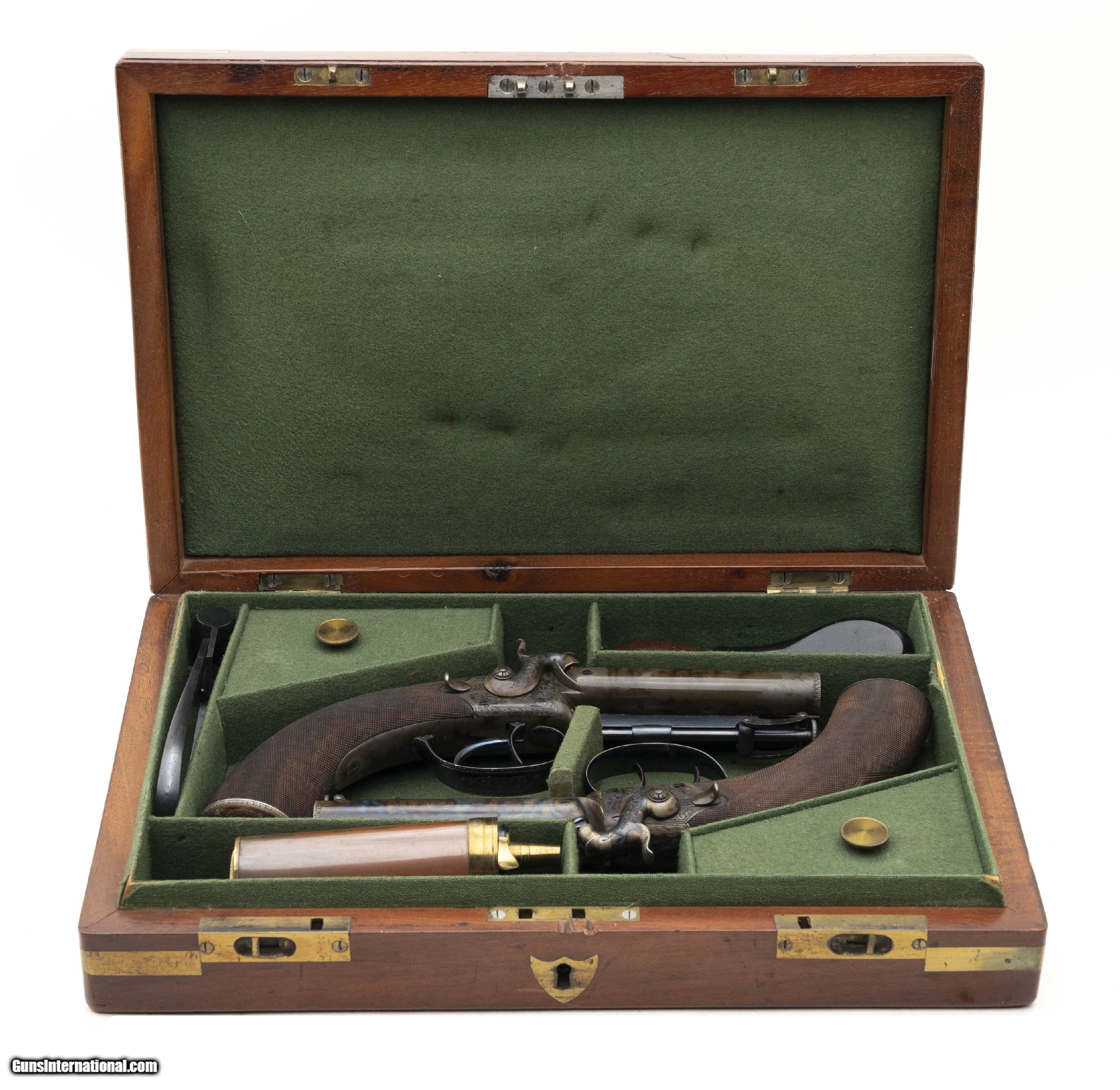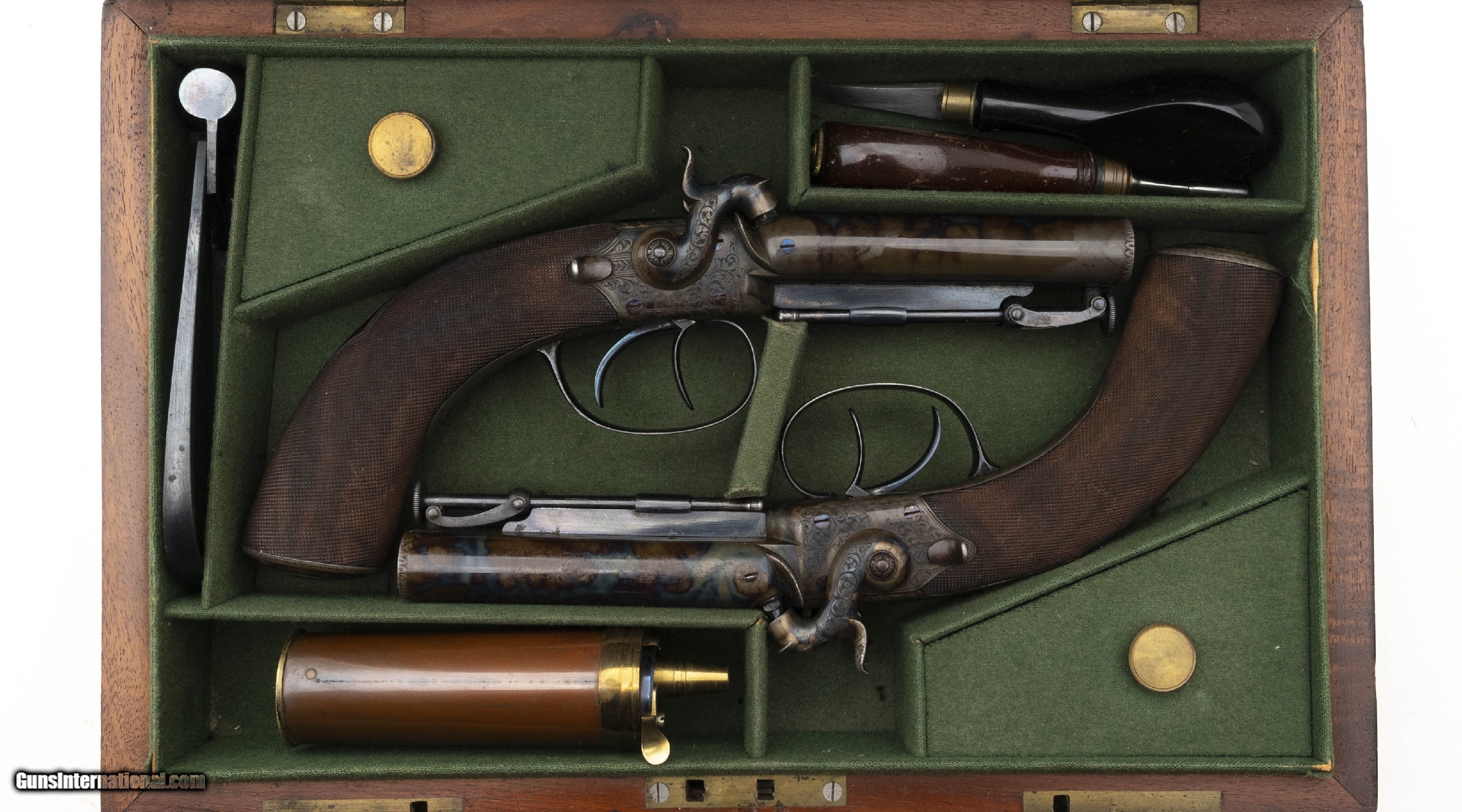 "Beautiful Cased Pair of English Travelers Percussion Pistols (AH6543)