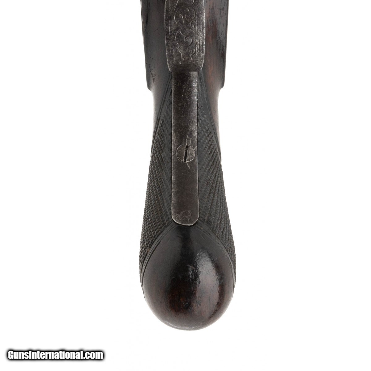 Description: " NSN, circa 1840-1860's, .56 caliber, 8"" octagonal brass barrel. Overall very good condition with floral visible on the breech, lock plate, hammer, trigger guard and barrel tang. Wood has light nicks dings and scratches noted, checkering remains sharp and crisp. Action functions correctly. Gorgeous percussion pistol. Consignment. SOLD Antique: Yes |