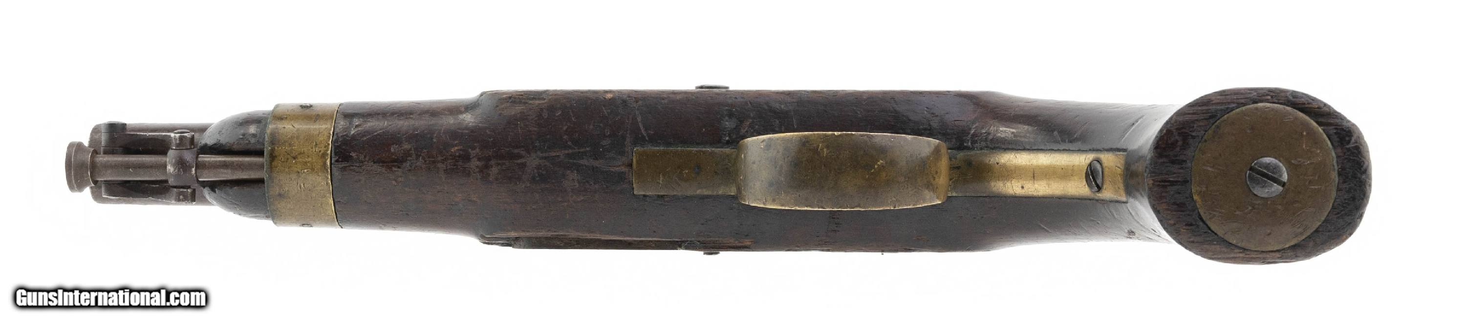 Description: "Dated 1846. This gun was made by Ames in Springfield Massachusetts. 54 caliber with a 8 ½" barrel. The barrel on this gun has a gray to brown patina. Barrel still has visible inspectors marks. Lock has a brown patina. Wood is very good. There is some chipping around the lock. Action works perfectly. Antique: Yes Price: $1,695.00 Contact Seller |