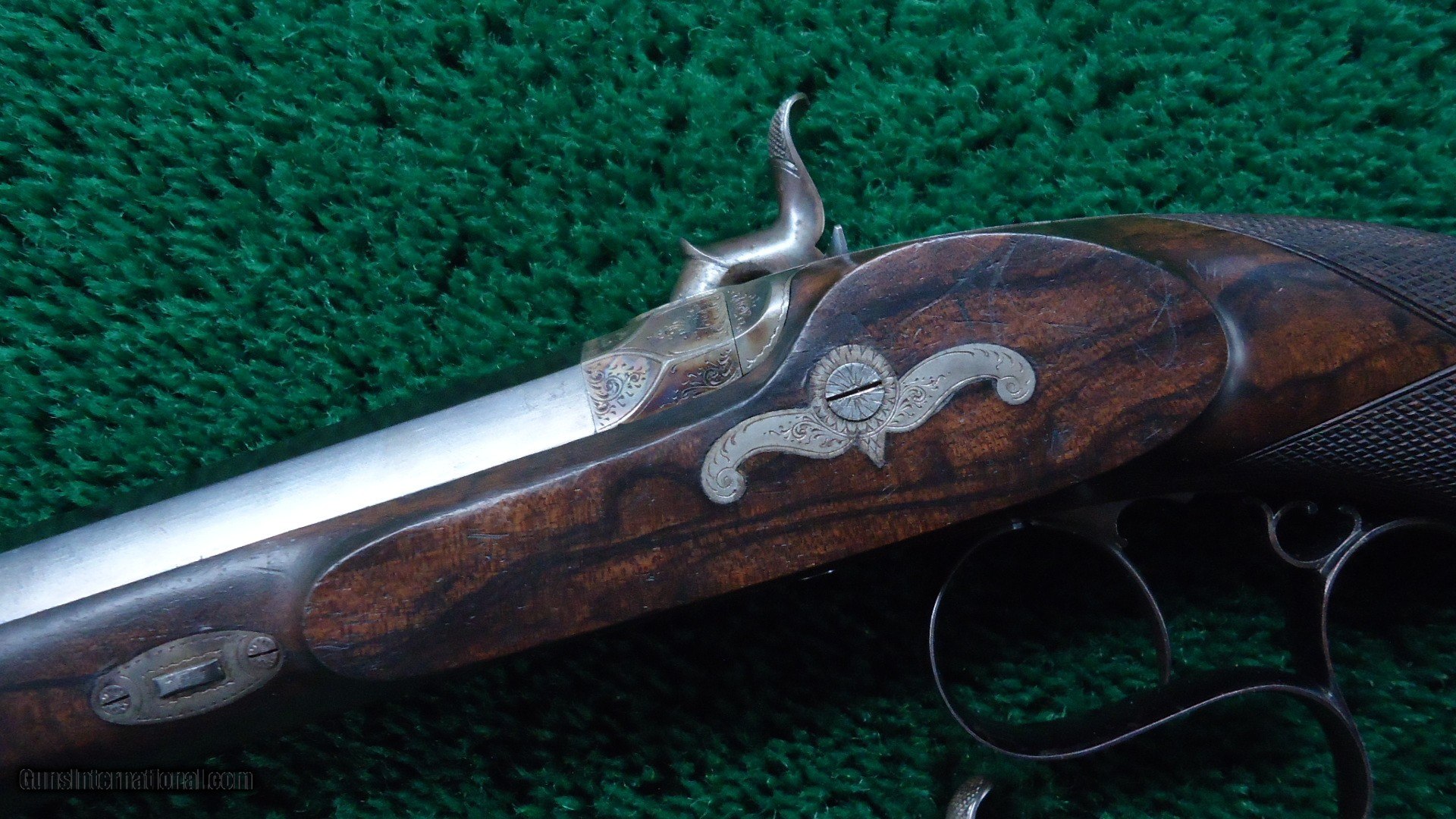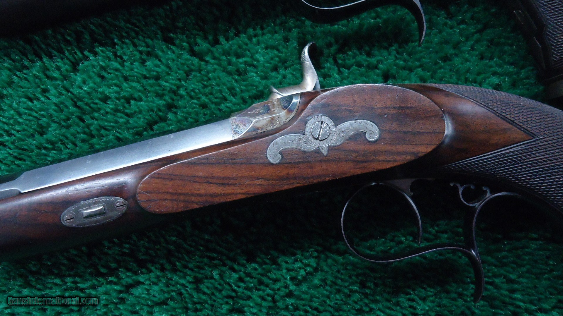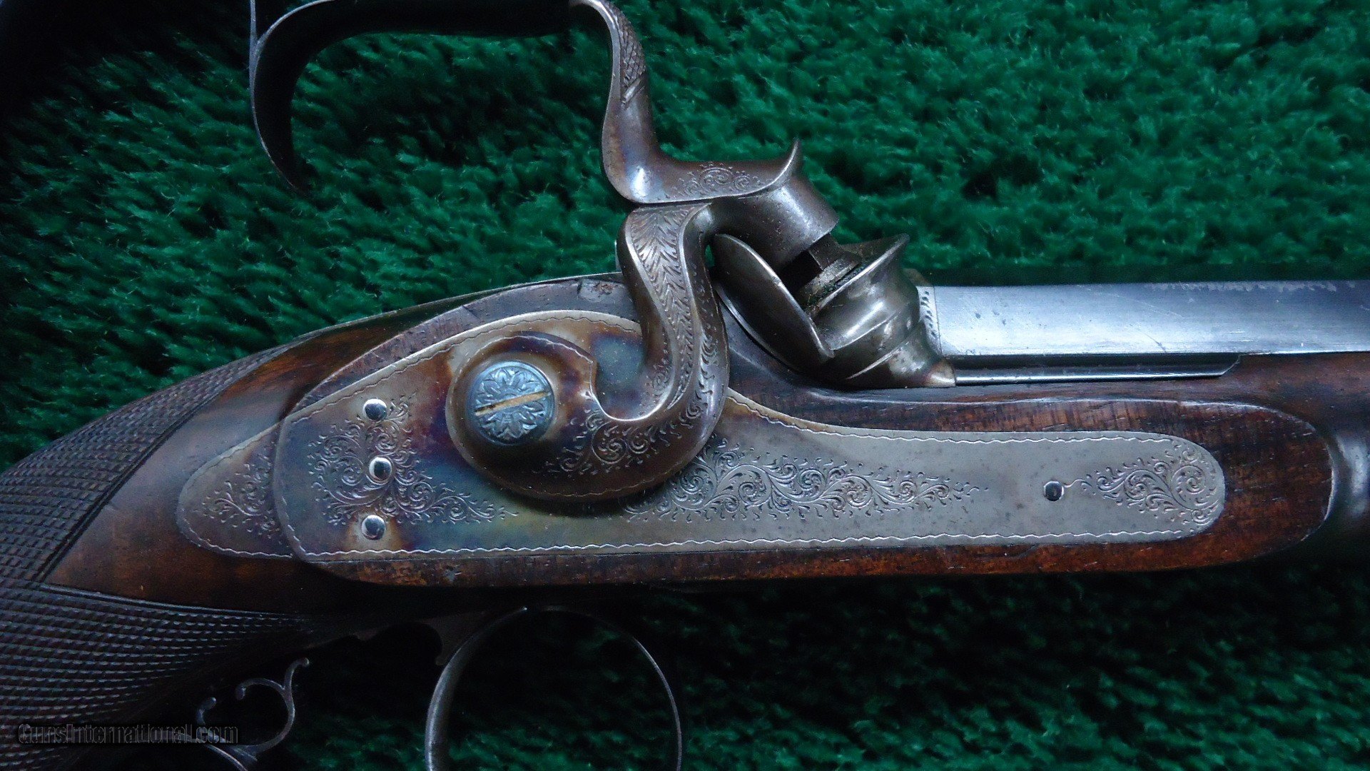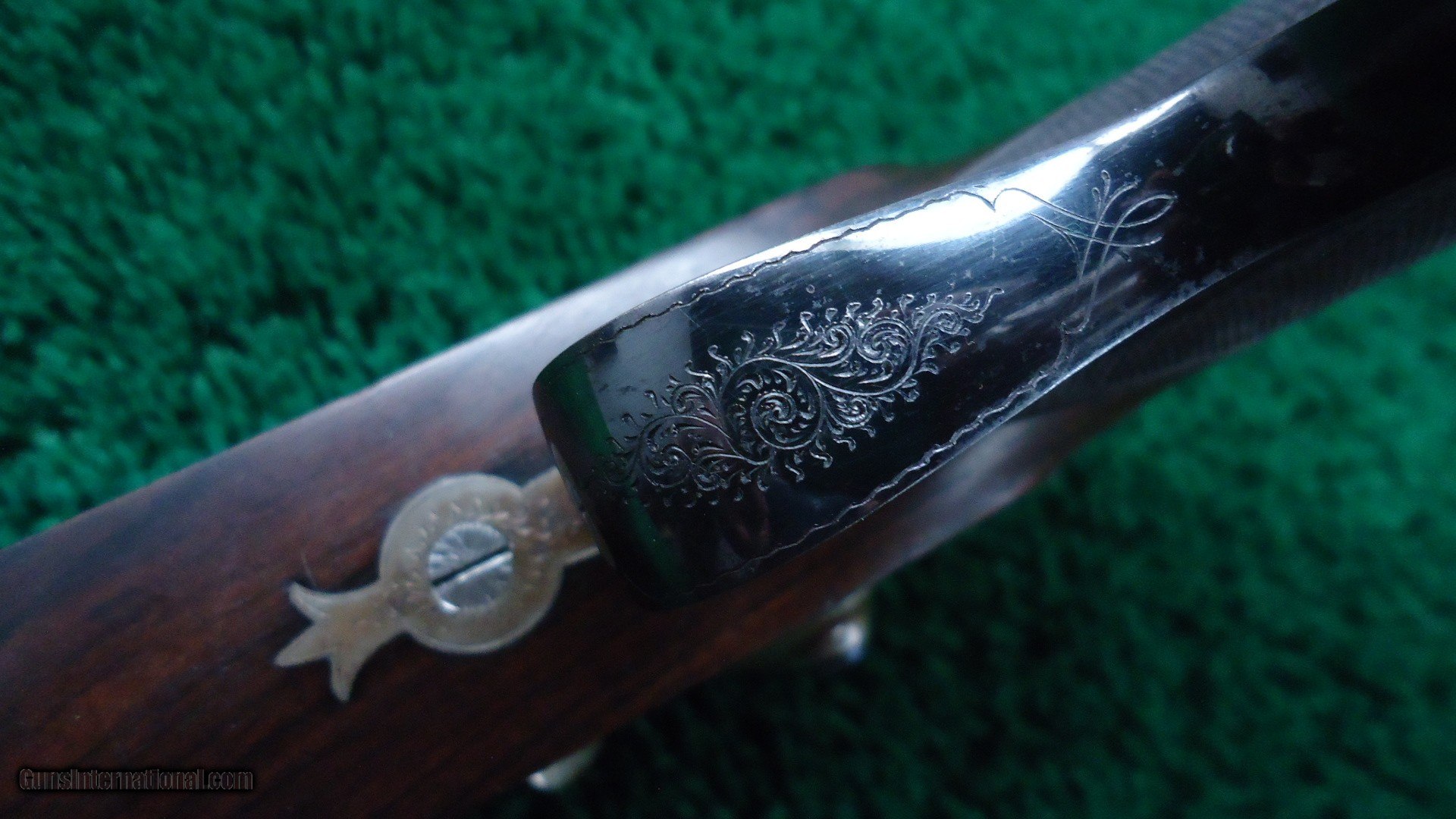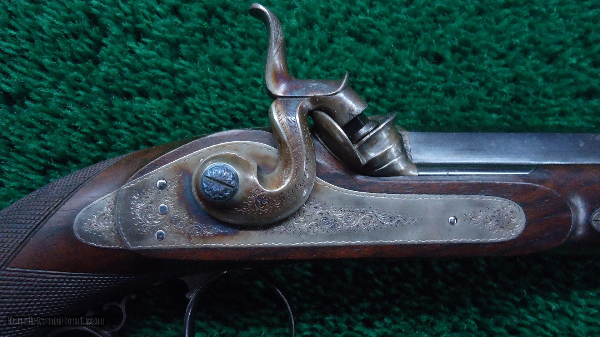 Description: Just an incredible pair of pistols that are as new in condition. Retains all the vivid case color on the lock, hammer and buttplate. Barrel retains all the blue as well. Trigger guards are well sculptured and delicately done. Guns match perfectly. Walnut grips are finely checkered and are in excellent condition with just a few slight handling mars. Mechanics are also excellent on both. These are fitted in a French style case that show only minimal wear. Come with miscellaneous accoutrements. The bullet mold appears to have been refinished. Lining shows only minor wear. There are a few small cracks in the exterior of the case. Leroy Merz Antique Firearms specializes in antique and vintage Winchesters and other fine American firearms. Since 1965 Mr. Merz has taken part in the world of firearms and has been a contributor to many well known reference books. We have hundreds of additional guns in every price range at our home online. Search for Merz Antiques in google. SOLD Curio/Relic: Yes Antique: Yes |