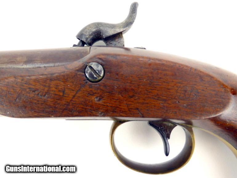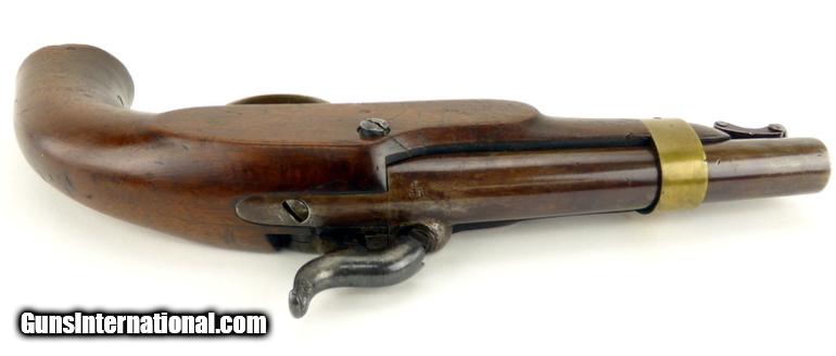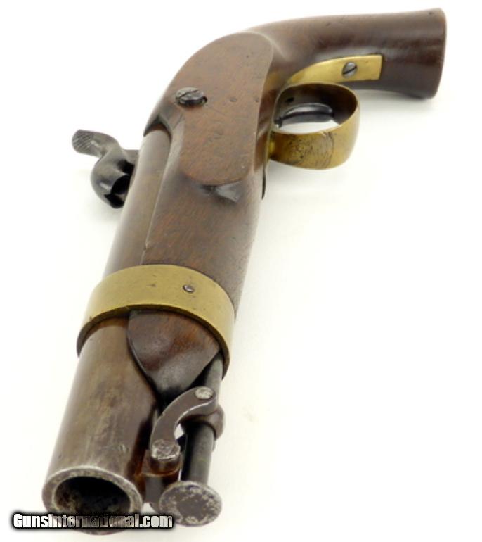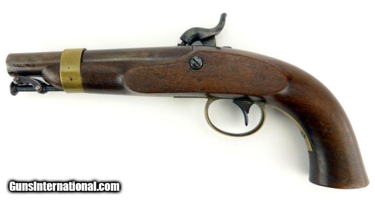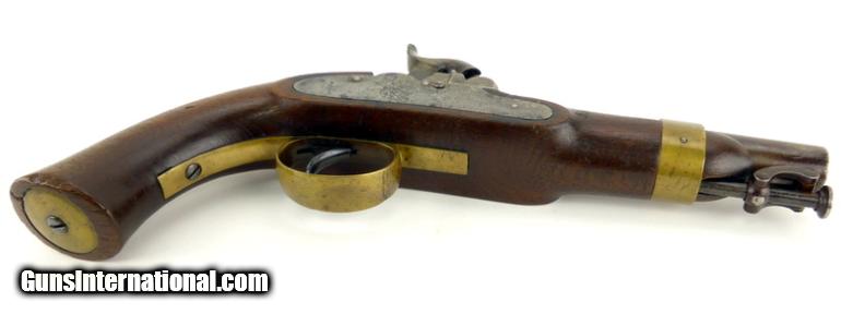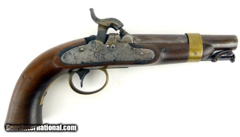 Description: U.S. 1842 Navy Box Lock pistol. By N.P. Ames of Springfield, Massachusettes. Dated 1844 and USN on tail of lock. Cartouche on stock. Lock has a light to medium pit on the lock. Barrel has very good inpector marks and no pits. Stock is very good. Gun is very good overall. SOLD Antique: Yes |