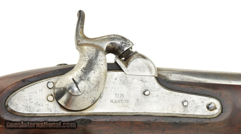 U.S. Model 1842 percussion pistol by H. Aston, Middletown, NJ. .54 Caliber U.S. issue dated 1847. Stock has an excellent “WAT” Inspector cartouche. Marked 1847 on breech plug Tang. This is a very good-looking example. Brass parts have a nice untouched patina. Metal parts are very good. Overall a very good plus pistol. Note: Many of these saw service in the U.S. War with Mexico (April 1846 to Feb 1848). This pistol is dated 1847.
