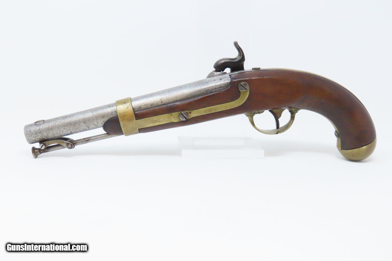 Description: 1 of 1,000 SOUTH CAROLINA Marked Antique PALMETTO ARMORY Model 1842 Pistol CONFEDERATE Rare South Carolina Militia Pistol Made in COLUMBIA, SC! Here we present an antique Palmetto Armory Model 1842 Percussion Pistol manufactured circa 1852 in Columbia, South Carolina for the South Carolina Militia. They saw continued service all the way through the American Civil War. The M1842 was made for cavalry troops and features sturdy construction with lots of brass for support. This was important during a time when one would expend their shots and still have a fight on their hands. Striking your opponent with the pommel of your gun was quite effective. The ramrod is captive, so that it would not be lost in the heat of battle on top of a horse. This example has "PALMETTO ARMORY" over a tree on the lock. "COLUMBIA/S.C. 1852" can be read on the tail of the lock. Palmetto proof marks are on the upper left of the barrel at the breech with "Wm. GLAZE & CO." on the left side of the barrel. These pistols are all assumed to have seen significant Confederate handling in the Civil War and many were lost to attrition. The overall condition is very good. The action is as strong as ever. The bore is smooth and dark. The stock is solid all around. Here is a wonderful opportunity to own a rare Palmetto Model 1842 pistol! Own the original! This is a legitimate antique and not a reproduction. Barrel is 8 ½ inches. Caliber: .54 Overall condition as seen in photos. Very Fast. Very Safe. FREE SHIPPING WORLDWIDE. Delivered directly to your door by express mail! Guaranteed AUTHENTIC & Includes CERTIFICATE OF AUTHENTICITY. ancestryguns $8650 #200878 SOLD Antique: Yes |