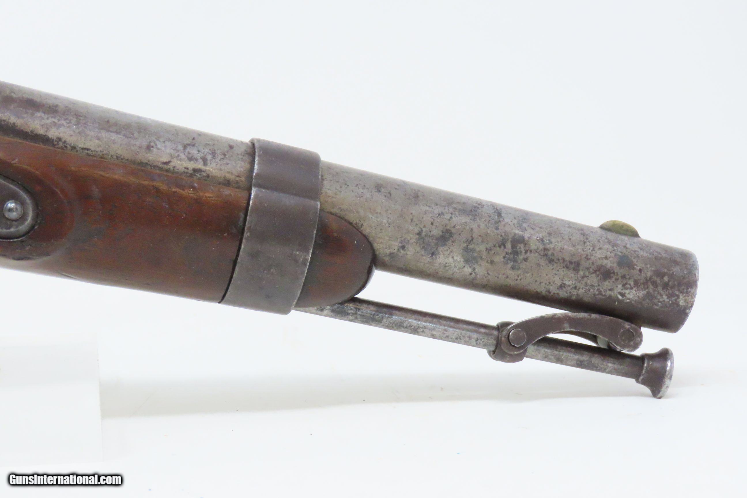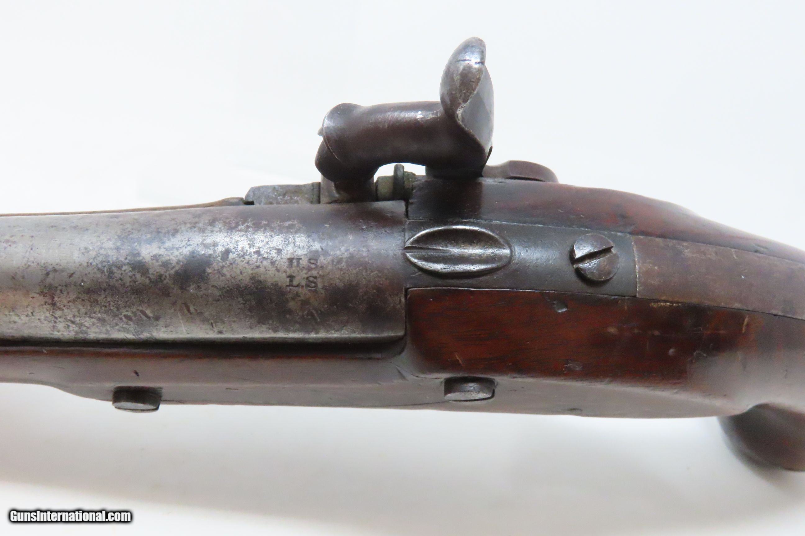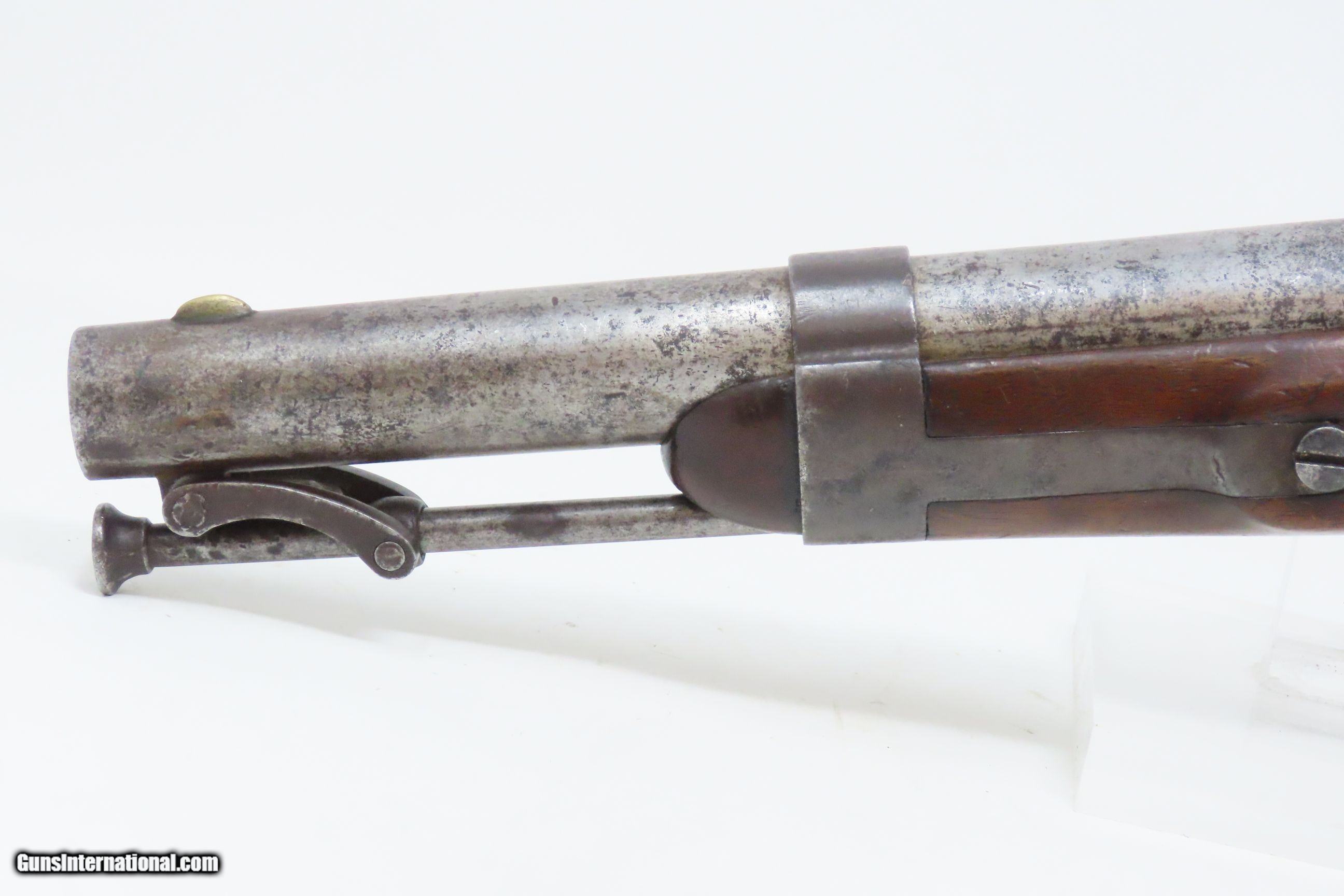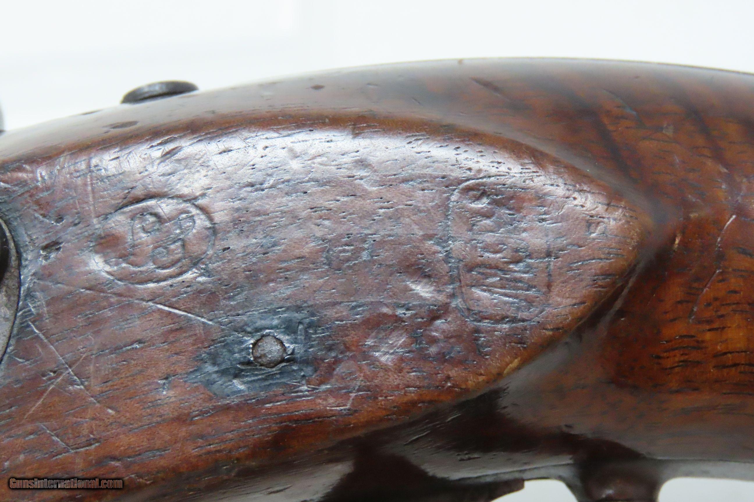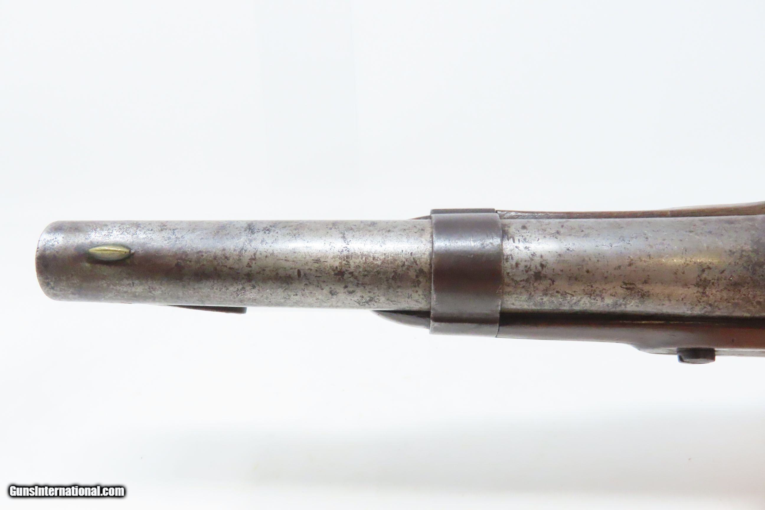 Description: 1840 WATERS US Model 1836 DRAGOON Pistol .54 CIVIL WAR Confederate Antique Made During the Mexican-American War & Used in the ACW Here we present an antique Asa H. Waters U.S. Model 1836 Pistol, made in 1840. This pistol would have started out life as a flintlock and had a period conversion as the new percussion technology developed. There were actually two manufacturers of these guns: Asa Waters and Robert Johnson. Combined, the production totals were 41,000 guns. This was the last U.S. martial pistol to use the flintlock system, and many consider this the best of all U.S. flint guns due to its craftsmanship and aesthetic appeal. The gun is historically significant as this was the primary issue pistol during the Mexican American War (1846-1848) and was even significantly used during the American Civil War (1861-1865), especially in this percussion converted format. This one is a commercial conversion prevalent in the Confederacy as these flintlocks were in local militias and armories in the South when the American Civil War began. This one has a commercial hammer with some modest engraving to replace the original cock, the flash pan was ground just enough to get this bolster drum installed, and the frizzen assembly was simply removed. The lock plate is roll-stamped with an eagle head above "A. WATERS/MILBURY. MS./1840" in three lines. There is a single letter “B” inspection mark also on the lock. The overall condition is good. The action is strong. The bore is patinated and smooth. The stock is solid with some superior grain structure in the top portion. Own the original! This is a legitimate antique and not a reproduction. Barrel is 8-1/2 inches. Caliber: .54 Percussion Overall condition as seen in photos. Very Fast. Very Safe. FREE SHIPPING WORLDWIDE. Delivered directly to your door by express mail! Guaranteed AUTHENTIC & Includes CERTIFICATE OF AUTHENTICITY. ancestryguns $1700 #230033 SOLD Antique: Yes |