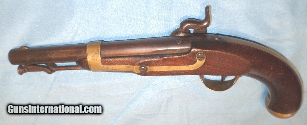 Description: U.S. MODEL 1842 IRA N. JOHNSON .54 CAL. PERCUSSION MILITARY PISTOL WITH 1853 DATED LOCK & BARREL. THIS EXAMPLE IS IN FINE CONDITION HAVING A 8 1/2" BARREL AND VERY GOOD SMOOTH BORE. THE BARREL & LOCK HAVE PROPERLY AGED TO A MIX OF DARK GRAY & PLUM BROWN PATINA WITH MINIMAL TO NO PITTING. INSPECTOR MARKED "B" BRASS FITTINGS HAVE TONED TO A WARM MUSTARD PATINA. ALL THE MARKINGS ARE INTACT & LEGIBLE. WALNUT STOCK RATES FINE WITH 2 LEGIBLE CARTOUCHES SHOWING MINOR HANDLING MARKS & USE. ACTION IS CRISP & STRONG WITH 2 CLICK HAMMER. AN HONEST U.S. MILITARY PISTOL OF THE TYPE USED EARLY IN THE CIVIL WAR. $25.00 S&H DIRECT TO BUYER ANYWHERE THAT'S OK NO LICENSE NEEDED SOLD Antique: Yes Handgun Caliber: .54 Manufacturer: IRA N. JOHNSON Model: 1842 Barrel Length: 8 1/2 Bore: SMOOTH Chambers: CLEAR Condition: FINE Metal Condition: ORIGINAL Wood Condition: FINE Bore Condition: VERY GOOD Barrel Type: ROUND Action: CRISP Stock: WALNUT Finish: ORIGINAL AGED Manufacture Date: 1853 |
