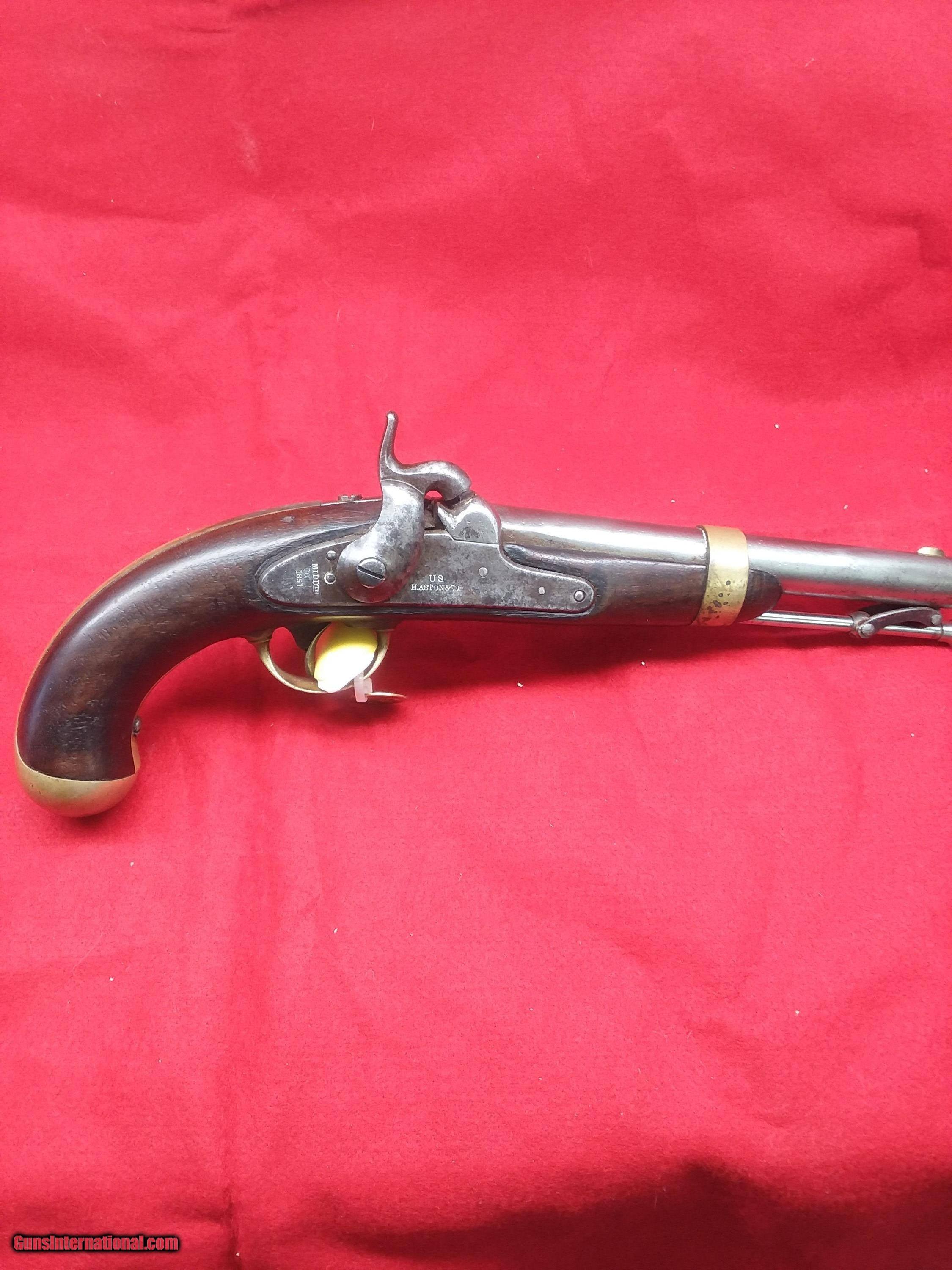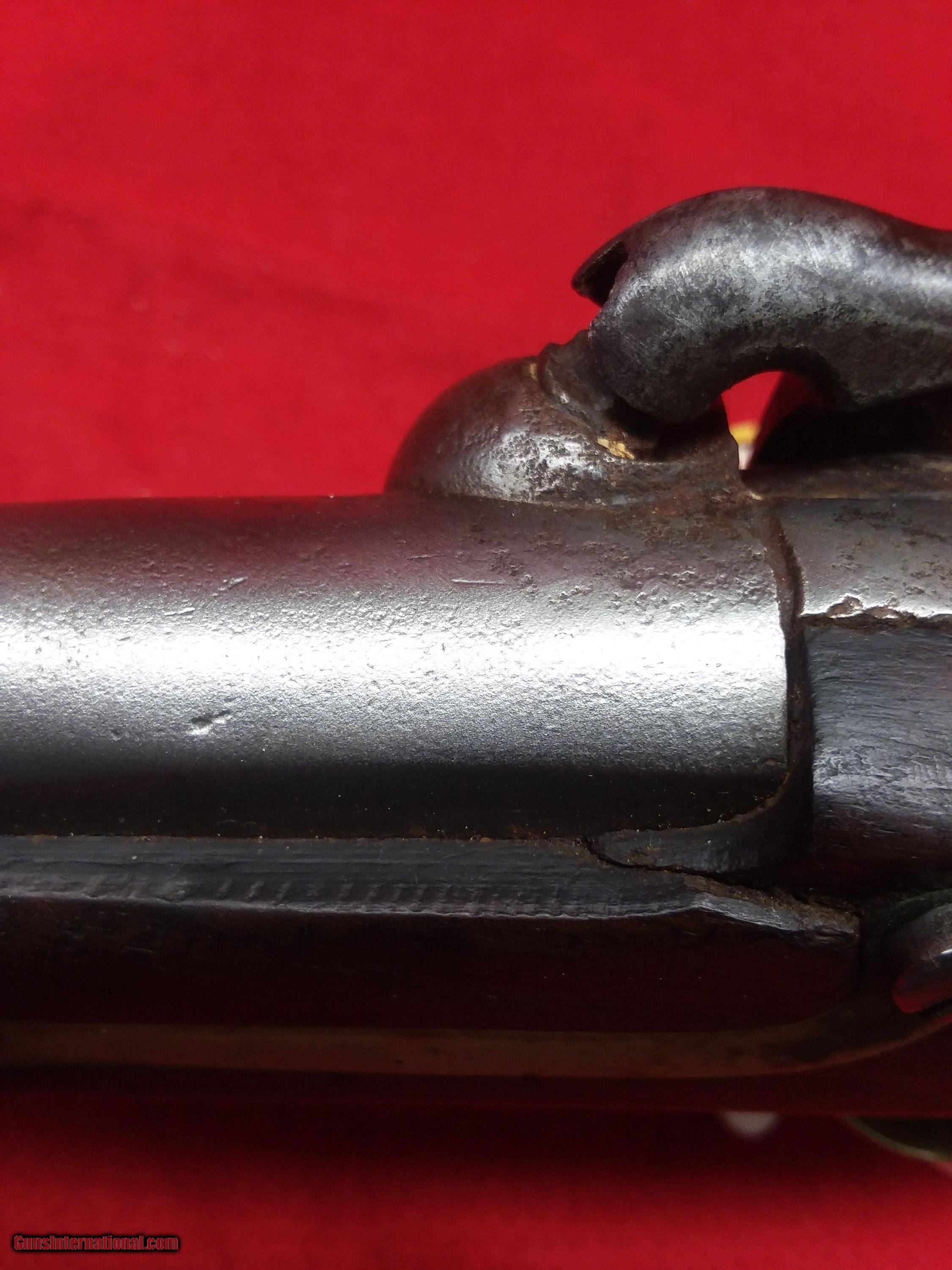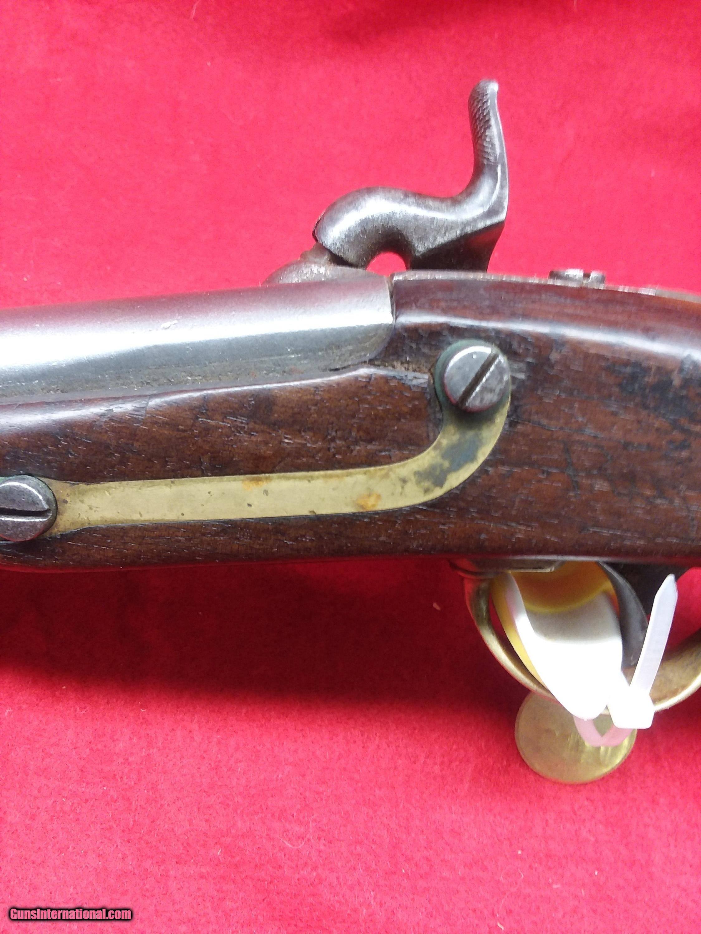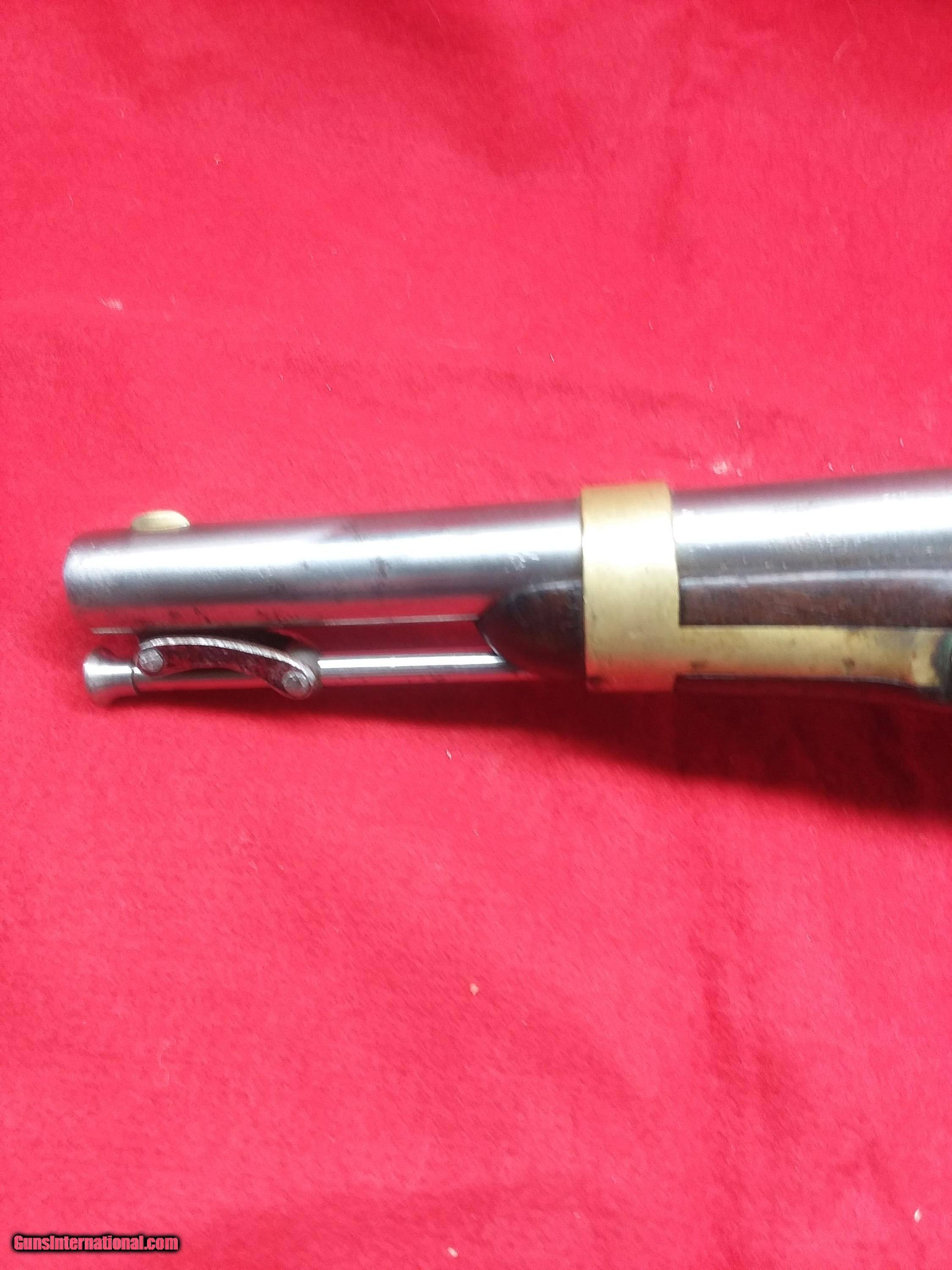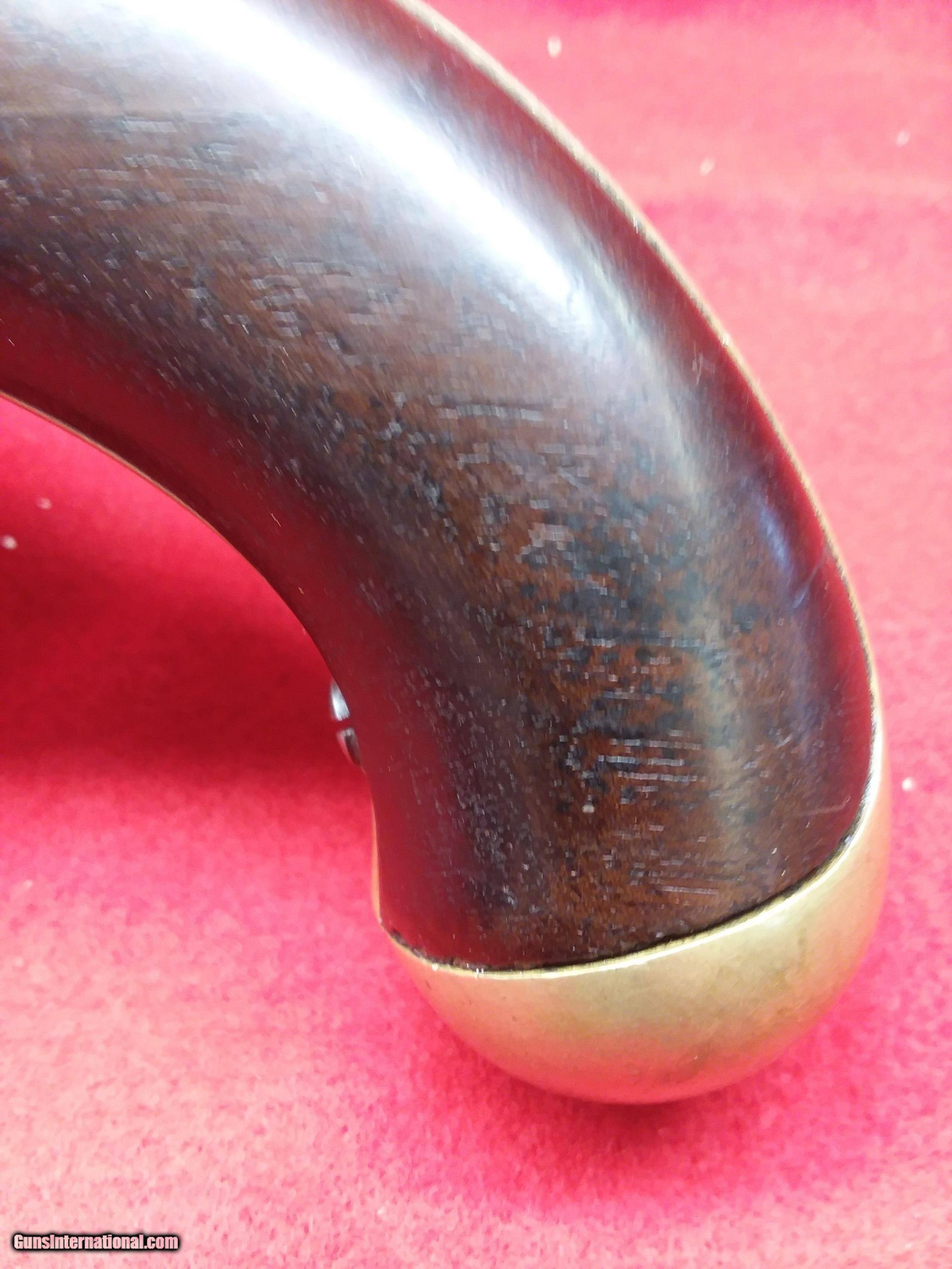 Description: REDUCED. 1842 Aston. (#157) This is a Model 1842 Aston U.S. Contract Dragoon’s Pistol made in 1851 in Middletown, Connecticut. Henry Aston was a gunmaker from Middletown who received a government contract to produce 24,000 Model 1842 pistols in his first contract with the US gov’t which spanned from 1846-1850. In 1850, he received a second contract for an additional 6,000 units, all of which were produced in 1851-52. This pistol is from the 1850 contract. It has a lockplate marking of US/Aston & Co and behind the hammer MIDDTn/CONN/1851. Lock functions properly.. The wood is excellent even though it has no cartouche (either missed by inspector or not issued). Ramrod appears to have been replaced but the swivels are original. The ramrod is captive, so that it would not be lost in the heat of battle on top of a horse. The Model 1842 was the last single shot smoothbore pistol issued by the U.S. Army. Many of these were used, especially initially, by both sides during the American Civil War. Very affordable piece of American history. LEGAL: No FFL or C&R license is required! I will require a photo copy of your state ID or driver’s license with payment to verify your age. I am a collector – not a dealer, so it is your responsibility to know your local laws regarding the transfer of antique guns before . It is my intent to follow ALL national, state and local laws. If you win an and the item cannot legally be sent to you, I will charge a 20% restocking fee. All firearms are being sold as antiques and I make NO warranties or guarantees, whatsoever, as to a firearm’s safety. All firearms should be inspected by a qualified gunsmith before firing. SHIPPING: No local pick up. No international shipments. Shipping within the continental United States will be $65 for long arms and $45 for pistols. Shipments to Alaska and Hawaii will incur additional charges (I’ll only charge the incremental difference in shipping costs). I’ll do my best to ship as quickly as possible, but please keep in mind that I’m an individual and don’t have a shipping department (unless you count my wife). GENERAL: I’m relatively new to GunsInternational but have been a long time participate on both and Ebay. Please check out my ratings: Username in is “intocw” and in Ebay is “n2cw”. INSPECTION PERIOD: I offer a three day, no questions asked, inspection period. I’ll refund the purchase price but not the shipping/insurance. Returned firearms must NOT have been fired, disassembled, or altered in any way. SOLD Antique: Yes Manufacturer: H. Aston Model: 1842 Barrel Length: 8-1/2 |