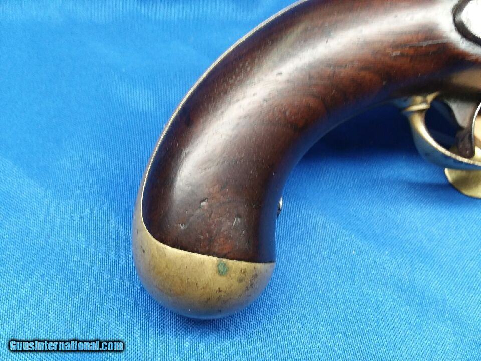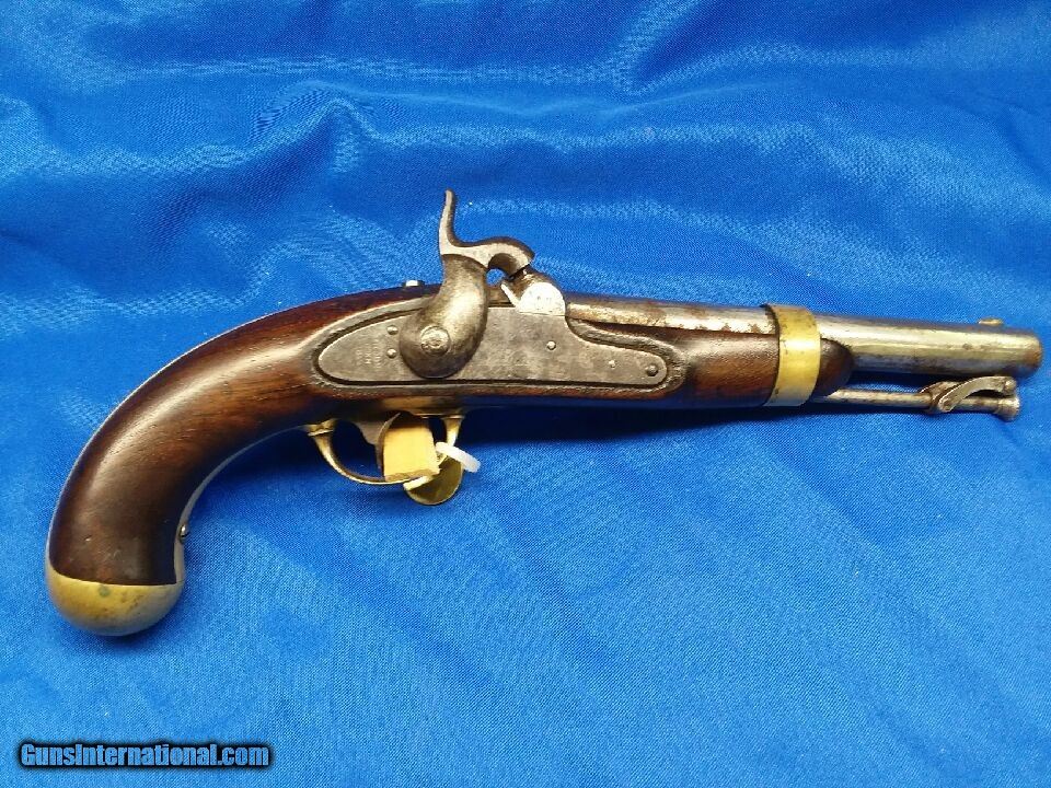 Description: 1842 Aston. SALE PENDING. This is a Model 1842 Aston U.S. Contract Dragoon’s Pistol made in 1852 in Middletown, Connecticut. Henry Aston was a gunmaker from Middletown who received a government contract to produce 24,000 Model 1842 pistols in his first contract with the US gov’t which spanned from 1846-1850. In 1850, he received a second contract for an additional 6,000 units, all of which were produced in 1851-52. This pistol is from the 1850 contract. It has a lockplate marking of US/Aston & Co and behind the hammer MIDDTn/CONN/1852. Lock functions properly. The breech of the barrel has US/W.N/P. The wood is excellent even though it has no cartouche (either missed by inspector or not issued). All original including the swivel ramrod. The Model 1842 was the last single shot smoothbore pistol issued by the U.S. Army. Very affordable piece of American history. LEGAL: No FFL or C&R license is required! I will require a photo copy of your state ID or driver’s license with payment to verify your age. I am a collector – not a dealer, so it is your responsibility to know your local laws regarding the transfer of antique guns before . It is my intent to follow ALL national, state and local laws. If the item cannot legally be sent to you, I will charge a 20% restocking fee. All firearms are being sold as antiques and I make NO warranties or guarantees, whatsoever, as to a firearm’s safety. All firearms should be inspected by a qualified gunsmith before firing. SHIPPING: No local pick up. No international shipments. Shipping within the continental United States will be $45 for pistols. Shipments to Alaska and Hawaii will incur additional charges (I’ll only charge the incremental difference in shipping costs). I’ll do my best to ship as quickly as possible, but please keep in mind that I’m an individual and don’t have a shipping department (unless you count my wife). GENERAL: I’m new to GunsInternational but have been a long time participate on both and Ebay. Please check out my ratings: Username in is “intocw” and in Ebay is “n2cw”. SOLD Antique: Yes Manufacturer: Aston Model: 1842 Serial Number: NSN |