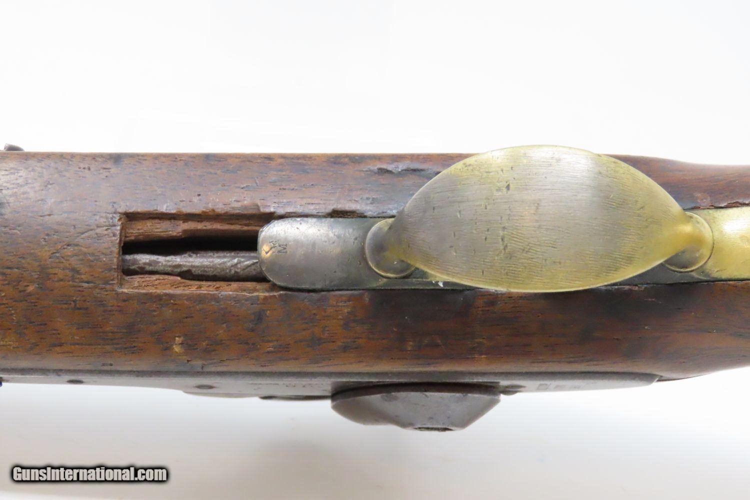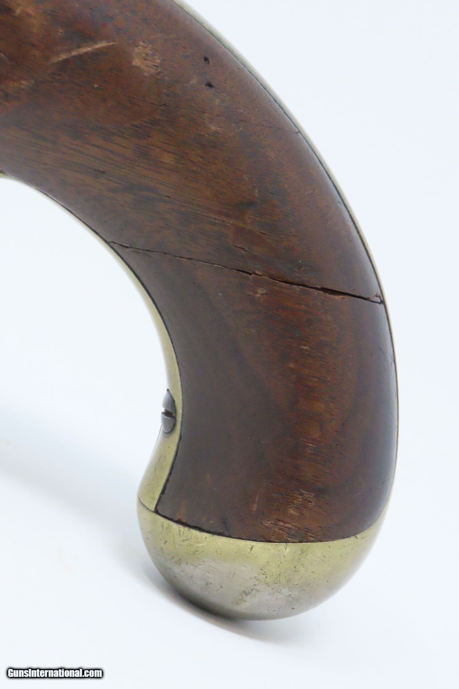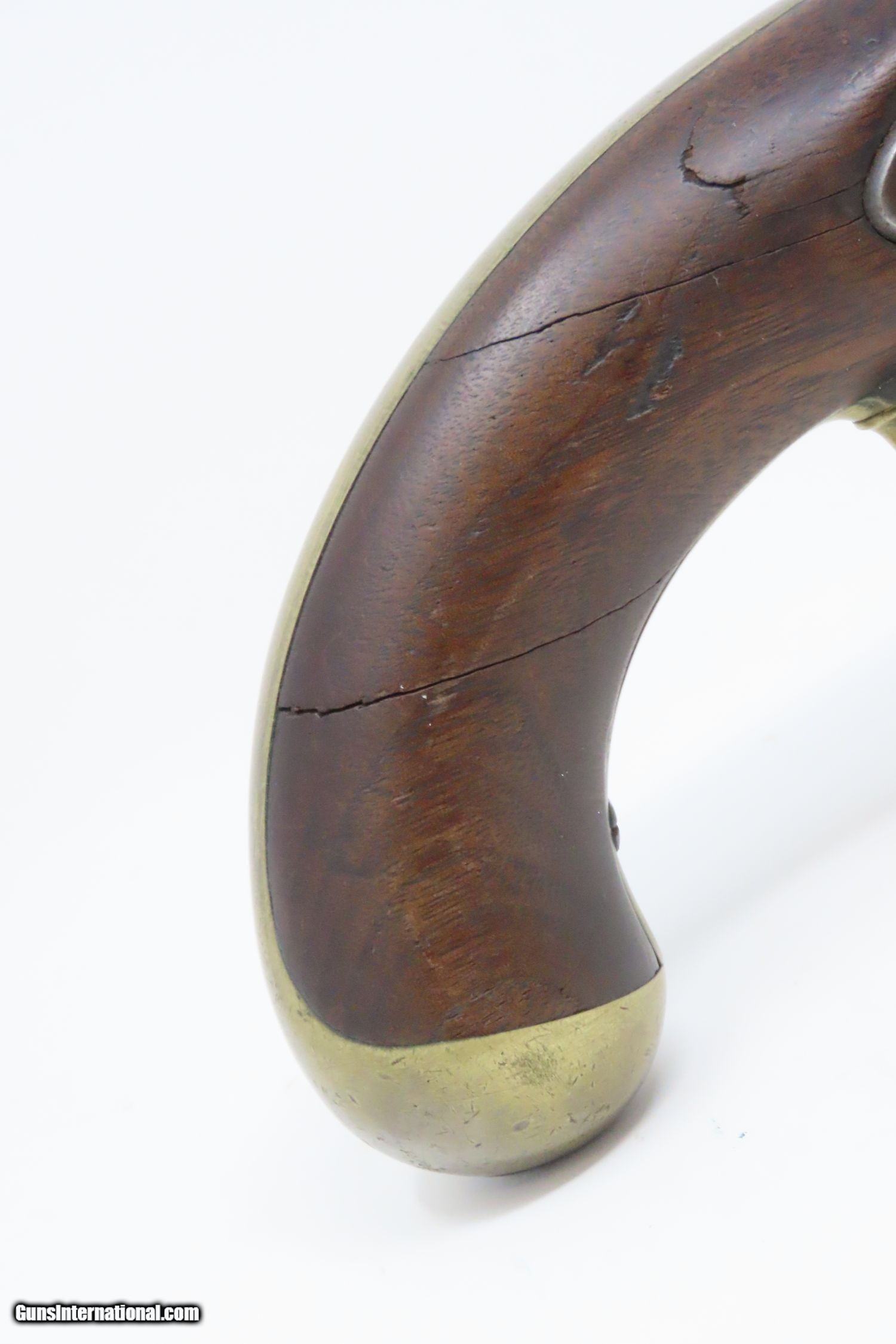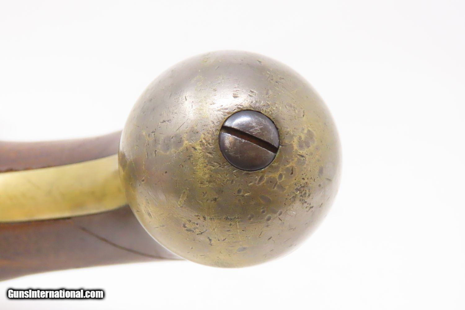 Description: 1851 HENRY ASTON US Contract Model 1842 DRAGOON .54 Cal. Smoothbore Pistol Antebellum Percussion U.S. Military Contract Pistol Here we present an antique Aston First U.S. Contract Model 1842 Dragoon’s Percussion Pistol, made in 1851 in Middletown, Connecticut. Henry Aston was a gunmaker from Middletown who received a government contract to produce 24,000 Model 1842 pistols in his first contract for the firearm that spanned from 1846-1851. Between 1851 and 1852, he received a second contract for an additional 6,000 units. Because of the overlapping 1851 dates, it is unclear if this example is from the first 24,000 or from the second 6,000. The Model 1842 saw service during a time of great change and increasing tension, as well as firearms innovation. The Mexican-American War (1846-1848), the numerous conflicts with Native Americans, annexing of new territory, the rising blood-pressure over slavery, and a quick 36% population increase that all culminated in the blood-letting of the American Civil War. This was the first official percussion pistol to be adopted by the U.S. and simultaneously the last large smooth bore single shot pistol. By 1845 it was the primary issued weapon to the First and Second Regiment of Dragoons, replacing many of their Model 1836 flintlocks, just in time for the Mexican-American War. The Model 1842 was the last single shot smoothbore pistol issued by the U.S. Army. The 1842 features sturdy construction with lots of brass for support. This was important during a time when one would expend their shots and still have a fight on their hands. Striking your opponent with the pommel of your gun was quite effective. The ramrod is captive, so that it would not be lost in the heat of battle on top of a horse. Many of these were used, especially initially, by both sides during the American Civil War. Strong action. The bore is in good shape. The walnut stock remains stable though you can see that it has experienced some trauma. A cut out can be scene just in front of the trigger guard. “iD/iD” is hand carved on the left stock flat. “1851” dated lock and barrel. A battle worn horse pistol for your consideration! Own the original! This is a legitimate antique and not a reproduction. Barrel is 8-1/2 inches. Caliber: .54 Percussion Overall condition as seen in photos. Very Fast. Very Safe. FREE SHIPPING WORLDWIDE. Delivered directly to your door by express mail! Guaranteed AUTHENTIC & Includes CERTIFICATE OF AUTHENTICITY. ancestryguns $1175 #210073 SOLD Antique: Yes |