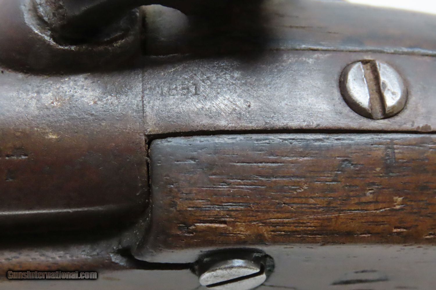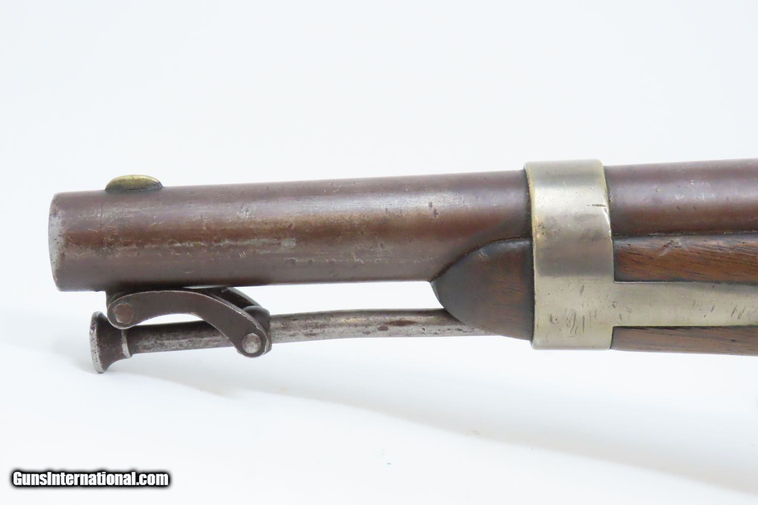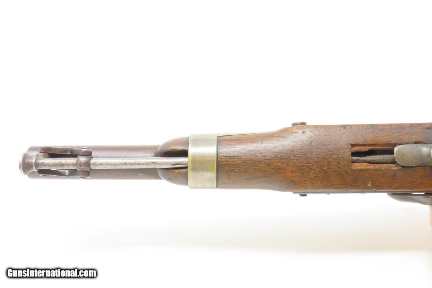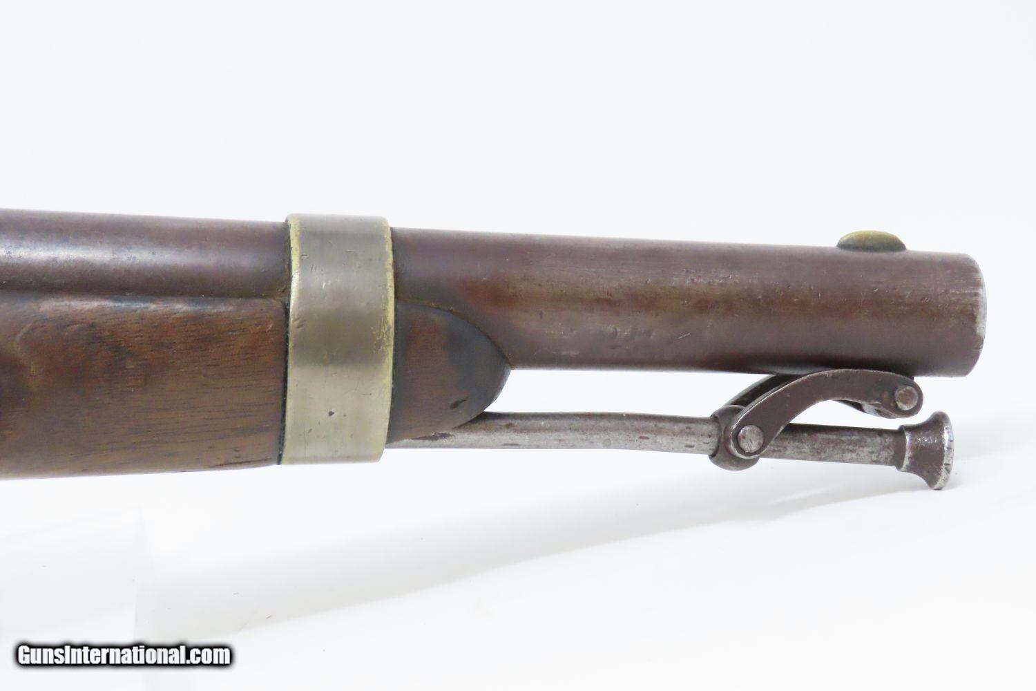 Description: 1851 HENRY ASTON US Contract Model 1842 DRAGOON .54 Cal. Smoothbore Pistol Antebellum Percussion U.S. Military Contract Pistol Here we present an antique Aston First U.S. Contract Model 1842 Dragoon’s Percussion Pistol, made in 1851 in Middletown, Connecticut. Henry Aston was a gunmaker from Middletown who received a government contract to produce 24,000 Model 1842 pistols in his first contract for the firearm that spanned from 1846-1851. Between 1851 and 1852, he received a second contract for an additional 6,000 units. Because of the overlapping 1851 dates, it is unclear if this example is from the first 24,000 or from the second 6,000. The Model 1842 saw service during a time of great change and increasing tension, as well as firearms innovation. The Mexican-American War (1846-1848), the numerous conflicts with Native Americans, annexing of new territory, the rising blood-pressure over slavery, and a quick 36% population increase that all culminated in the blood-letting of the American Civil War. This was the first official percussion pistol to be adopted by the U.S. and simultaneously the last large smooth bore single shot pistol. By 1845 it was the primary issued weapon to the First and Second Regiment of Dragoons, replacing many of their Model 1836 flintlocks, just in time for the Mexican-American War. The Model 1842 was the last single shot smoothbore pistol issued by the U.S. Army. The 1842 features sturdy construction with lots of brass for support. This was important during a time when one would expend their shots and still have a fight on their hands. Striking your opponent with the pommel of your gun was quite effective. The ramrod is captive, so that it would not be lost in the heat of battle on top of a horse. Many of these were used, especially initially, by both sides during the American Civil War. Strong action. The bore is in good shape. The walnut stock remains stable though you can see that it has experienced some trauma. A cut out can be scene just in front of the trigger guard. “iD/iD” is hand carved on the left stock flat. “1851” dated lock and barrel. A battle worn horse pistol for your consideration! Own the original! This is a legitimate antique and not a reproduction. Barrel is 8-1/2 inches. Caliber: .54 Percussion Overall condition as seen in photos. Very Fast. Very Safe. FREE SHIPPING WORLDWIDE. Delivered directly to your door by express mail! Guaranteed AUTHENTIC & Includes CERTIFICATE OF AUTHENTICITY. ancestryguns $1175 #210073 SOLD Antique: Yes |