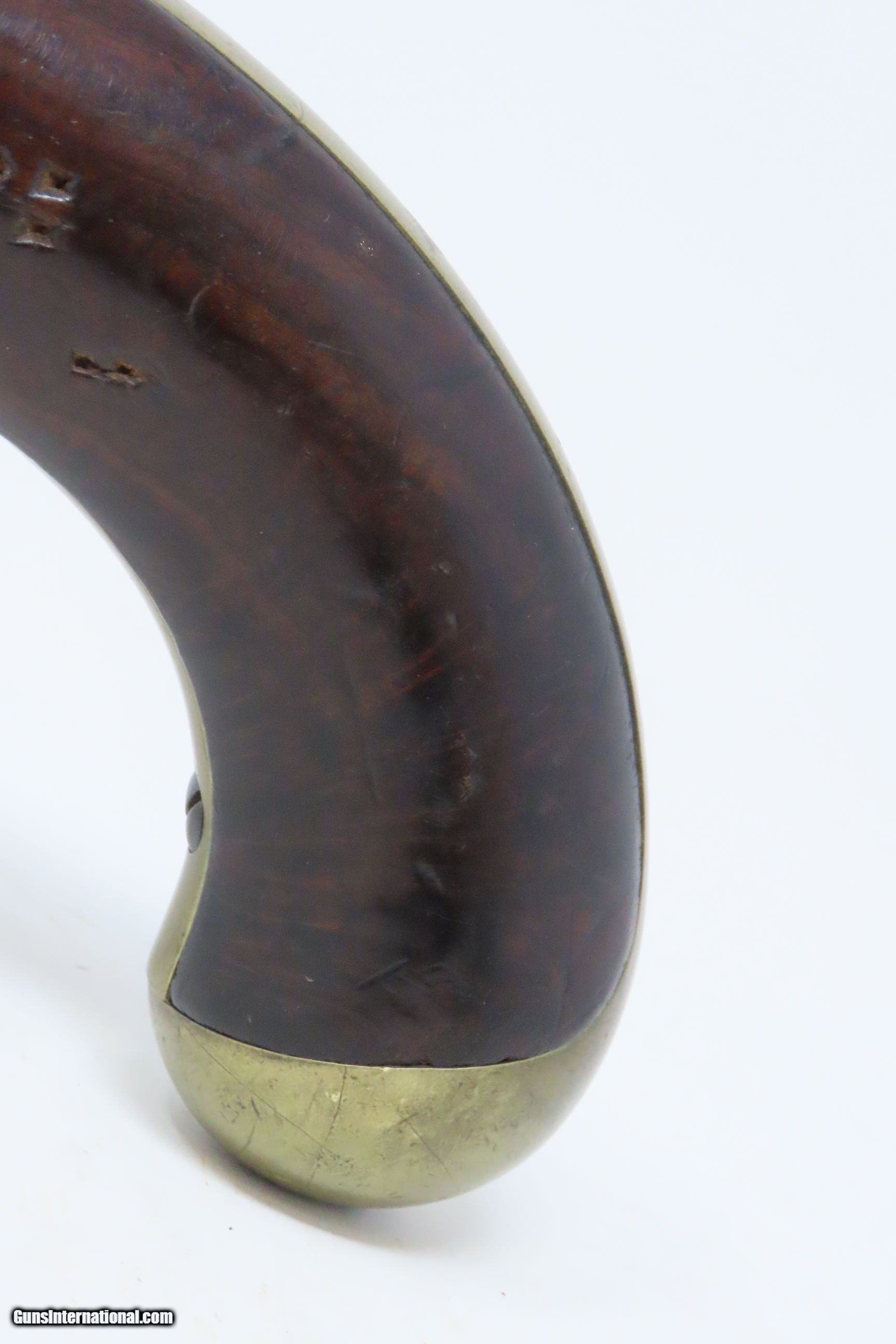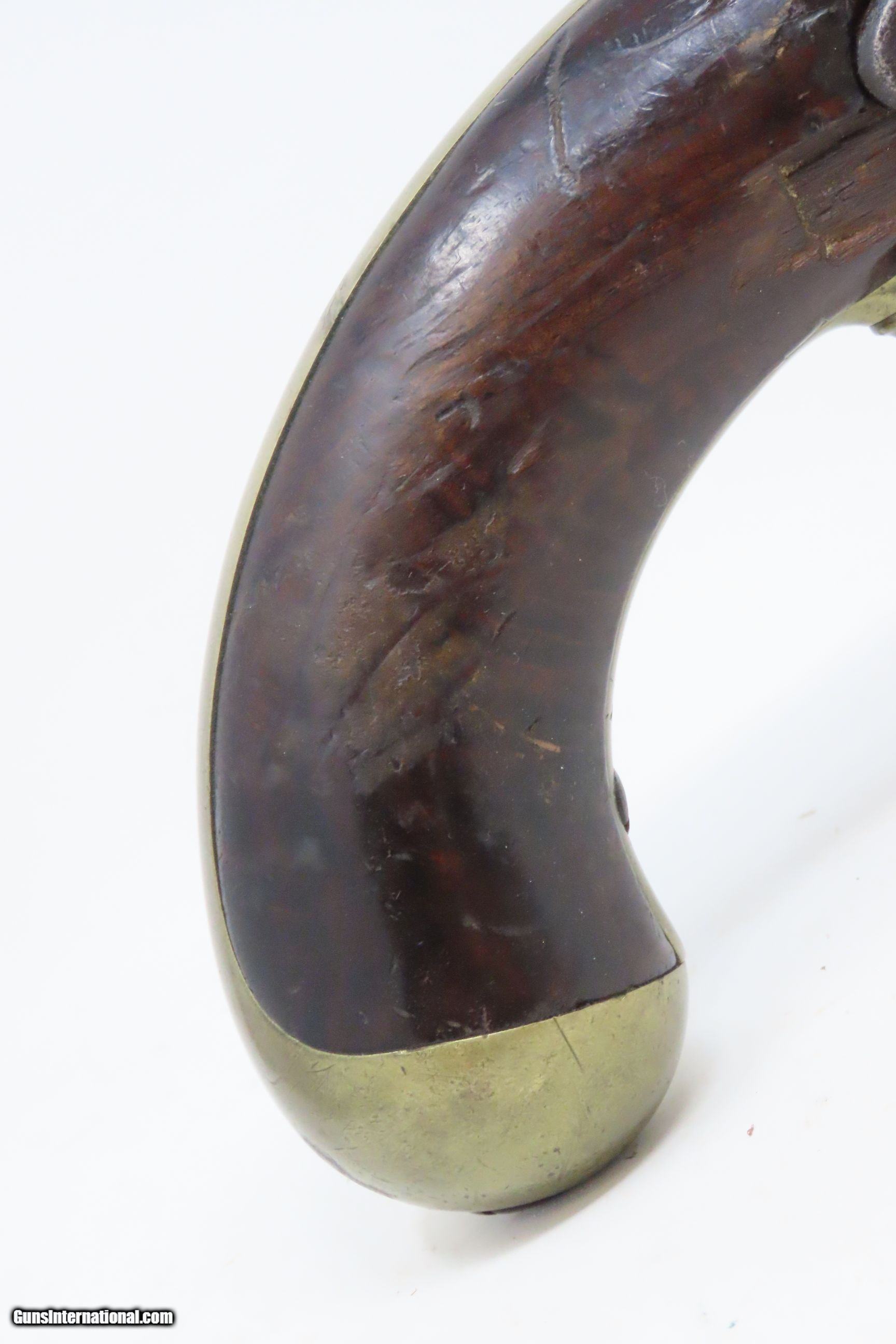 Description: 1851 HENRY ASTON US Contract Model 1842 DRAGOON .56 Cal. Smoothbore Pistol 1851 Dated Percussion U.S. Military Contract Pistol Here we present an antique Henry Aston U.S. Contract Model 1842 Dragoon’s Percussion Pistol, made in 1851 in Middletown, Connecticut. Henry Aston was a gunmaker from Middletown who received a government contract to produce 24,000 Model 1842 pistols in his first contract for the firearm that spanned from 1846-1851. Between 1851 and 1852, he received a second contract for an additional 6,000 units. Because of the overlapping 1851 dates, it is unclear if this example is from the first 24,000 or from the second 6,000. The Model 1842 saw service during a time of great change and increasing tension, as well as firearms innovation. The Mexican-American War (1846-1848), the numerous conflicts with Native Americans, annexing of new territory, the rising blood-pressure over slavery, and a quick 36% population increase that all culminated in the blood-letting of the American Civil War. This was the first official percussion pistol to be adopted by the U.S. and simultaneously the last large smooth bore single shot pistol. By 1845 it was the primary issued weapon to the First and Second Regiment of Dragoons, replacing many of their Model 1836 flintlocks, just in time for the Mexican-American War. The Model 1842 was the last single shot smoothbore pistol issued by the U.S. Army. The 1842 features sturdy construction with lots of brass for support. This was important during a time when one would expend their shots and still have a fight on their hands. Striking your opponent with the pommel of your gun was quite effective. The ramrod is captive, so that it would not be lost in the heat of battle on top of a horse. Many of these were used, especially initially, by both sides during the American Civil War. The overall condition is fair. Gray patina throughout. The action is strong. The bore is smooth and dim. The stock shows much use and has a bit of loss under the lock that has smoothed with continued use. Some of the lock hardware has been replaced (see the brighter spots on the lock) and one has been lost. Own the original! This is a legitimate antique and not a reproduction. Barrel is 8-1/2 inches. Caliber: .56 Percussion Overall condition as seen in photos. Very Fast. Very Safe. FREE SHIPPING WORLDWIDE. Delivered directly to your door by express mail! Guaranteed AUTHENTIC & Includes CERTIFICATE OF AUTHENTICITY. ancestryguns $1200 #226055 SOLD Antique: Yes |