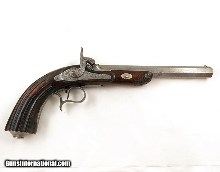 19th Cen Engraved European Percussion Dueling Pistol
