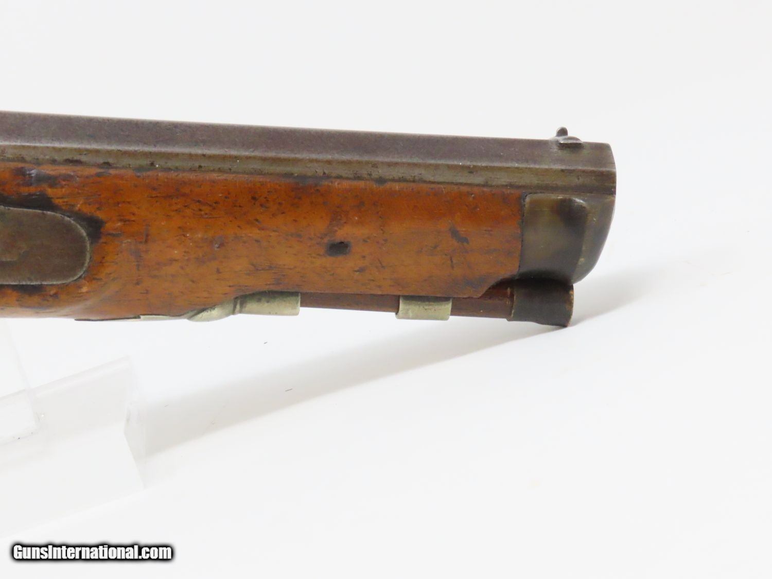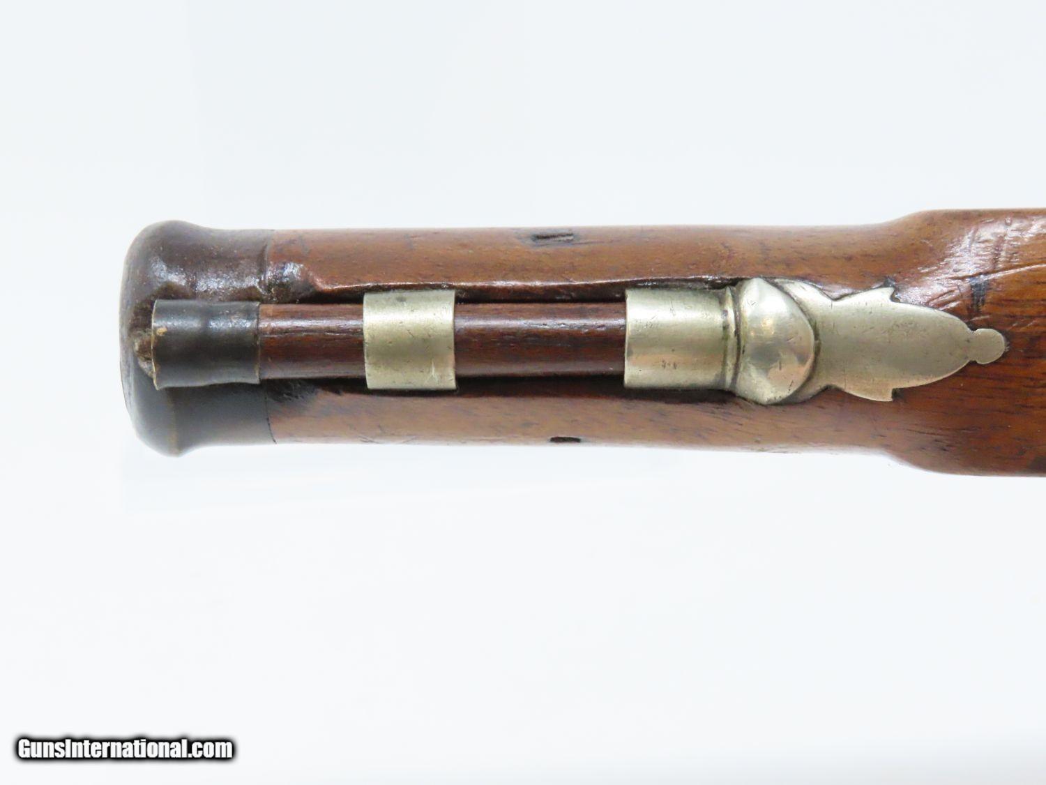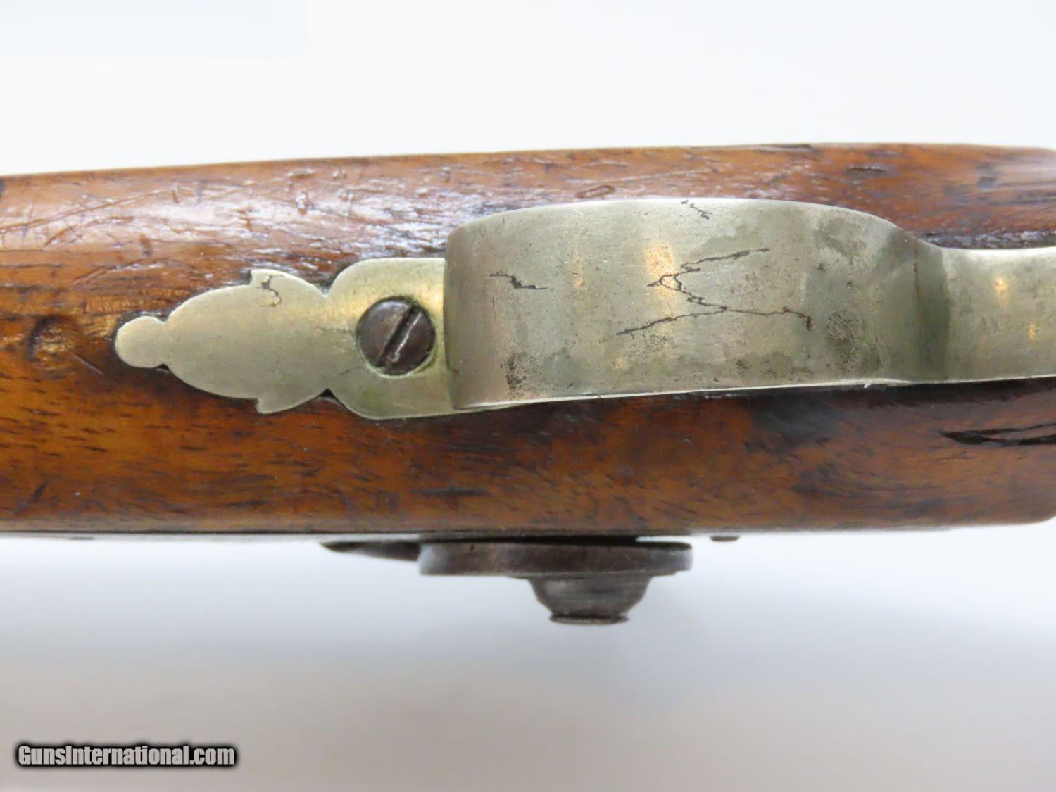 Description: A. EHLICH of SULZBACH MANSTOPPER Pistol.455 Antique Late-1700s, Early-1800s 18th & 19th Century Germanic Gentleman’s Pistol Here we present an antique Germanic Manstopper Pistol in .455 Caliber, made circa the late-1700s in Sulzbach, Hesse (near Frankfurt) by A. Ehlich. Belt-sized pistols like these were used to defend oneself when traveling or in public places. It is big enough to fight with, but not so large as to be cumbersome. This one was originally a flintlock and was updated to the more reliable percussion firing system circa the 1840s. This is a quality piece and one can imagine that this pistol may have been purchased by a gentleman or a successful businessman. The hammer is engraved and the stock has a fore end tip of horn. Otherwise, there is simple but handsome brass hardware. This was a well-made working pistol for someone serious about his personal protection. The overall condition is very good. The action is strong. The lock reads “A. EHLICH”. The bore is in very good condition with strong rifling. The stock is in great shape. A very neat piece from Own the original! This is a legitimate antique and not a reproduction. Barrel is 5 inches. Caliber: .455 Overall condition as seen in photos. Very Fast. Very Safe. FREE SHIPPING WORLDWIDE. Delivered directly to your door by express mail! Guaranteed AUTHENTIC & Includes CERTIFICATE OF AUTHENTICITY. ancestryguns $1825 #20521 SOLD Antique: Yes |