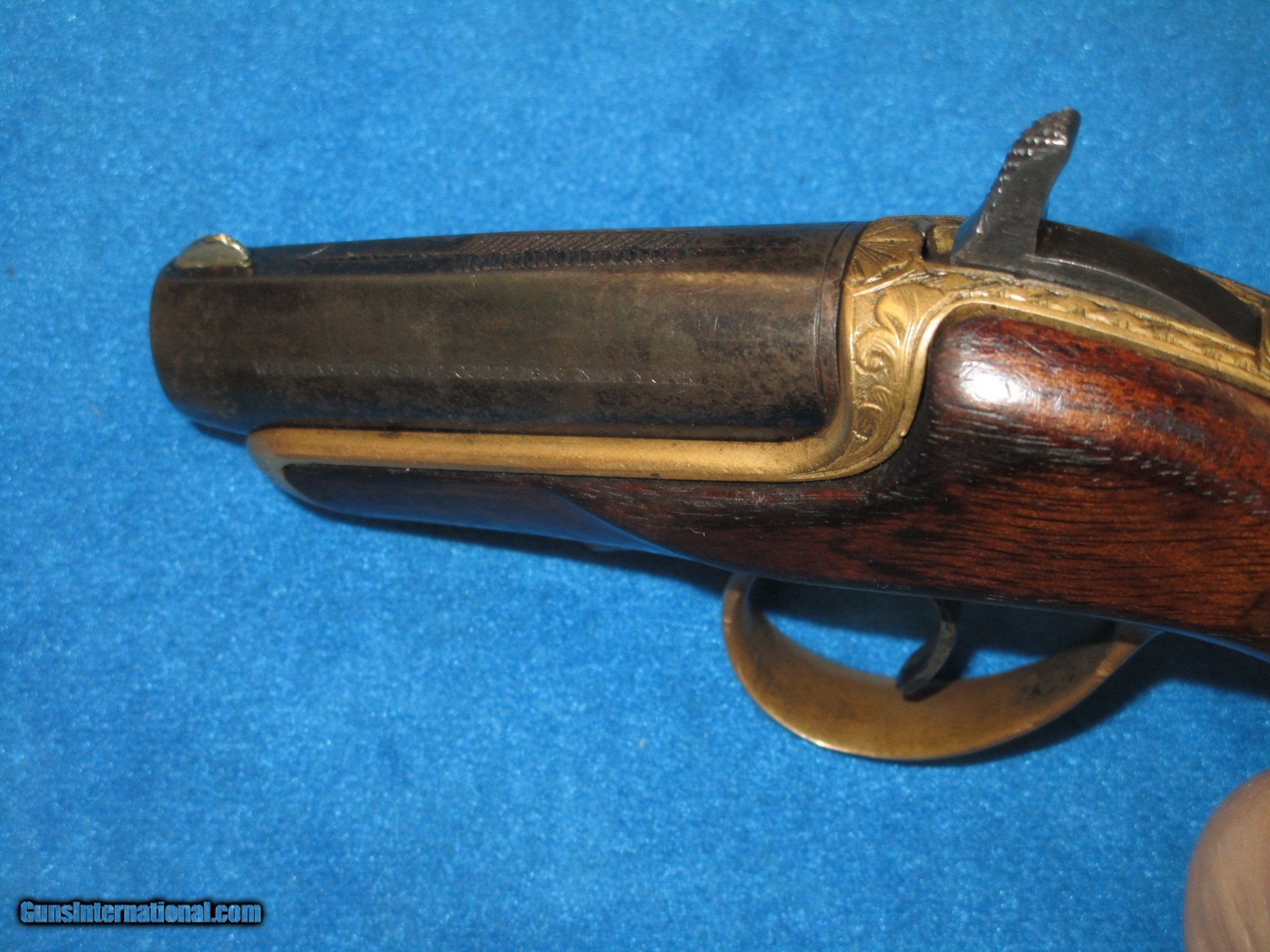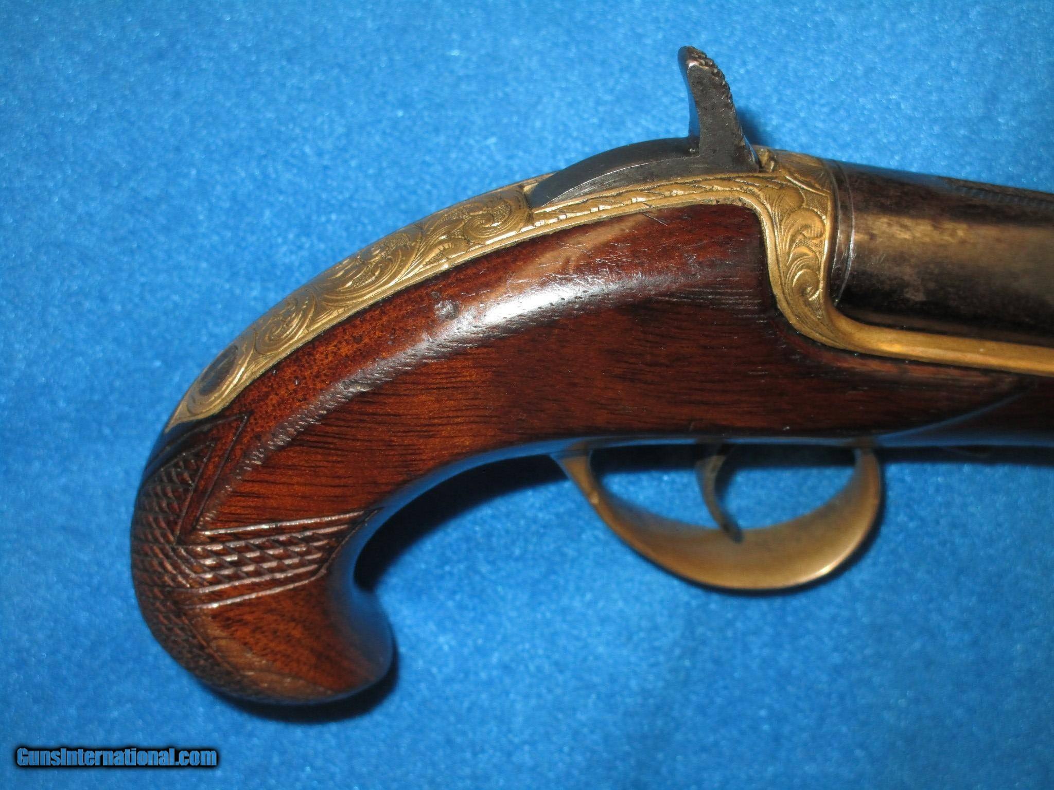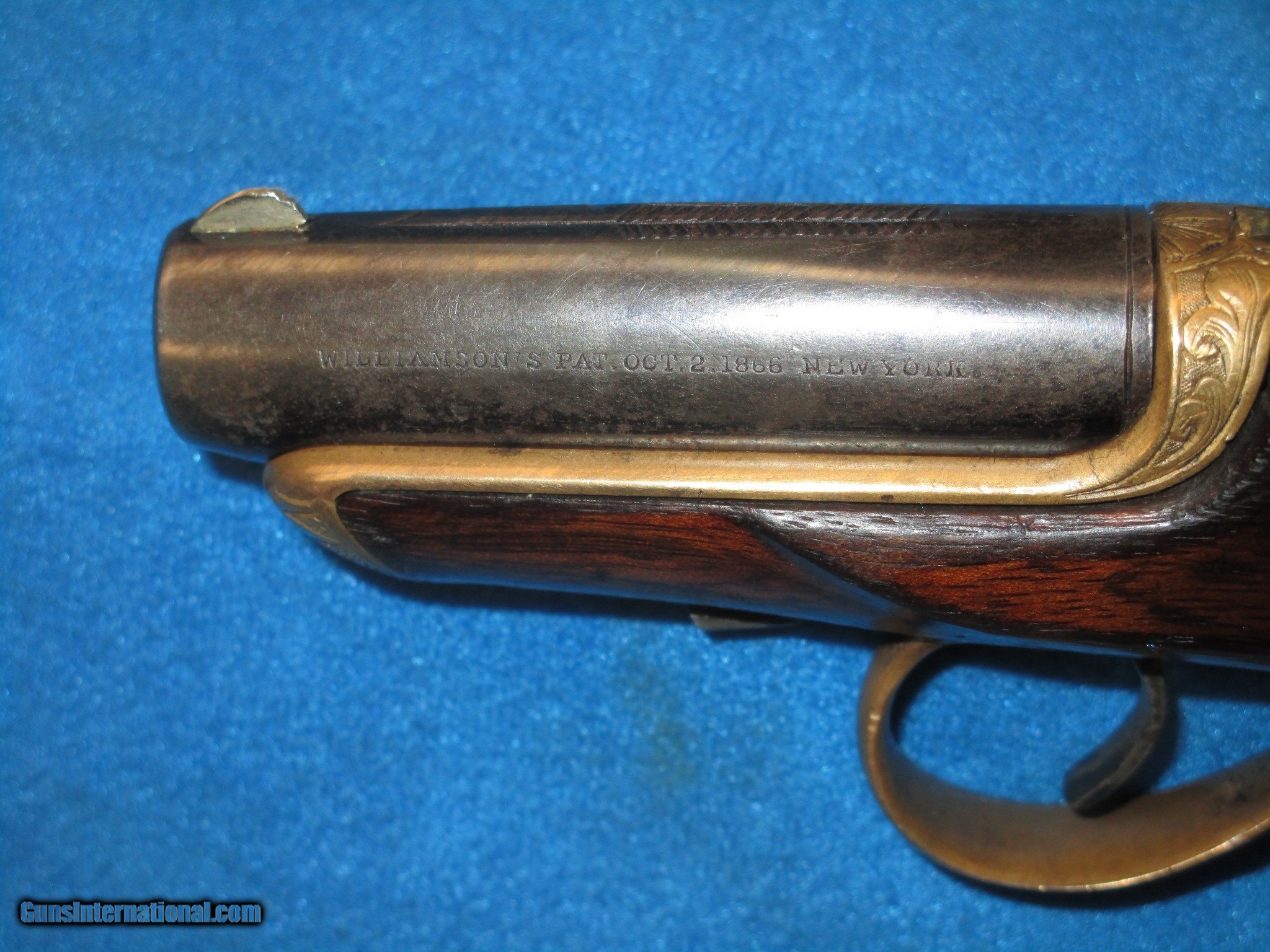A SCARCE FACTORY ENGRAVED WILLIAMSON SINGLE SHOT DERINGER IN VERY NICE UNTOUCHED CONDITION!
