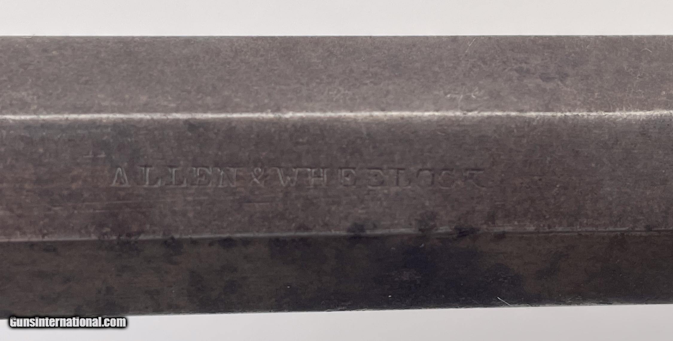 Description: The bore measures .34" The action is good. See photos for condition. SOLD Antique: Yes Manufacturer: Allen and Wheellock Model: Pocket Rifle Serial Number: 122 Barrel Length: 10.25 |