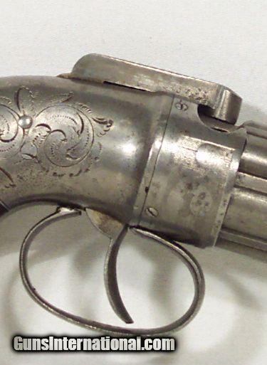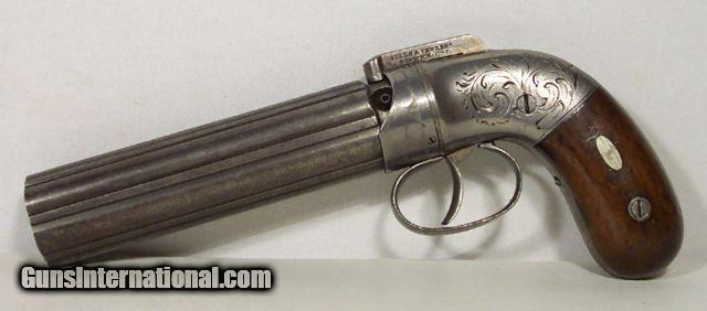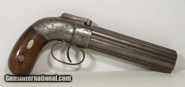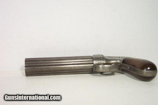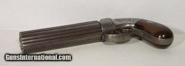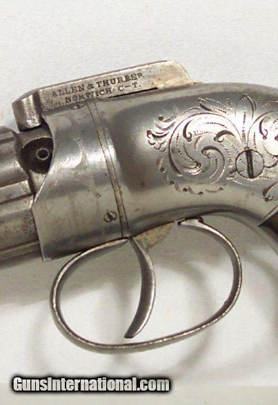 Description: SALE PENDING!! Large Allen & Thurber Bar Hammer Pepperbox; .36 cal.; 6” fluted barrel; double action; walnut grips; bar marked “Allen & Thurber Norwich C-T.”; gray metal patina; GOOD function; antique, no FFL/C&R required for shipping; All items shipped fully insured Priority Mail- -Hand guns $30 --Long guns $45-- Spurs $30-- Knives, Swords & Sabers $30 (Texas residents please add 6.75% sales tax); return policy: three days inspection from the date the item is received; full refund of shipping both ways ONLY IF THE ITEM IS MISREPRESENTED. Note: International sales only as laws permit. Will ship C&R eligible items to C&R license. Antiques shipped without license to anyone EXCEPT New Jersey and City of New York where a FFL is required. SOLD Antique: Yes |