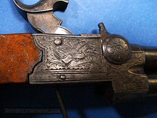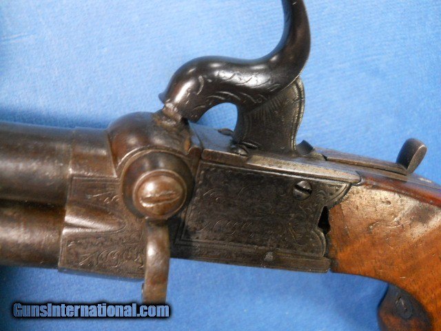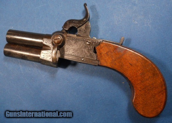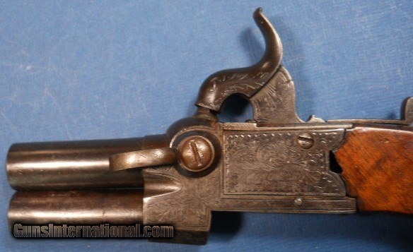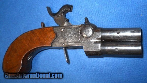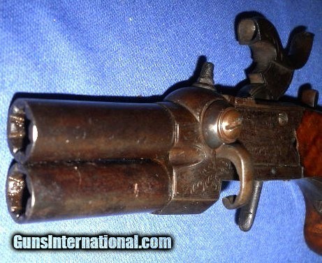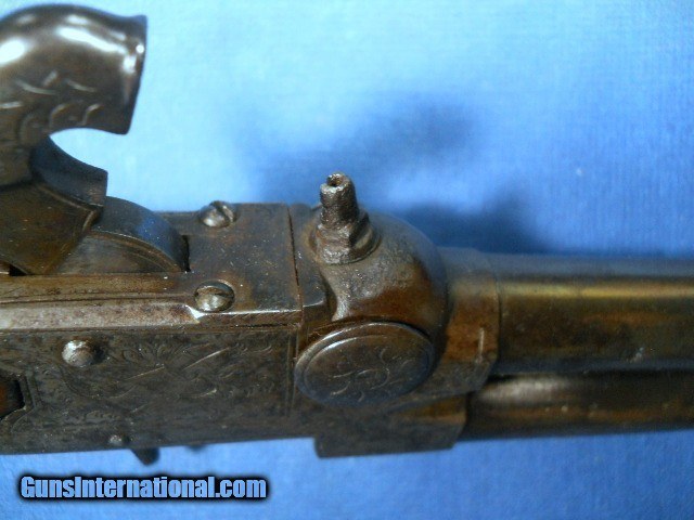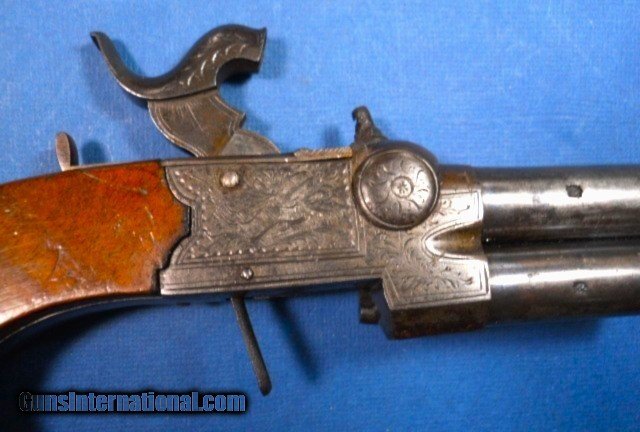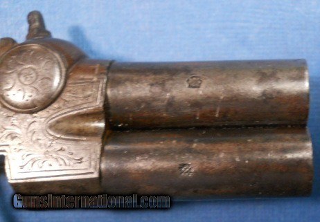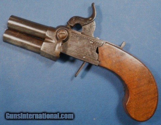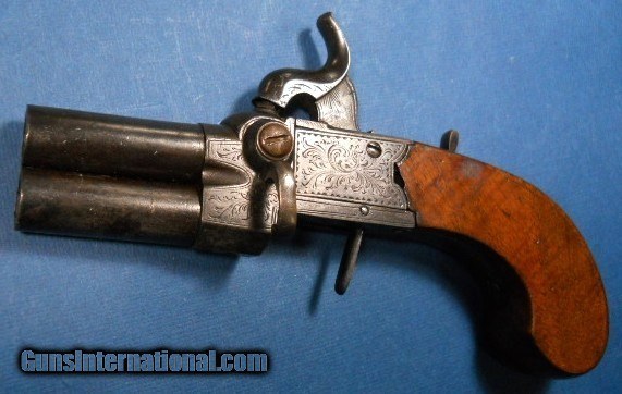 Antique 1840s ERA ENGRAVED ENGLISH OVER UNDER PERCUSSION TAP PISTOL