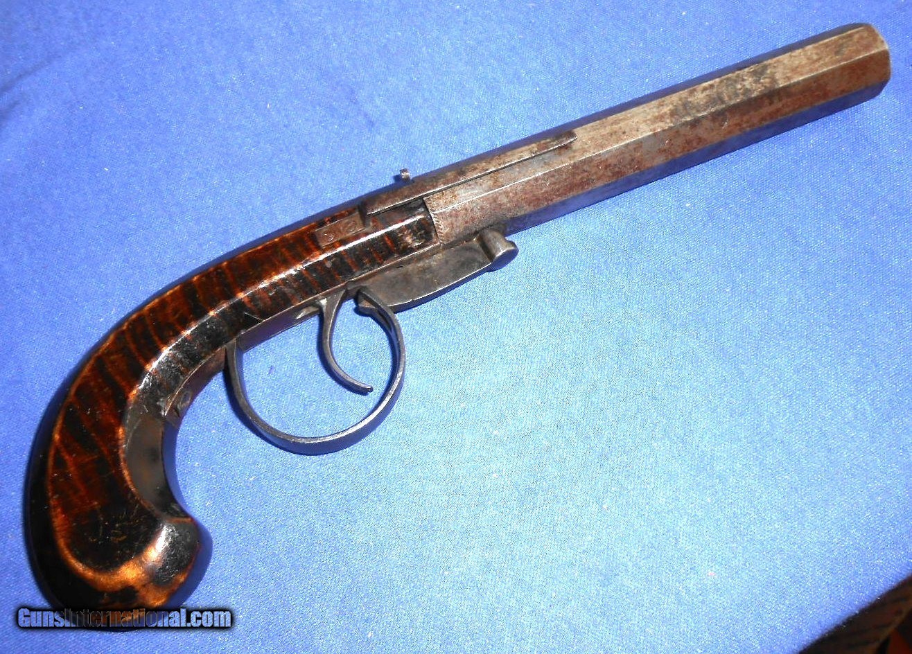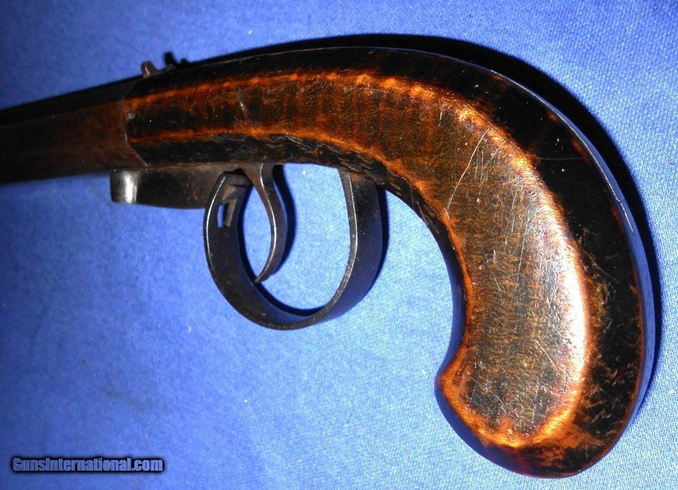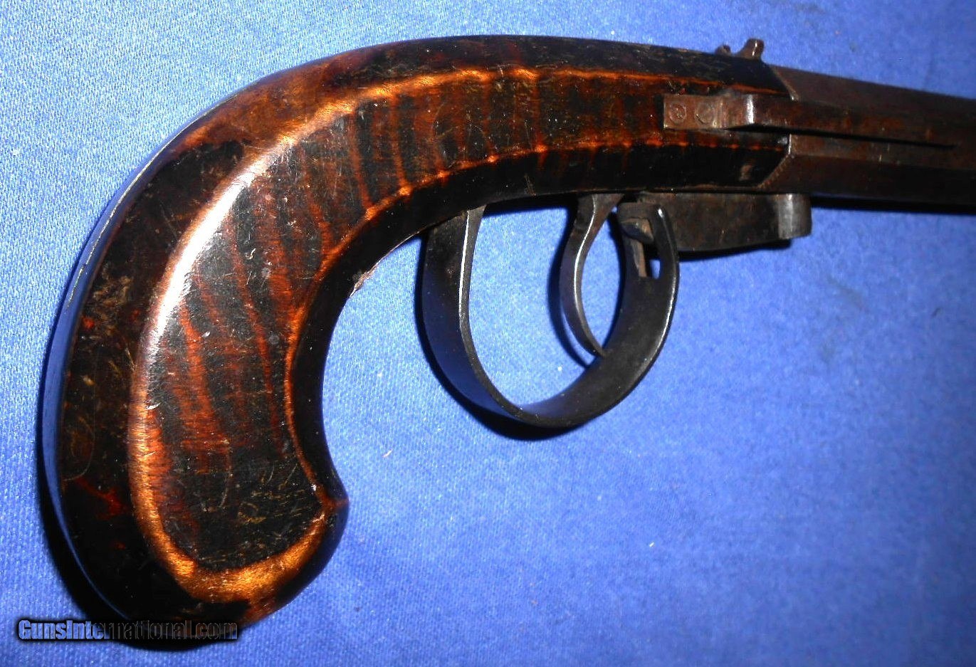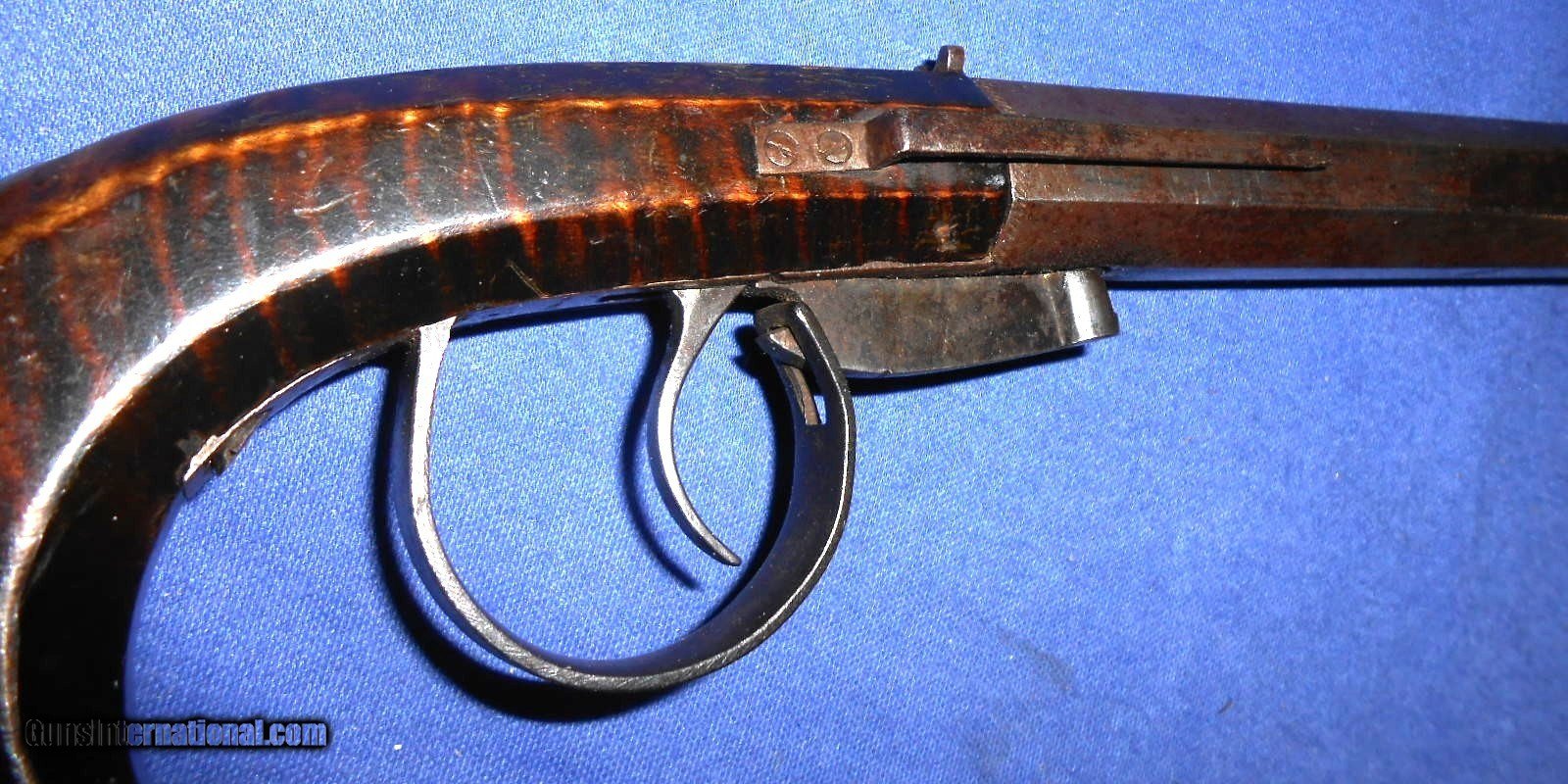 Antique 1840s UNDERHAMMER PERCUSSION BELT BOOT PISTOL TIGER MAPLE WOOD