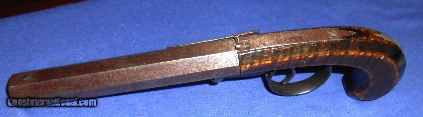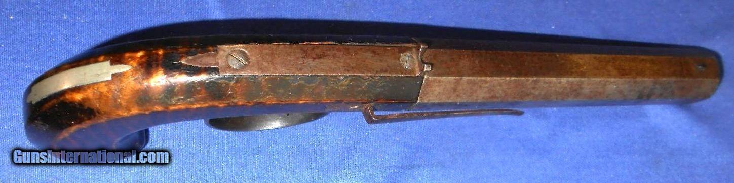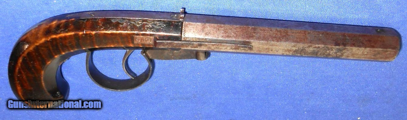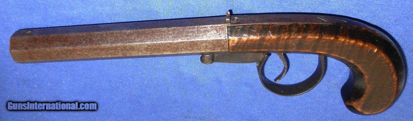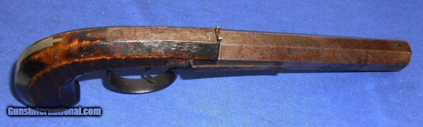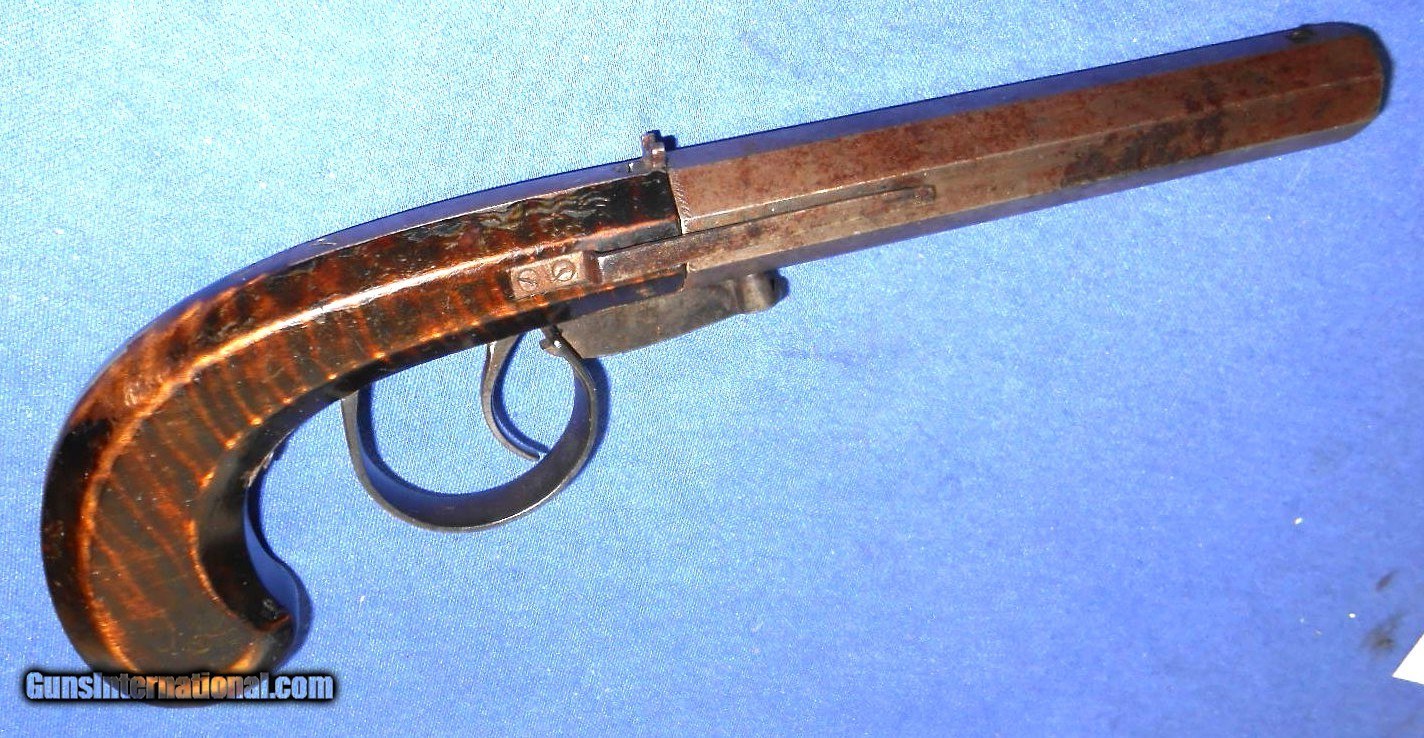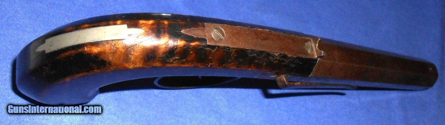 Antique 1840s UNDERHAMMER PERCUSSION BELT BOOT PISTOL TIGER MAPLE WOOD
