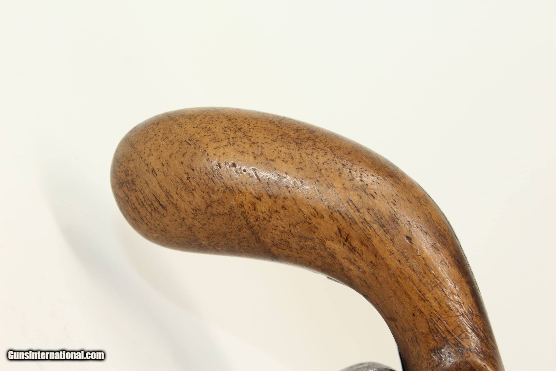 Description: Antique 1850s EUROPEAN SxS DOUBLE BARREL Pistol .41 Caliber Percussion Double Barrel Self Defense Pistol Here we present an antique European Double Barrel Percussion Pocket Pistol, made circa 1850. This would have likely been intended as a self-defense gun. The grip is solid walnut. The underside of the barrel is marked with a “5”. In a day when the single shot pistol was the standard, this side by side percussion pistol would have been a very handy self-defense weapon to have around, having two shots to fire off instead of one! This pistol has been “deactivated” with the drilled holes in the barrels. The overall condition is good. The iron parts have a dark patina. The grip is in good shape. The bores are dark and smooth. The actions are strong. Own the original! This is a legitimate antique and not a reproduction. Barrel is 3 inches. Caliber: .41 Percussion Overall condition as seen in photos. Very Fast. Very Safe. FREE SHIPPING WORLDWIDE. Delivered directly to your door by express mail! Guaranteed AUTHENTIC & Includes CERTIFICATE OF AUTHENTICITY. ancestryguns $300 #190448 SOLD Antique: Yes |