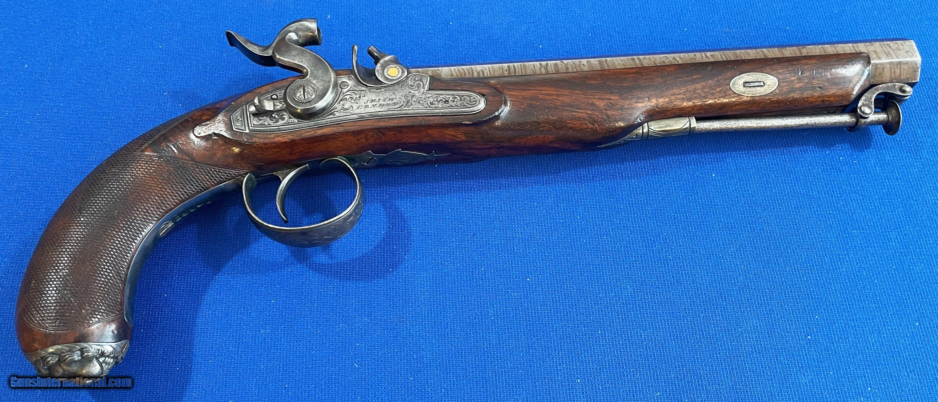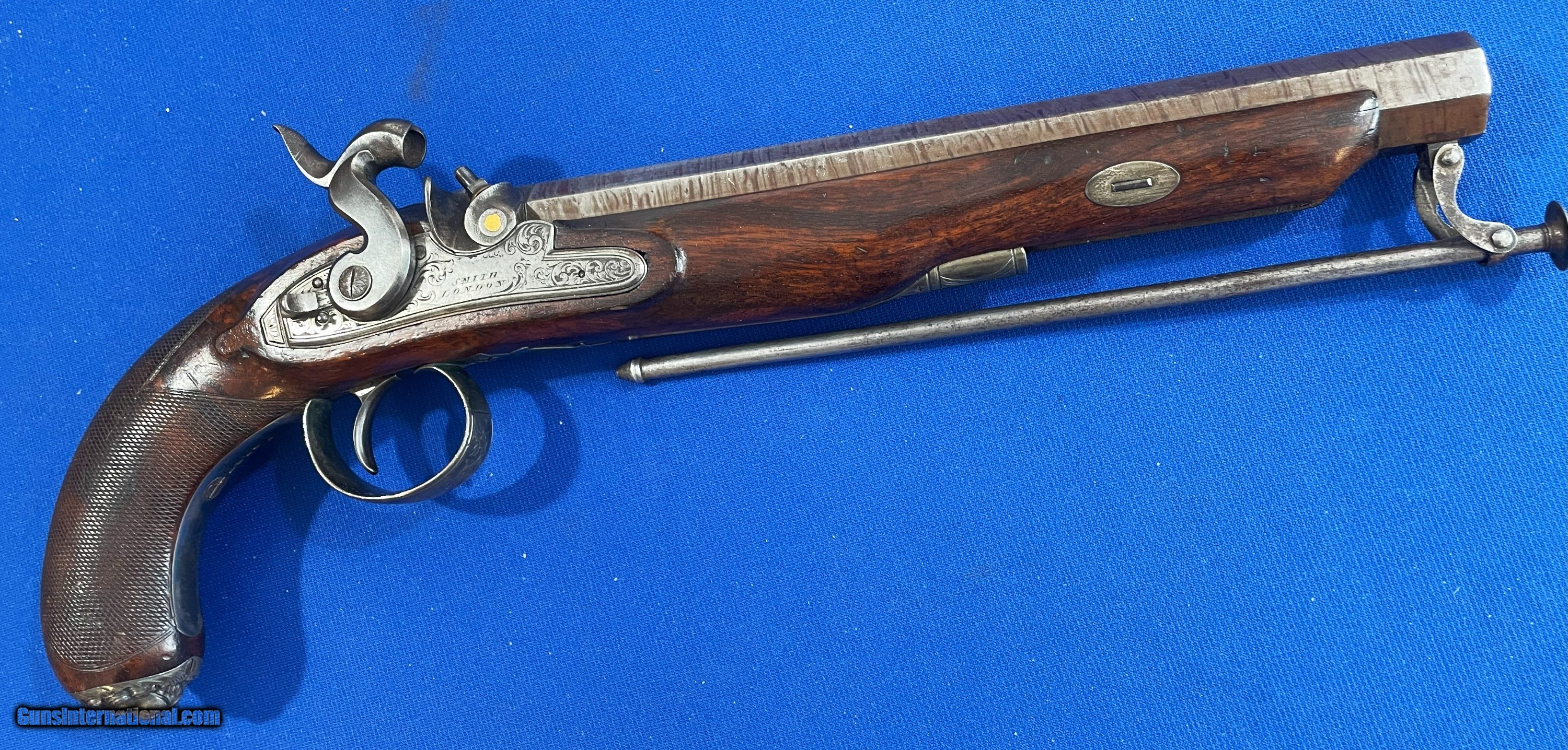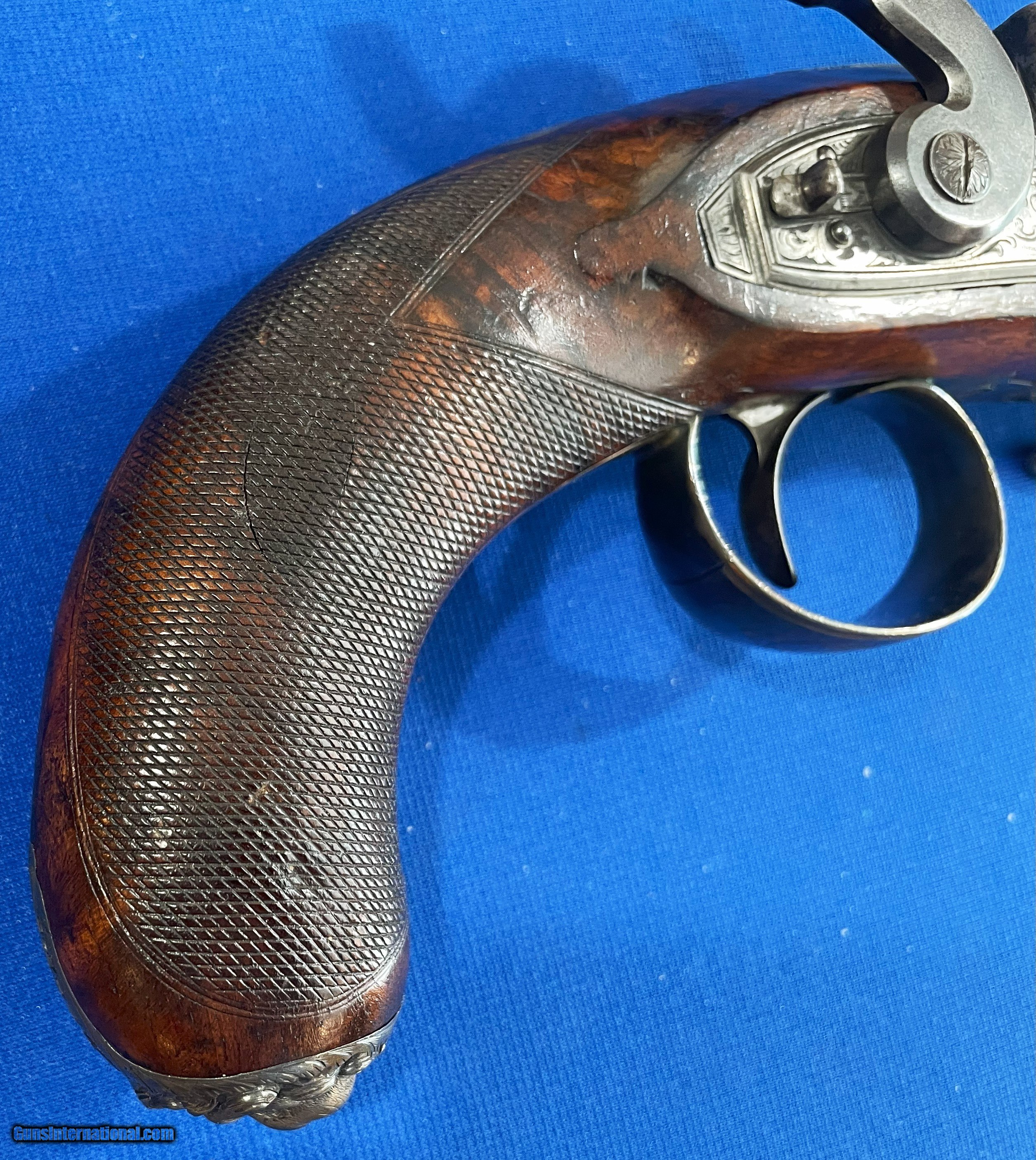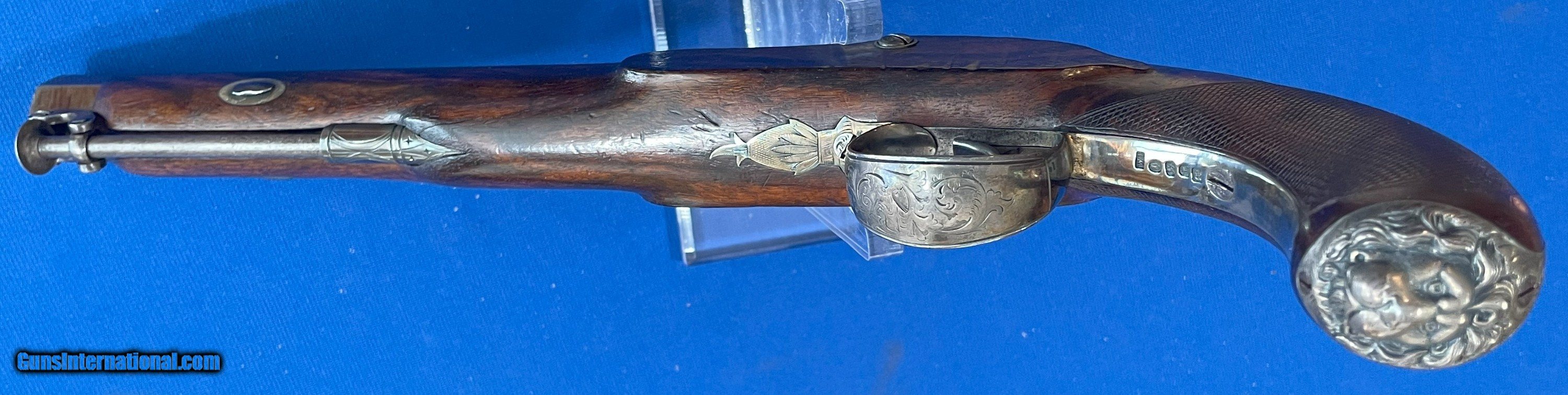 Antique 1860s SMITH LONDON SILVER MOUNTED PERCUSSION BELT PISTOL