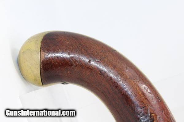 Description: Antique Henry ASTON Contract M1842 DRAGOON Pistol .54 Caliber Horse Pistol Made in 1852 Here we present an antique Aston U.S. Model 1842 Dragoon’s Pistol, made in 1852 in Middletown, Connecticut. The Model 1842 saw service during a time of great change and increasing tension, as well as firearms innovation. The Mexican-American War (1846-1848), the numerous conflicts with Native Americans, annexing of new territory, the rising blood-pressure over slavery, and a quick 36% population increase that all culminated in the blood-letting of the American Civil War. This was the first official percussion pistol to be adopted by the U.S. and simultaneously the last large smooth bore single shot pistol. By 1845 it was the primary issued weapon to the First and Second Regiment of Dragoons, replacing many of their Model 1836 flintlocks, just in time for the Mexican-American War. The Model 1842 was the last single shot smoothbore pistol issued by the U.S. Army. The 1842 features sturdy construction with lots of brass for support. This was important during a time when one would expend their shots and still have a fight on their hands. Striking your opponent with the pommel of your gun was quite effective. The ramrod is captive, so that it would not be lost in the heat of battle on top of a horse. Many of these were used, especially initially, by both sides during the American Civil War. The overall condition is good. The iron surfaces have a gray patina. The markings are legible. The walnut stock shows much handling and remains solid. The bore is smooth and clean. The action is excellent, strong and crisp. Own the original! This is a legitimate antique and not a reproduction. Barrel is 8 ½ inch round. Caliber: .54 Percussion Overall condition as seen in photos. Very Fast. Very Safe. FREE SHIPPING WORLDWIDE. Delivered directly to your door by express mail! Guaranteed AUTHENTIC & Includes CERTIFICATE OF AUTHENTICITY. ancestryguns $1275 #8587 SOLD Antique: Yes |