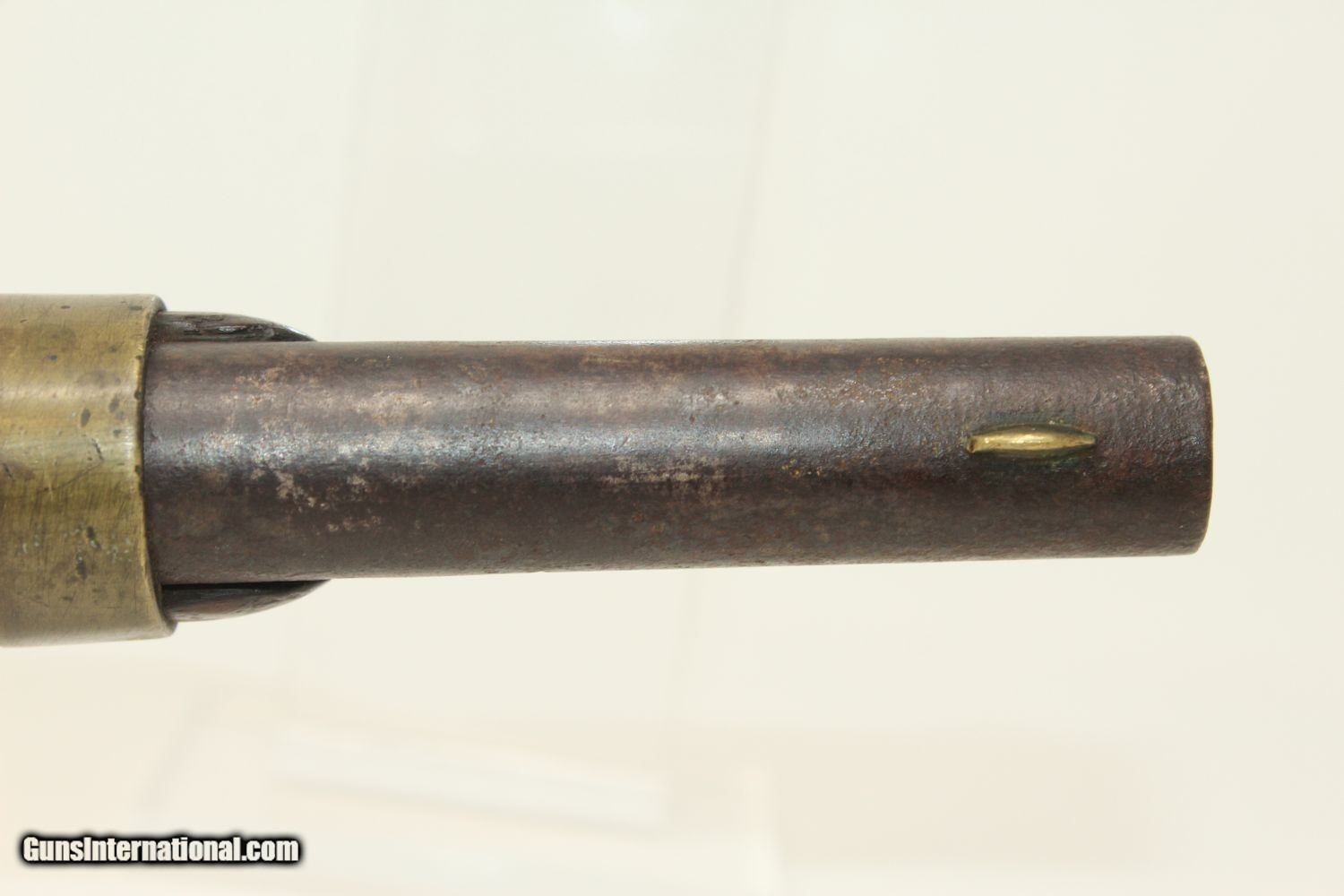 Description: Antique Henry ASTON Contract M1842 DRAGOON Pistol Antebellum Pistol Manufactured in 1851 Here we present an antique Aston U.S. Model 1842 Dragoon’s Pistol, made in 1851 in Middletown, Connecticut, in the middle of the Mexican-American War. The Model 1842 saw service during a time of great change and increasing tension, as well as firearms innovation. The Mexican-American War (1846-1848), the numerous conflicts with Native Americans, annexing of new territory, the rising blood-pressure over slavery, and a quick 36% population increase that all culminated in the blood-letting of the American Civil War. This was the first official percussion pistol to be adopted by the U.S. and simultaneously the last large smooth bore single shot pistol. By 1845 it was the primary issued weapon to the First and Second Regiment of Dragoons, replacing many of their Model 1836 flintlocks, just in time for the Mexican-American War. The Model 1842 was the last single shot smoothbore pistol issued by the U.S. Army. The 1842 features sturdy construction with lots of brass for support. This was important during a time when one would expend their shots and still have a fight on their hands. Striking your opponent with the pommel of your gun was quite effective. The ramrod is captive, so that it would not be lost in the heat of battle on top of a horse. Many of these were used, especially initially, by both sides during the American Civil War. The overall condition is good. The iron parts have an untouched, deep, dark plum patina. The markings are legible. The walnut stock is largely smooth and solid, displaying two good inspector cartouches, with some damage just behind the tail of the lock. The bore is smooth and dark. The action remains strong. Here is a horse pistol that survived the Indian Wars and the American Civil War and looks as though it came straight out of the attic! Own the original! This is a legitimate antique and not a reproduction. Barrel is 8 ½ inches. Caliber: .54 Percussion Overall condition as seen in photos. Very Fast. Very Safe. FREE SHIPPING WORLDWIDE. Delivered directly to your door by express mail! Guaranteed AUTHENTIC & Includes CERTIFICATE OF AUTHENTICITY. ancestryguns $1200 #190386 SOLD Antique: Yes |