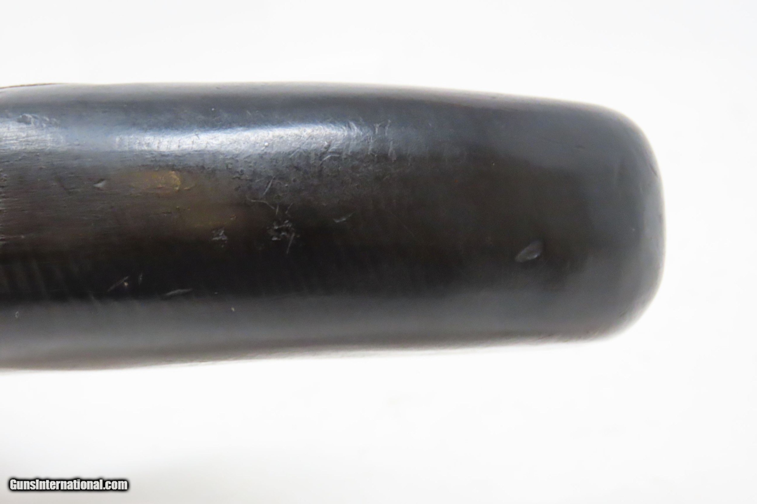 Description: Antique “KENTUCKY PISTOL” .38 Caliber Self Defense Pistol with GOLCHER LOCK With Signed Barrel & Maple Stock Here we present an Antique Kentucky Pistol, made circa the 1840s. This pistol was made in the same way that long rifles were made in that day, and even likely used a segment of an old rifle barrel. The lock is by Joseph Golcher—Golcher locks were prolific amongst gunmakers of the period. The barrel is signed something like “E.W.E”. All of this has been mounted in a maple stock with the kind of grain you would expect in a long rifle. The bore is smooth and measures about .378” for a nominal .38 caliber. A gun of this size would have been good to wear on the belt and its purpose was primarily self defense. In a day in which you had one shot before having to reload—a relatively time-consuming process—it could mean the difference between life and death to simply have another firearm close at hand that was ready to use. The overall condition is good. The action functions, though the hammer does not reliably stay cocked and can be pushed out of battery. Dim smooth bore. Solid stock/grip contains low wear. “JOSPEH GOCHER” engraved lock. The top of the barrel is hand inscribed and appears to read “E.W.E”. Own the original! This is a legitimate antique and not a reproduction. Barrel is 5-1/4 inches. Caliber: .38 Percussion Overall condition as seen in photos. Very Fast. Very Safe. FREE SHIPPING WORLDWIDE. Delivered directly to your door by express mail! Guaranteed AUTHENTIC & Includes CERTIFICATE OF AUTHENTICITY. ancestryguns $2100 #217283 SOLD Antique: Yes |