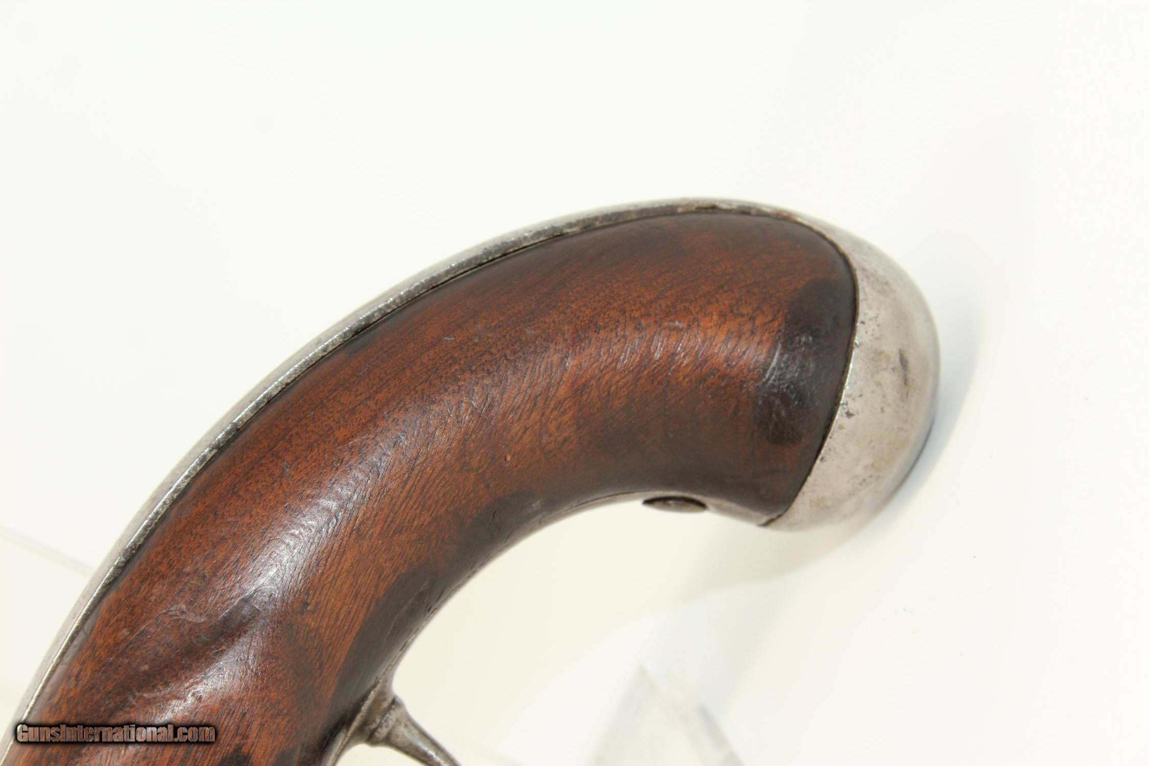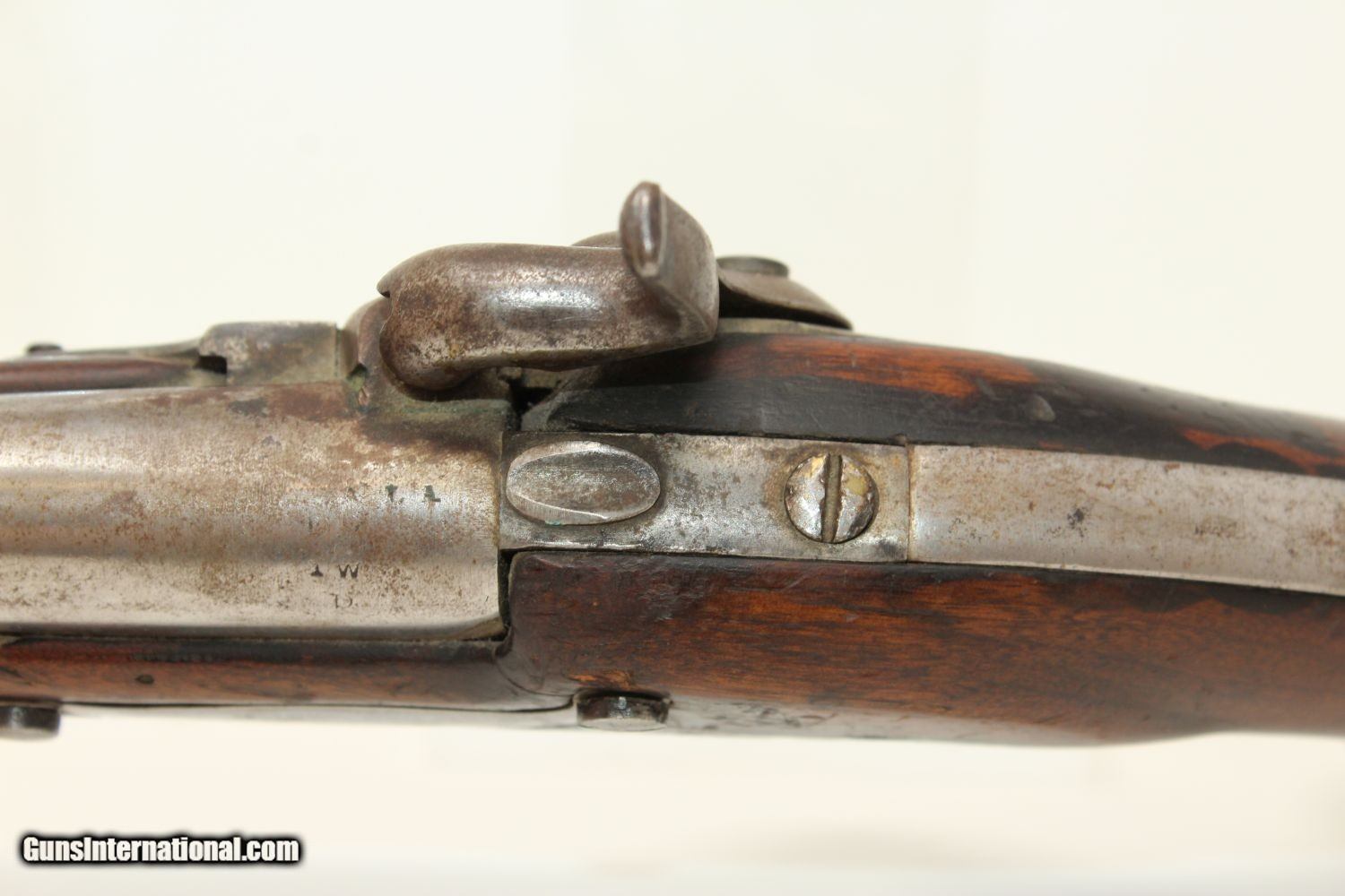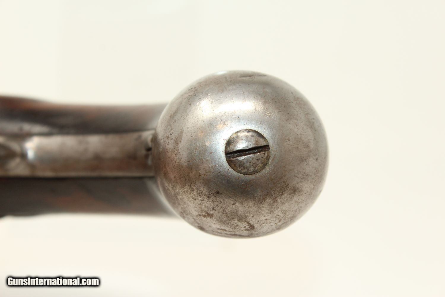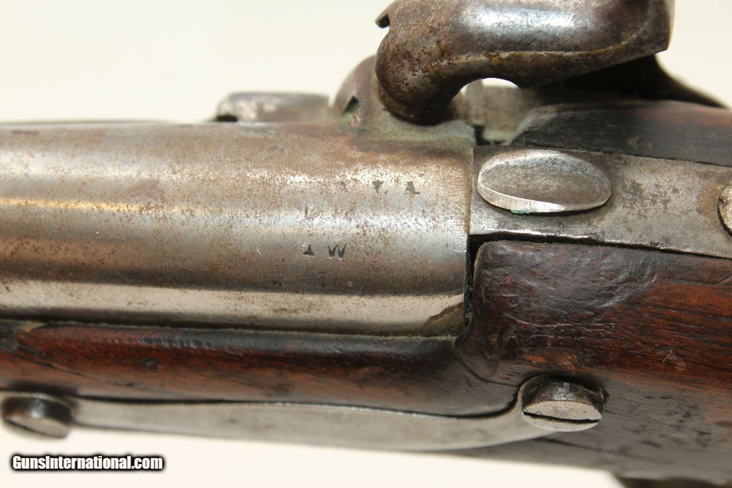 Description: Antique R. JOHNSON 1836 Percussion DRAGOON Pistol MEXICAN-AMERICAN WAR Conversion Pistol, Dated 1836 Here we present an antique Robert Johnson U.S. Model 1836 Percussion Pistol, made in 1836. This pistol would have started out as a flintlock and had a period conversion as the new technology developed. There were actually two manufacturers of these guns: Robert Johnson and Asa Waters. Combined, the production totals 41,000 guns. This was the last U.S. martial pistol to use the flintlock system, and many consider this the best of all U.S. flint guns due to its craftsmanship and aesthetic appeal. The gun is historically significant as this was the primary issue pistol during the Mexican American War (1846-1848) and was even significantly used during the American Civil War (1861-1865), especially in this percussion converted format. The lock plate is roll-stamped with “US / R. Johnson / MIDDn CONN / 1836" in four lines. There are inspection marks on the left side of the barrel breech. Many of these were lost to attrition during the various conflicts listed above, and many were converted for use, as is this one, by the North & South during the Civil War. The overall condition is good. The iron parts are gray. Most of the markings are legible. The walnut stock has seen hard use. The bore is smooth and in good shape. The action is strong and crisp. Own the original! This is a legitimate antique and not a reproduction. Barrel is 8-1/2 inches. Caliber: .54 Overall condition as seen in photos. Very Fast. Very Safe. FREE SHIPPING WORLDWIDE. Delivered directly to your door by express mail! Guaranteed AUTHENTIC & Includes CERTIFICATE OF AUTHENTICITY. ancestryguns $1200 #190390 SOLD Antique: Yes |