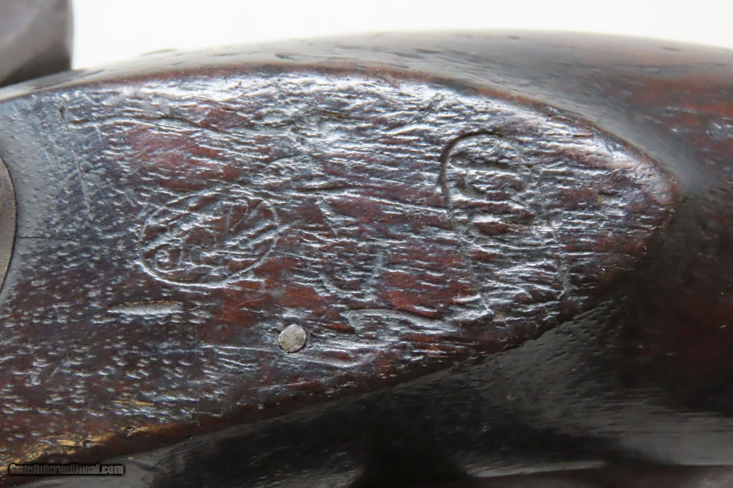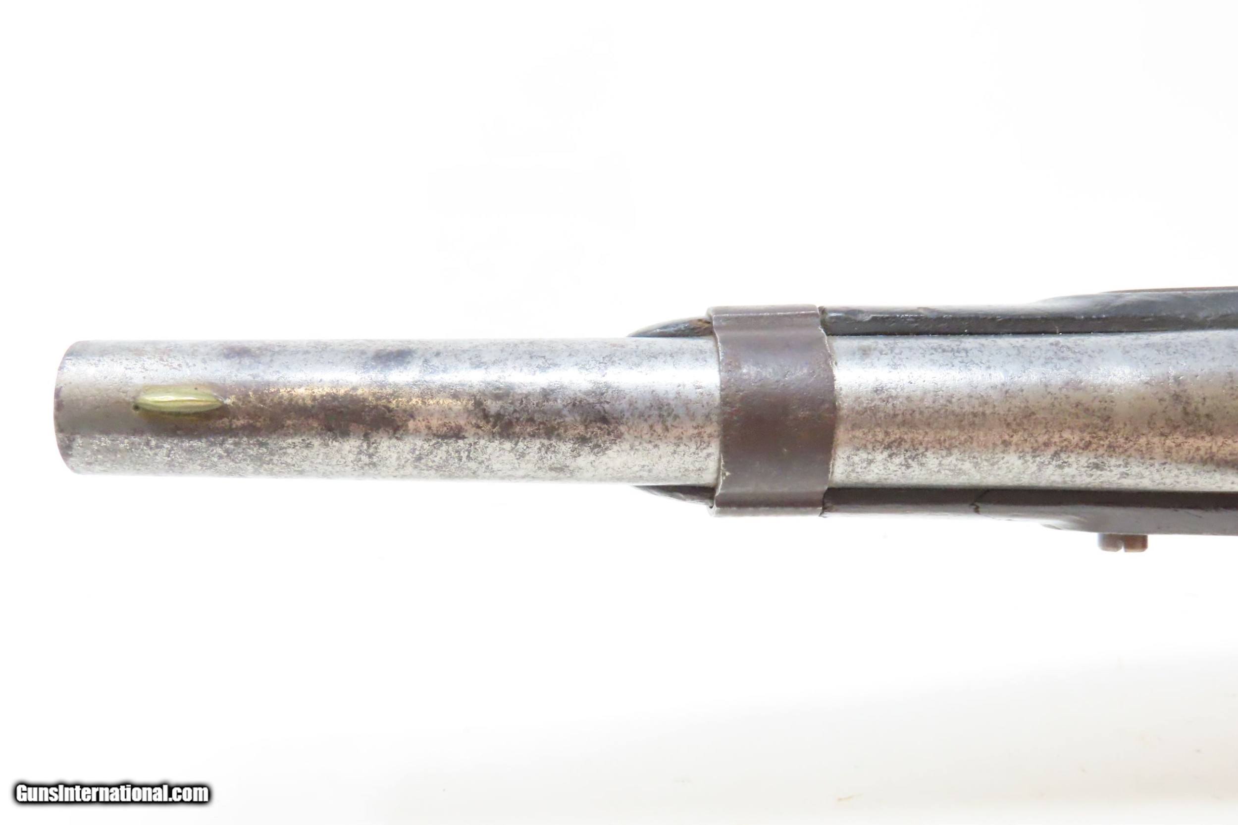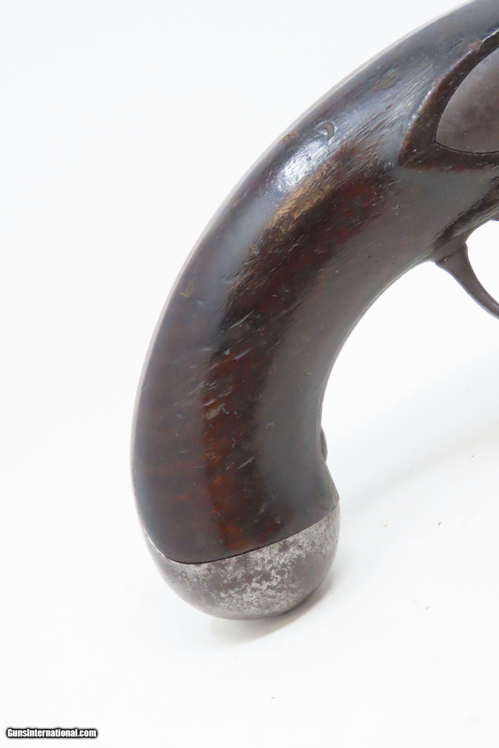 Description: Antique R. JOHNSON U.S. Model 1836 .54 Caliber Smoothbore PERCUSSION Pistol MEXICAN-AMERICAN WAR Conversion Pistol, Dated 1843 Here we present an antique Robert Johnson U.S. Model 1836 Percussion Pistol, made in 1843. This pistol would have started out as a flintlock and had a period conversion as the new technology developed. The Second Seminole War erupted in December of 1835 and both the newly authorized 2nd US Dragoons and the many mounted state militia troops that were sent to swamps of Florida to deal with the situation were in need of pistols. The U.S. arsenals were in short supply at this time, and what they did have, were obsolete. Consequently, two manufacturers, Robert Johnson and Asa Waters, were contracted to make these new pistols with combined production totals were 41,000 guns. As a result of the need to arm the U.S. Dragoons, state militia troops being called up for the war, and to catch up on backordered requisitions for pistols from the states under the Militia Act of 1808, extreme pressure was applied to both the contractors to deliver the guns and the U.S. ordnance inspectors to approve them for service. Publication of the Ordnance Regulations of 1834 specified that a minimum of two Ordnance Inspectors must view and mark all contract ordnance. On this gun, there are two oval script cartouches on the left stock flat. This was the last U.S. martial pistol to use the flintlock system, and many consider this the best of all U.S. flint guns due to its craftsmanship and aesthetic appeal. The gun is historically significant as this was the primary issue pistol during the Mexican American War (1846-1848) and was even significantly used during the American Civil War (1861-1865), especially in this percussion converted format. Many of these were lost to attrition during the various conflicts listed above, and many were converted for use, as is this one, by the North & South during the Civil War. The overall condition is good. Gray patina. Two good cartouches. The action is excellent. The bore is smooth and patinated. The stock has a crack under the lock and a very thin one on the left stock flat. Own the original! This is a legitimate antique and not a reproduction. Barrel is 8-1/2 inches. Caliber: .54 Percussion Overall condition as seen in photos. Very Fast. Very Safe. FREE SHIPPING WORLDWIDE. Delivered directly to your door by express mail! Guaranteed AUTHENTIC & Includes CERTIFICATE OF AUTHENTICITY. ancestryguns $1200 #226060 SOLD Antique: Yes |