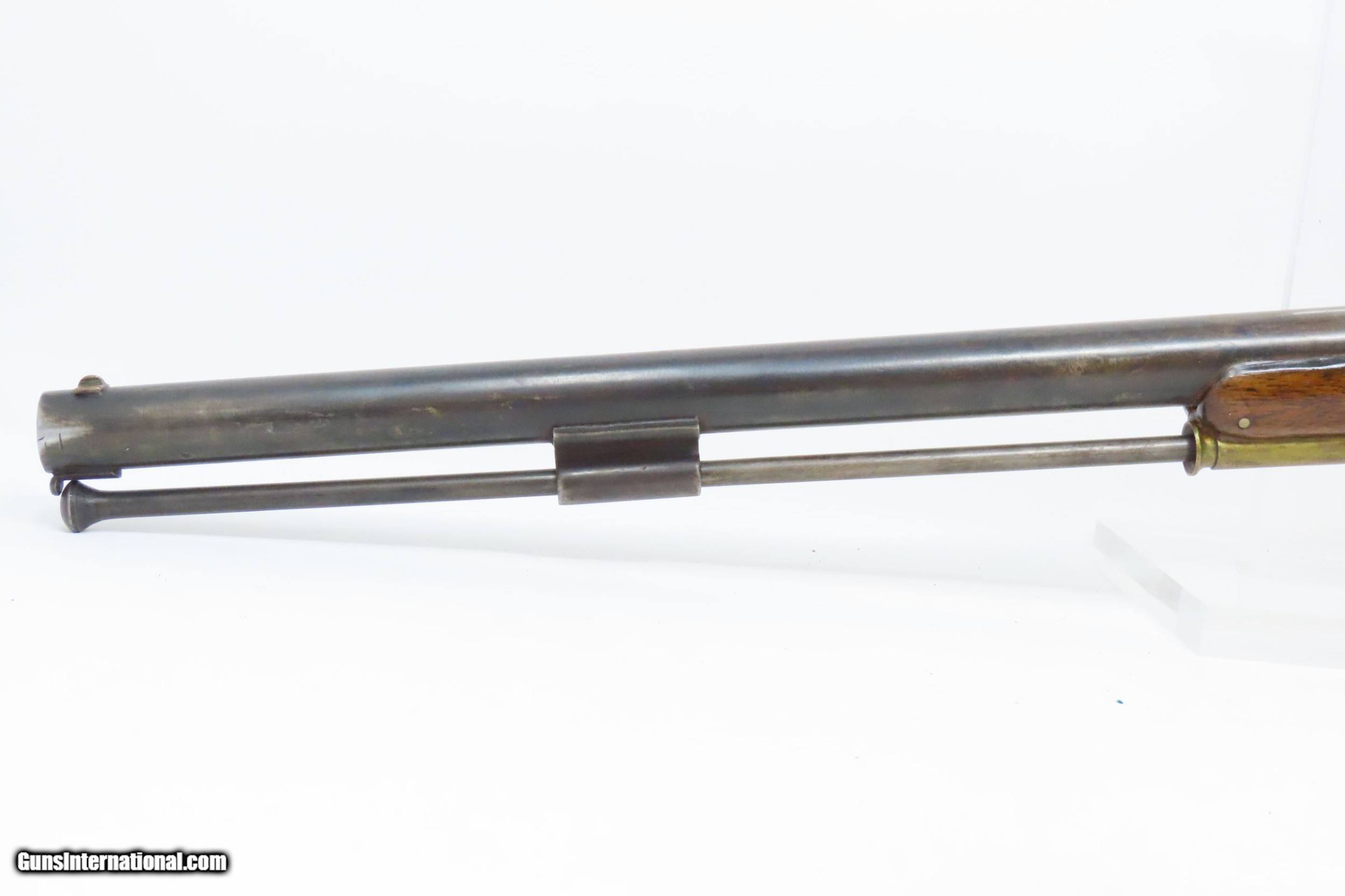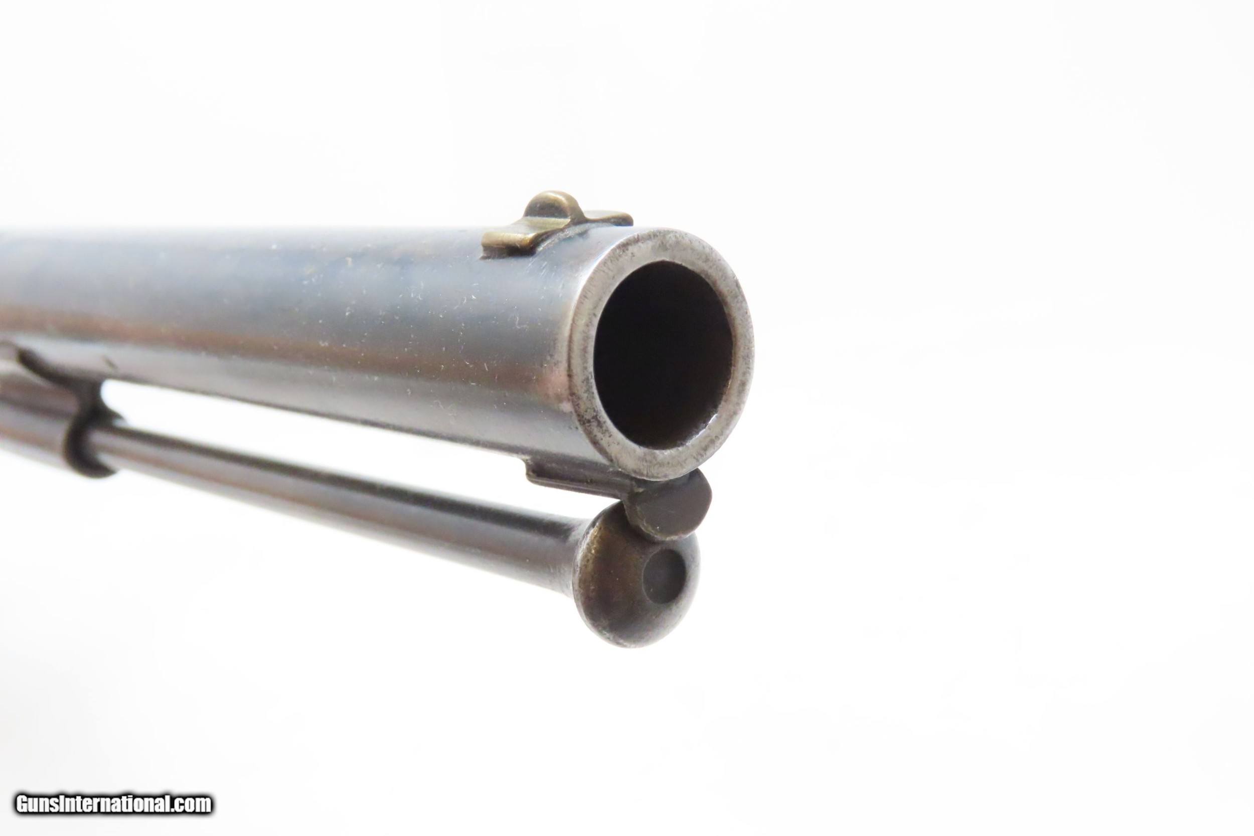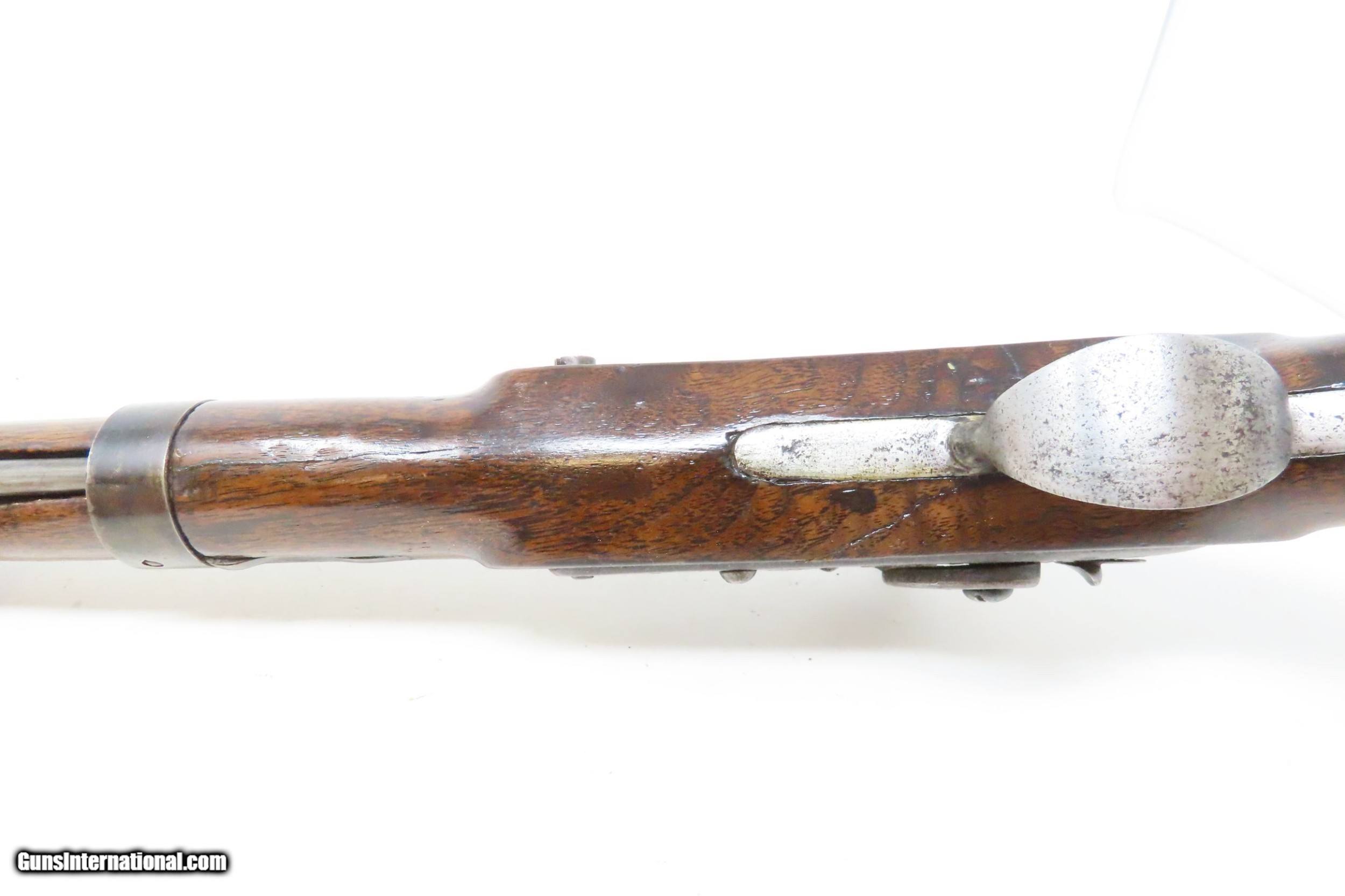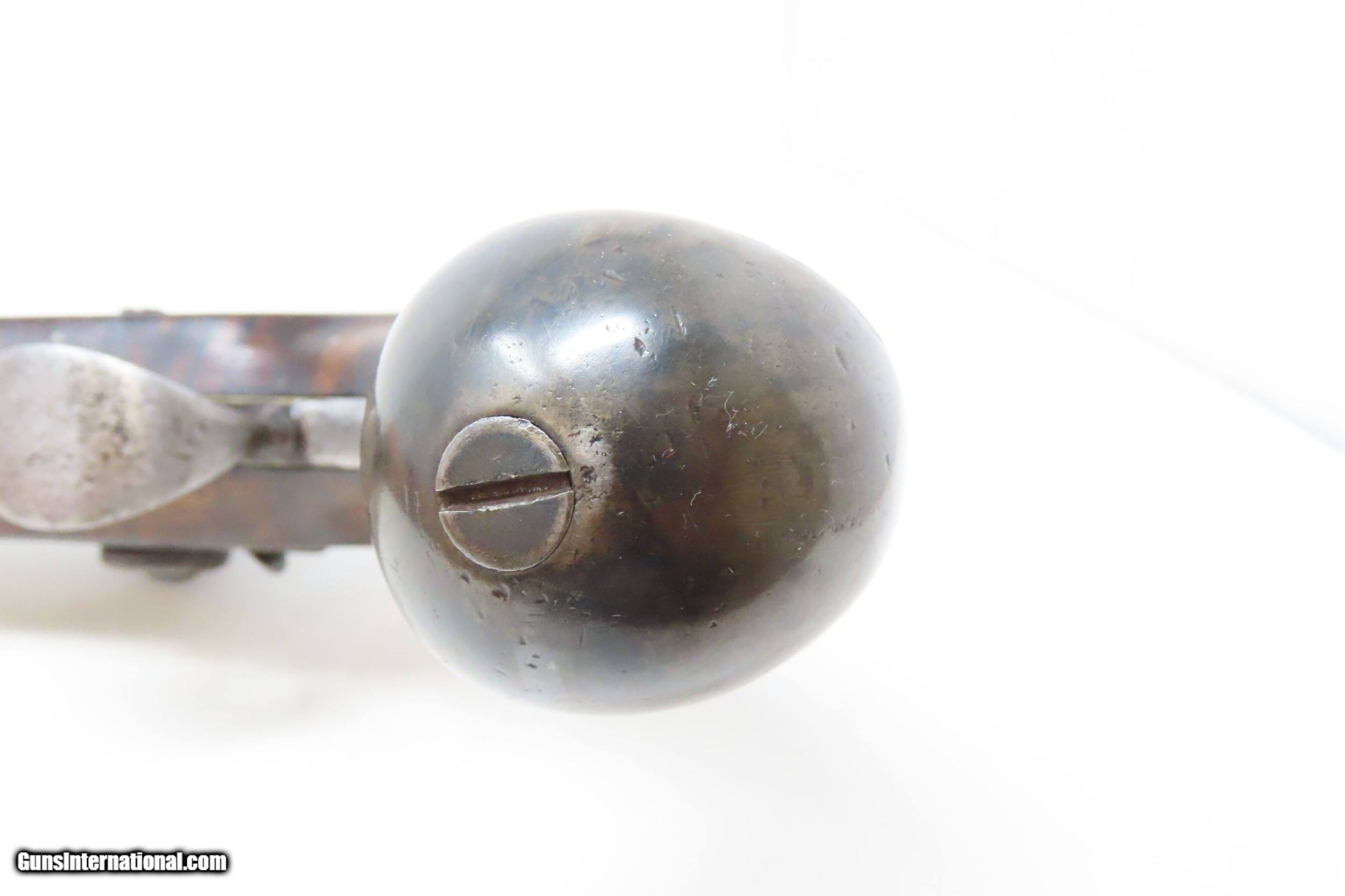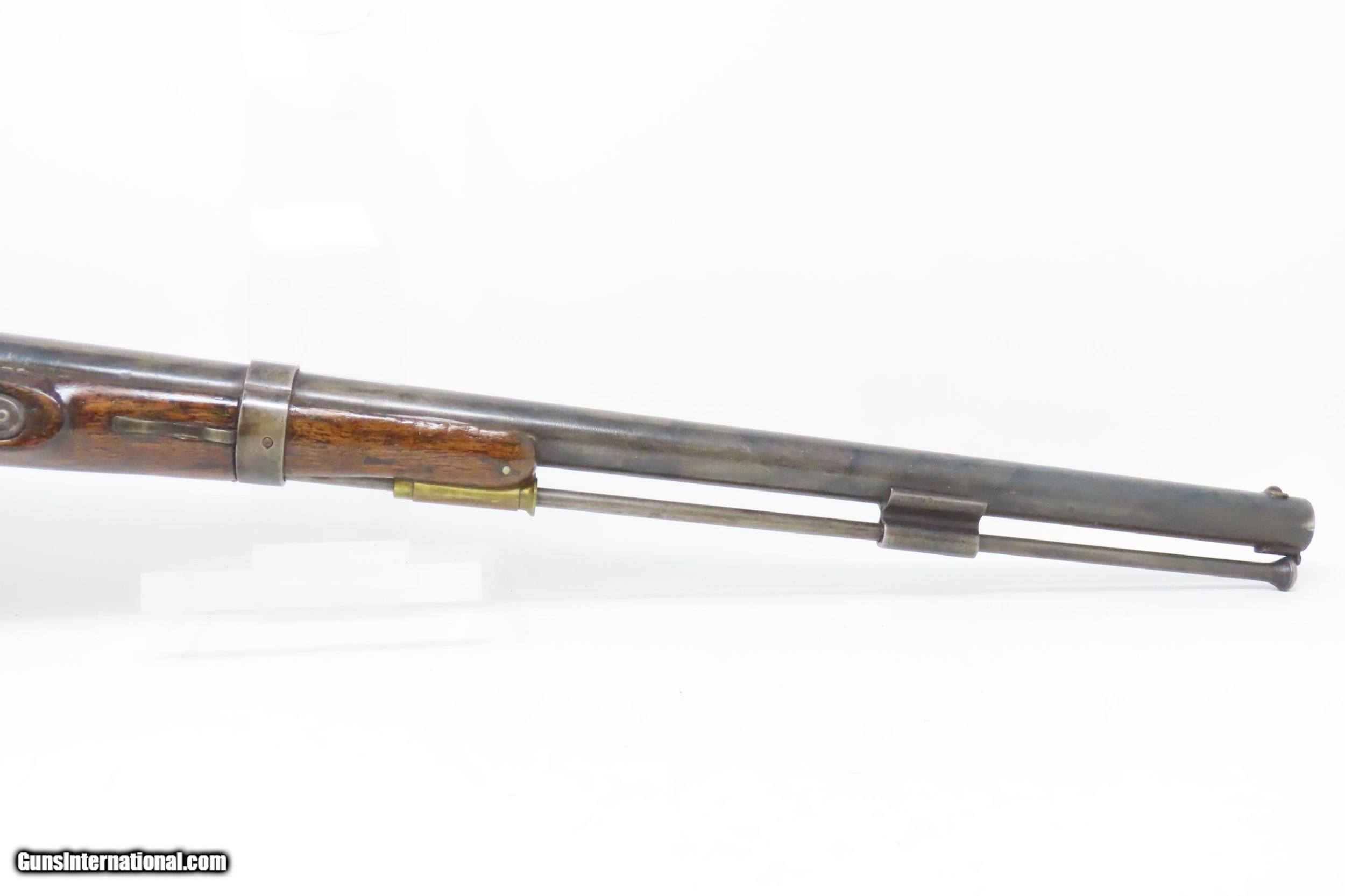 Description: Antique SIMEON NORTH U.S. CONTRACT Model 1819 .54 Caliber CONVERSION Pistol LONG BARRELED Army & Navy Sidearm w/1822 Dated Lock Here we present an antique U.S. Model 1819 Simeon North Percussion Conversion Martial Pistol, made circa 1822 in Middletown, Connecticut. This .54 caliber smoothbore U.S. Contract Model 1819 pistol was made by Simeon North for a U.S. army contract and would have started out life as a flintlock prior to being converted to percussion when the more reliable system was introduced. This pistol was updated with a commercial type hammer. It was also rebarreled at some point with a much longer than standard smoothbore barrel with a front sight blade. The overall condition is good. The action is strong. The bore is smooth and dim. The stock shows some old fissures but it all remains solid and stable. An interesting piece! Own the original! This is a legitimate antique and not a reproduction. Barrel is 19 inches. Caliber: .54 Smoothbore Overall condition as seen in photos. Very Fast. Very Safe. FREE SHIPPING WORLDWIDE. Delivered directly to your door by express mail! Guaranteed AUTHENTIC & Includes CERTIFICATE OF AUTHENTICITY. ancestryguns $1300 #220108 SOLD Antique: Yes |