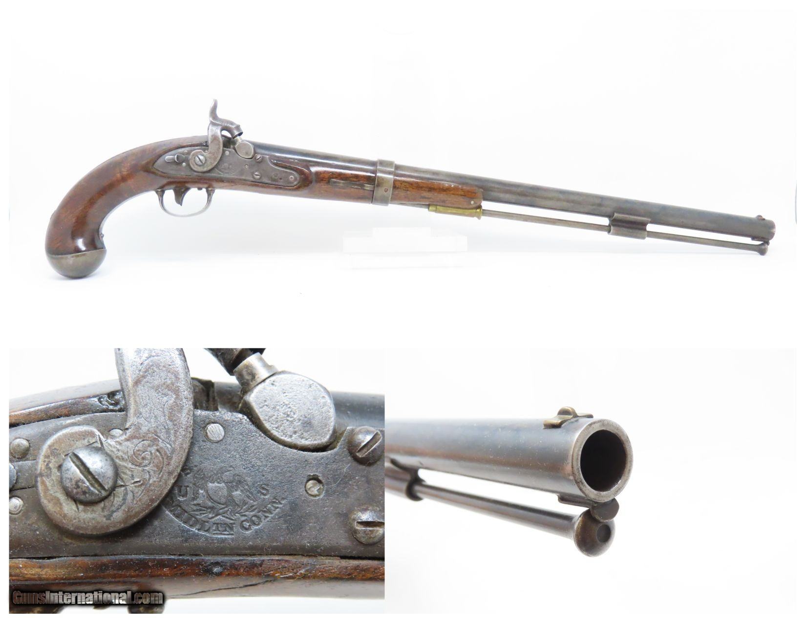 Antique SIMEON NORTH U.S. CONTRACT Model 1819 .54 Caliber CONVERSION Pistol LONG BARRELED Army & Navy Sidearm w/1822 Dated Lock