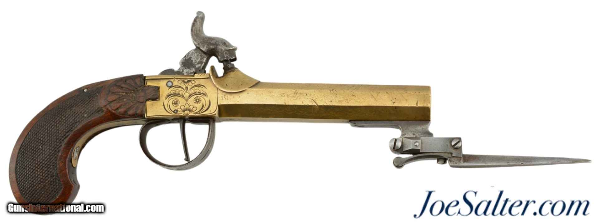 Belgian All Brass Percussion Pistol With Snap Bayonet