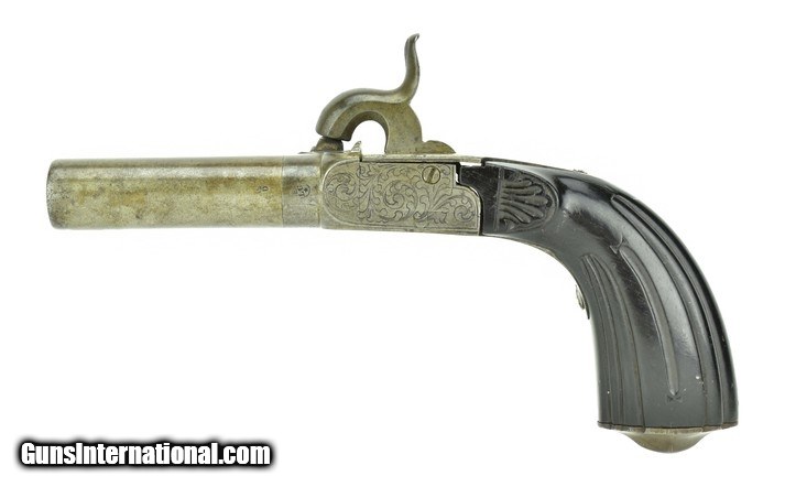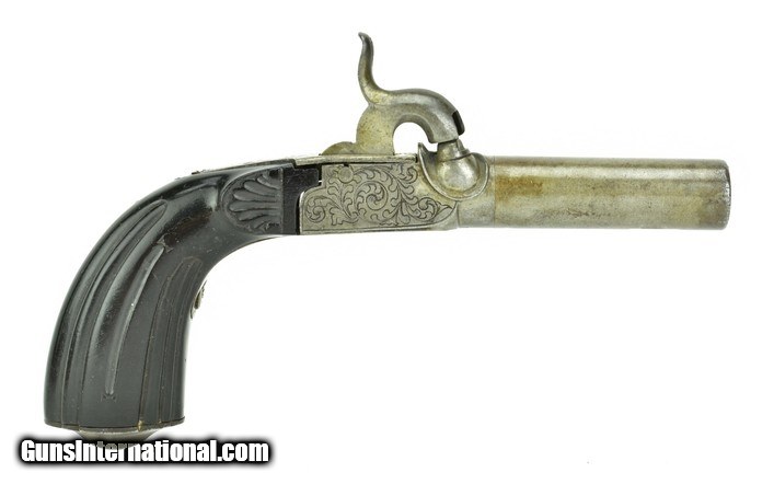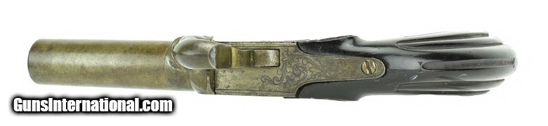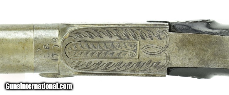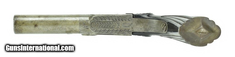 Description: Belgian Box Lock Percussion Pistol. Made circa 1850. .50 Caliber with a 2 ½” barrel. Metal has a light gray patina. Action is nicely engraved. Grips are excellent. Action works perfectly. SOLD Antique: Yes |