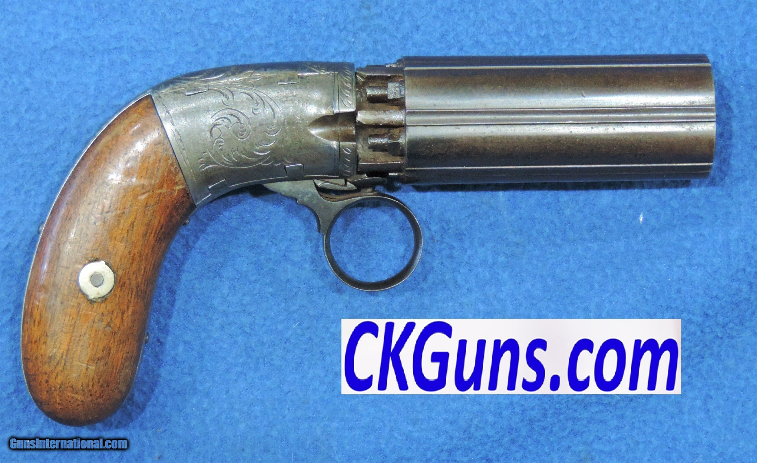 Description: Inv. 7128 Blunt and Syms Pepperbox, Six Shot, Cal. 31 Percussion. Outstanding is the only way to describe condition of this 175 year old pistol. The finish appears to have an extremely even dark silver patina. There are no pin pricks rub marks or scratches or rust anywhere. The frame is nicely engraved and also shows no sigh on wear. The nipples are also minty. And the lacquered grips are just as fine, no blemishes and they retain about 90% of the original lacquer. The grip screw is undamaged. The gun indexes and fires properly. The bores are fine. A real find for the antique gun collector and investor, and we guarantee you will be pleased with your purchase...SHIPPED.....$1095. To purchase this firearm or if you want to request more information contact us at: Email ckgunsymail Phone 201-512-0002 Cell 201-575-6838 FAX 201-215-4759 We accept most major credit cards. Prices shown are Discounted 3% for Cash or Check. The buyer must be familiar with all the laws governing the purchase and the ownership of firearms in their own city and state. The Yankee Armorer, Inc is not responsible for any failure to comply with or observe these laws. The Yankee Armorer, Inc will only ship after full payment and receipt of all required documents. Shipping: Add $35.00 for handguns, $45.00 for long guns. New Jersey buyers are subject to a 7% sales tax. The Yankee Armorer, Inc offers a 3 day inspection period with full refund upon return of intact firearm and in the original condition. The Yankee Armorer, Inc offers a no interest lay away program - 25% down; 25% in 30 days; 25% in 60 days; and full payment in 90 days. Any violation of this policy is subject to restocking and forfeiture of all payments. Any variation from this policy must be agreed to in advance. Unshipped Cancelled sales are subject to a 20% restocking fee. Be advised that all firearms sold by The Yankee Armorer, Inc. or the Gun Exchange, LLC (SELLER) are sold as collector’s items. They have not been fired or tested for safety and must be examined by a license gunsmith prior to use. By purchasing any item from the (SELLER), you are agreeing to hold the (SELLER) free from any damages or lawsuits of any nature. Any item left for transfer or storage will be charged to $25.00 per month, per item from the day of its receipt. Any variation from this policy must be agreed to in advance. Store hours 10:00 am to 5:00 pm Tuesday -Saturday. It's always best to call for appointment. Store 201-512-0002, cell 201-575-6838. SOLD Antique: Yes Manufacturer: Blunt and Syms Model: Pepperbox Caliber Info: .31 Percussion |